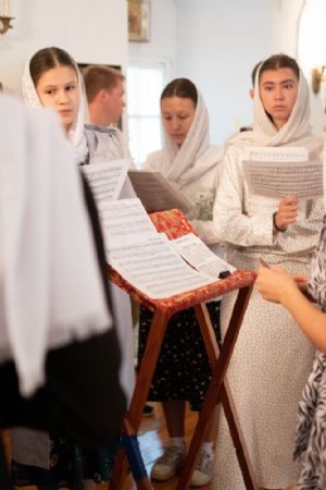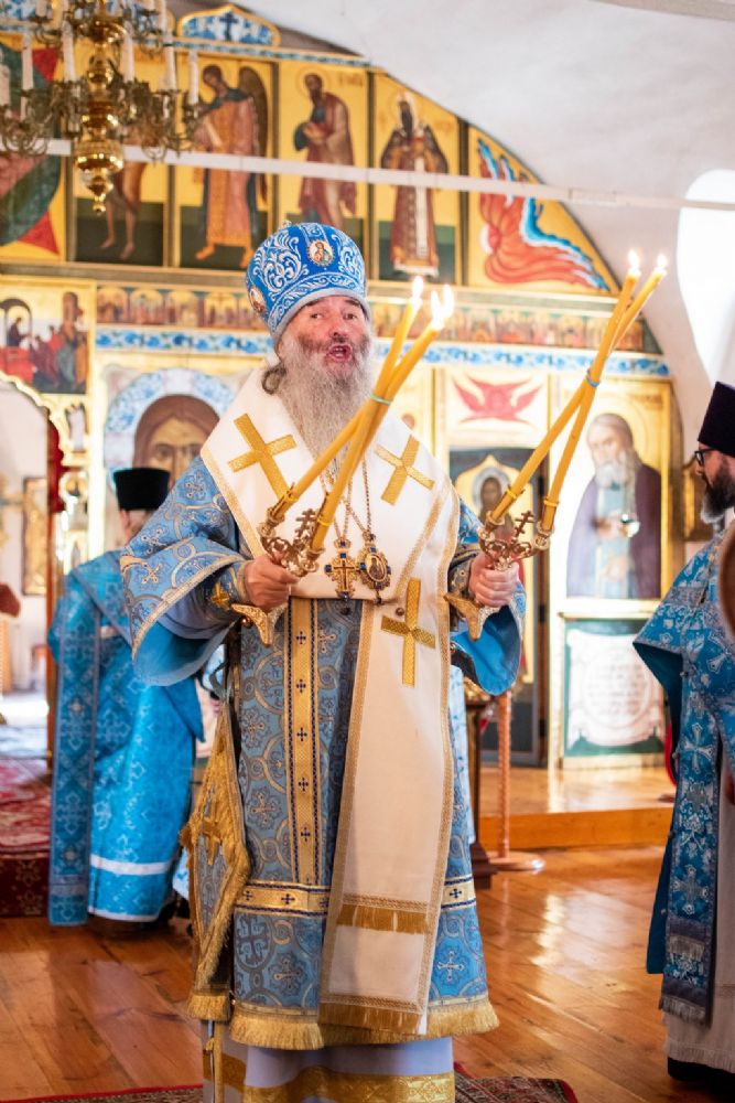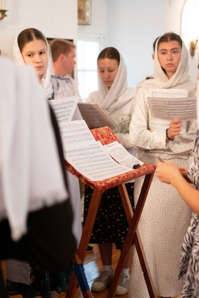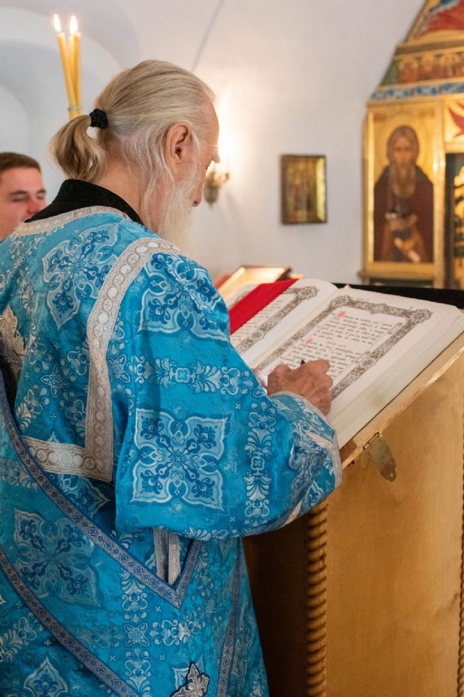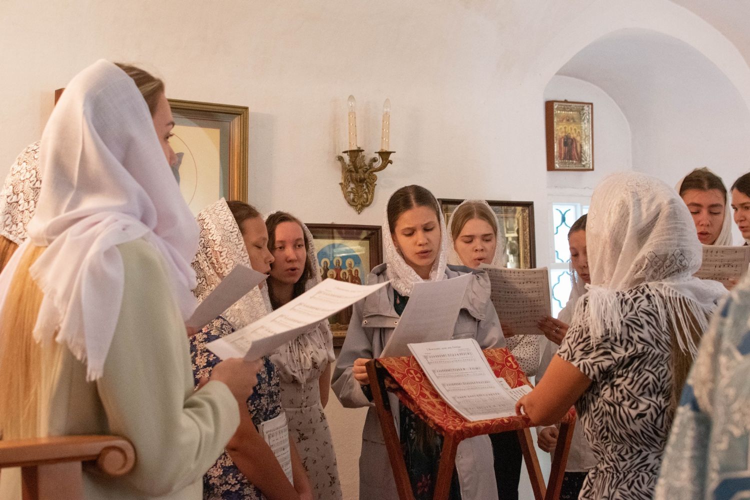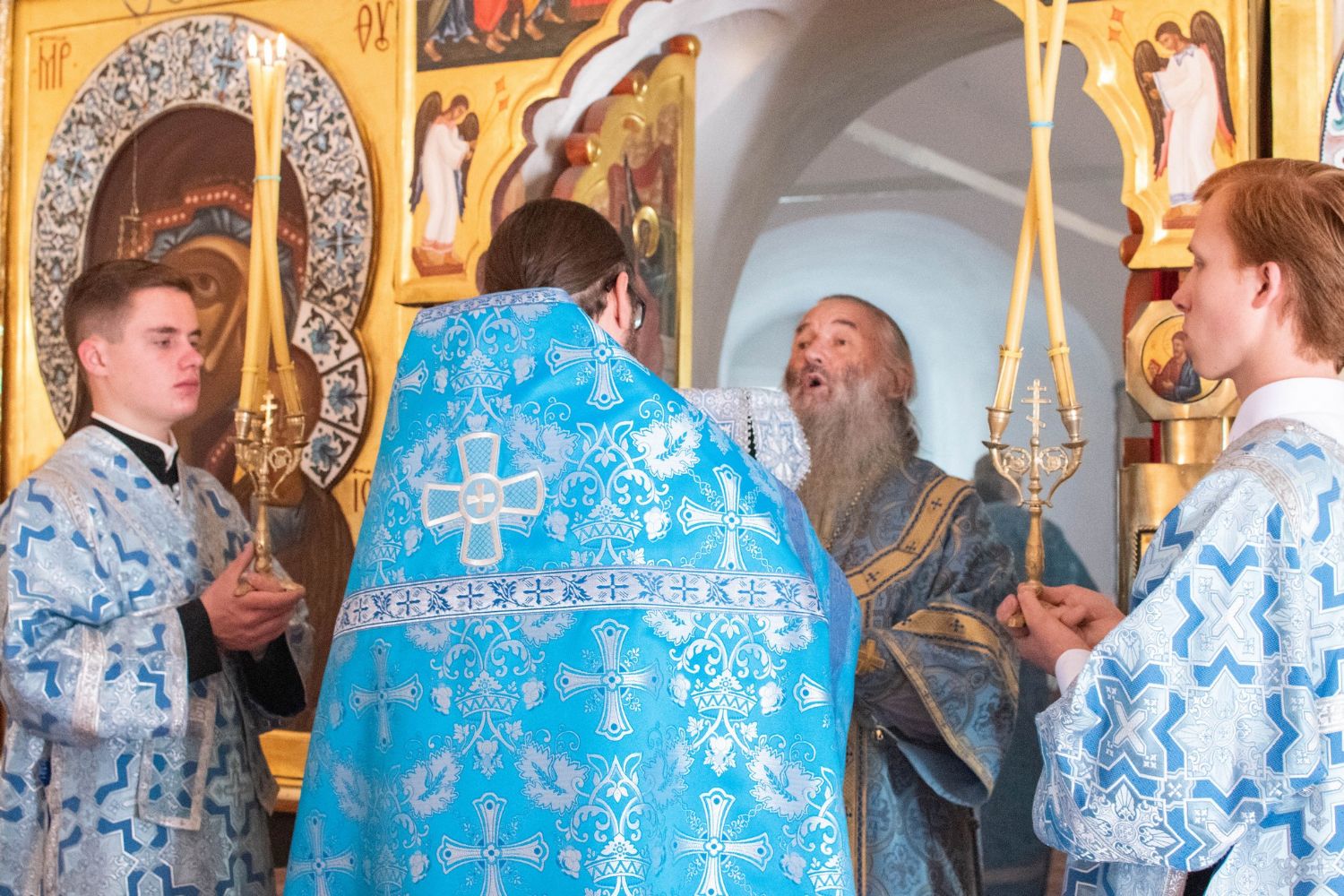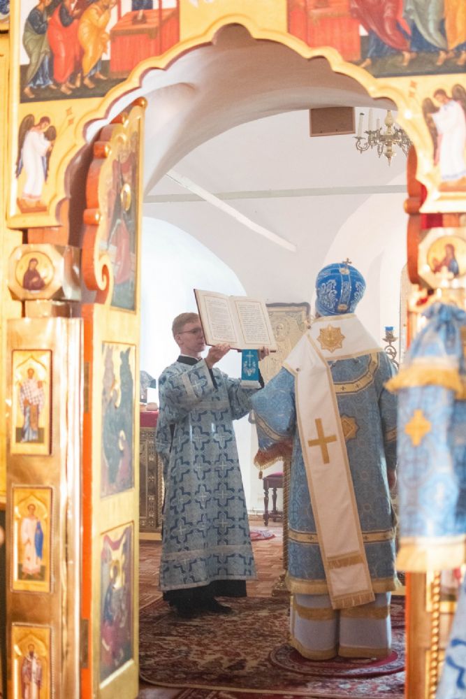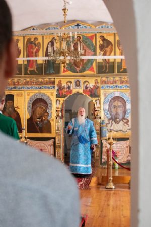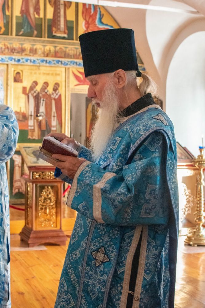 Владыке сослужили секретарь Йошкар-Олинского епархиального управления иерей Димитрий Дьяков, клирик монастыря иерей Михаил Лежнин и протодиакон Михаил Козловский. Песнопения исполнял детско-юношеский хор «Благовест» под руководством регента Надежды Поздеевой.