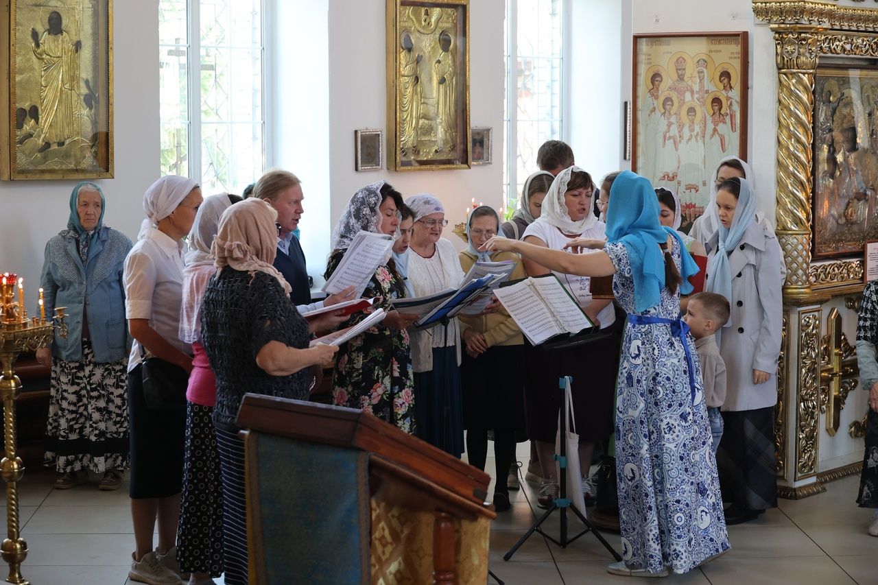 Архипастырю сослужили клирики собора, песнопения исполняли архиерейский хор под управлением Марии Глазыриной и народный хор (регент Мария Захарова).