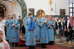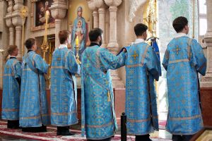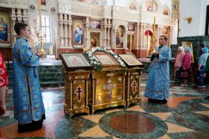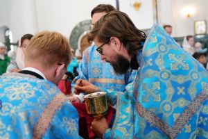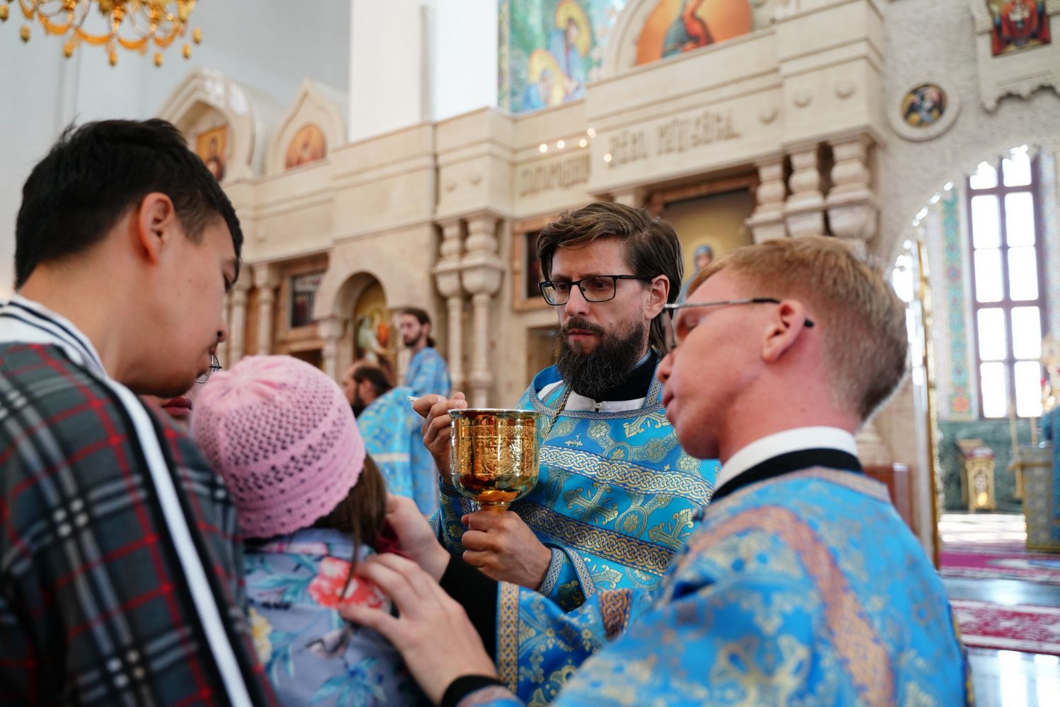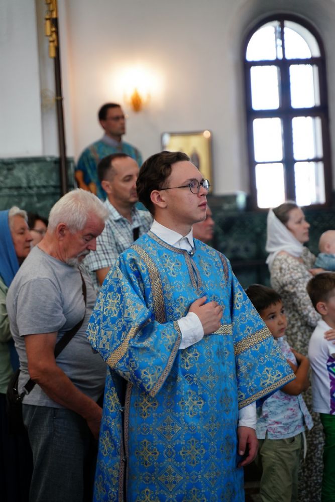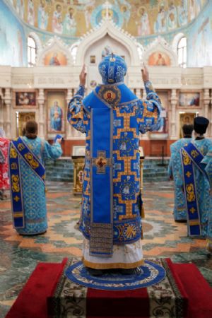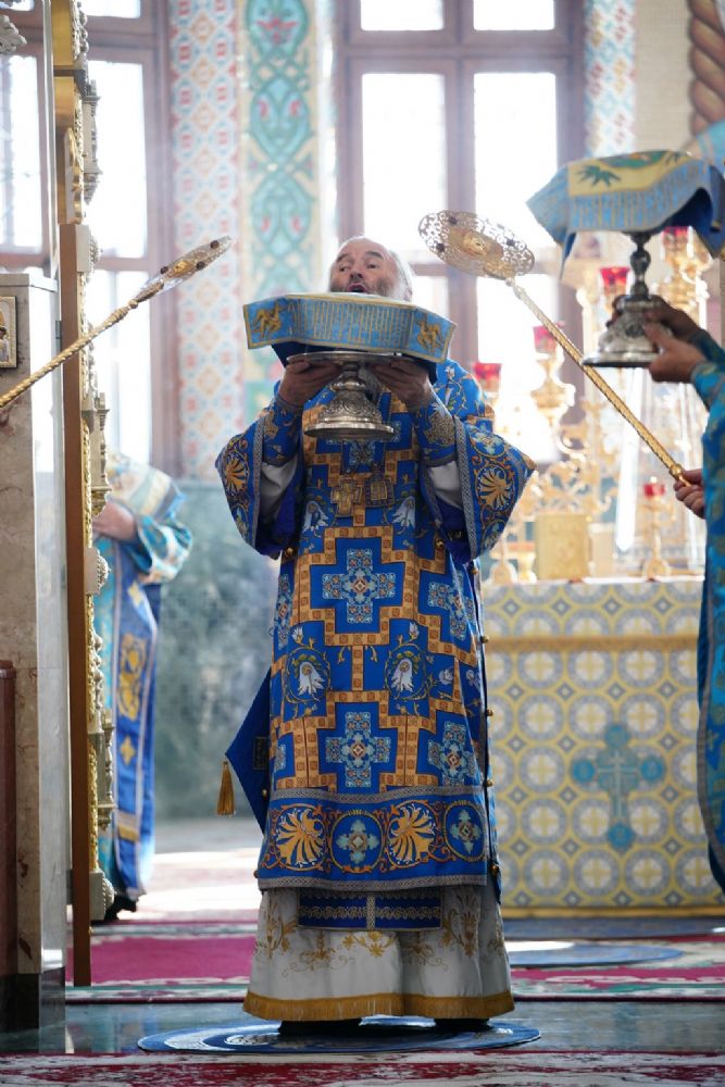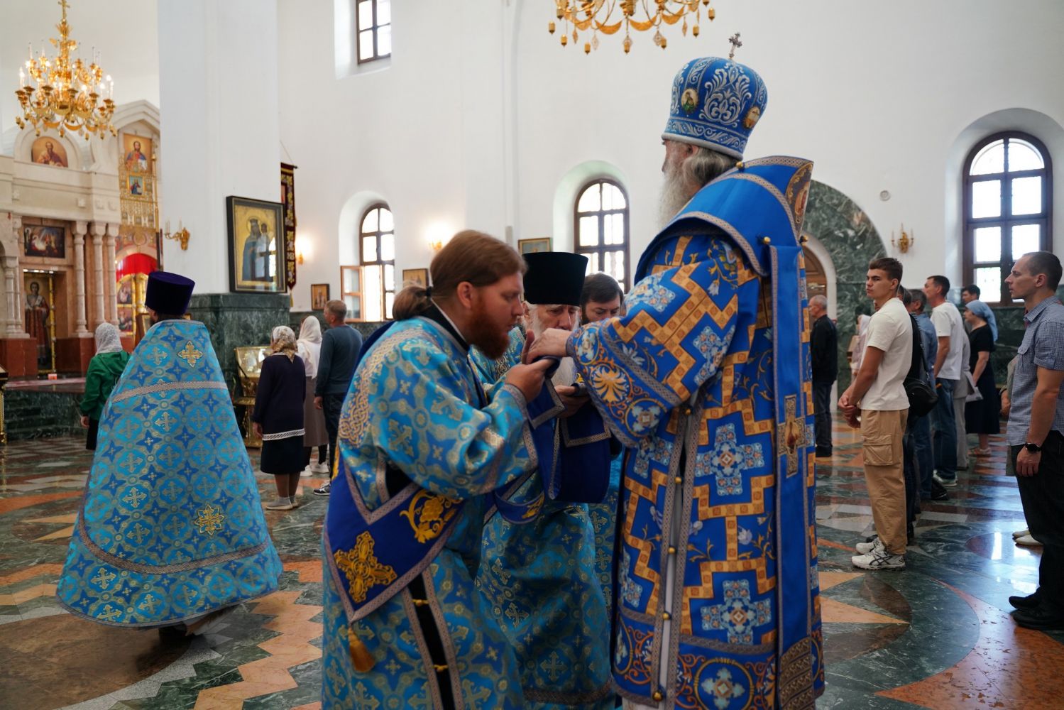 Архипастырю сослужили клирики собора иереи Евгений Самойлов, Александр Староверов и Иоанн Милютин, диаконы Андрей Дружинин и Артемий Бобоч, а также протодиакон Михаил Козловский. Песнопения исполнял детско-юношеский хор «Благовест» под управлением регента Надежды Поздеевой.