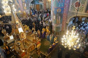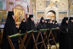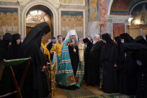 На богослужении вместе с паломниками и прихожанами молились настоятельница Дивеевской обители игумения Сергия (Конкова), сестры монастыря, а также монашествующие женских и мужских обителей Приволжского Федерального округа, которые принимают участие в работе круглого стола «Пополнение братства обители. От чего это зависит?»