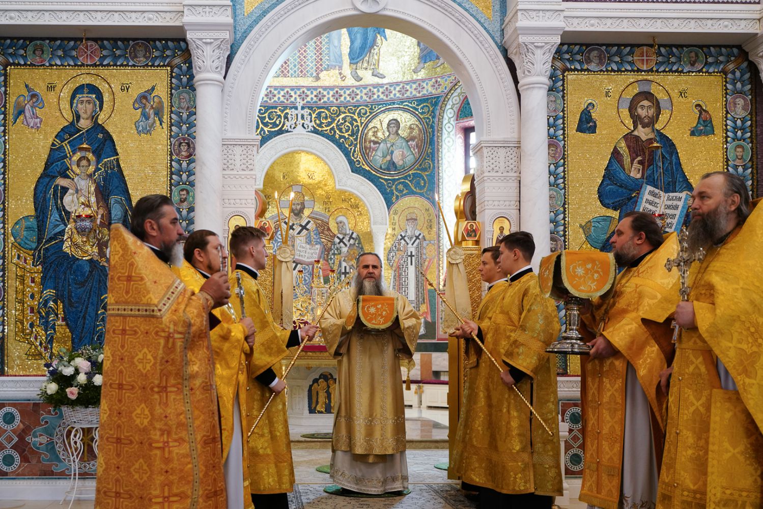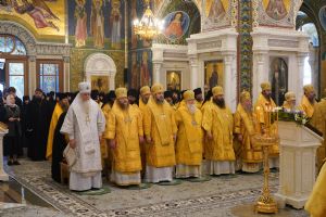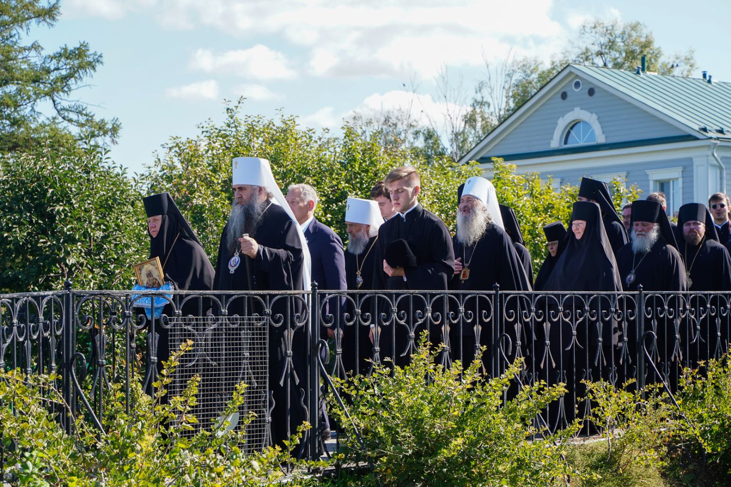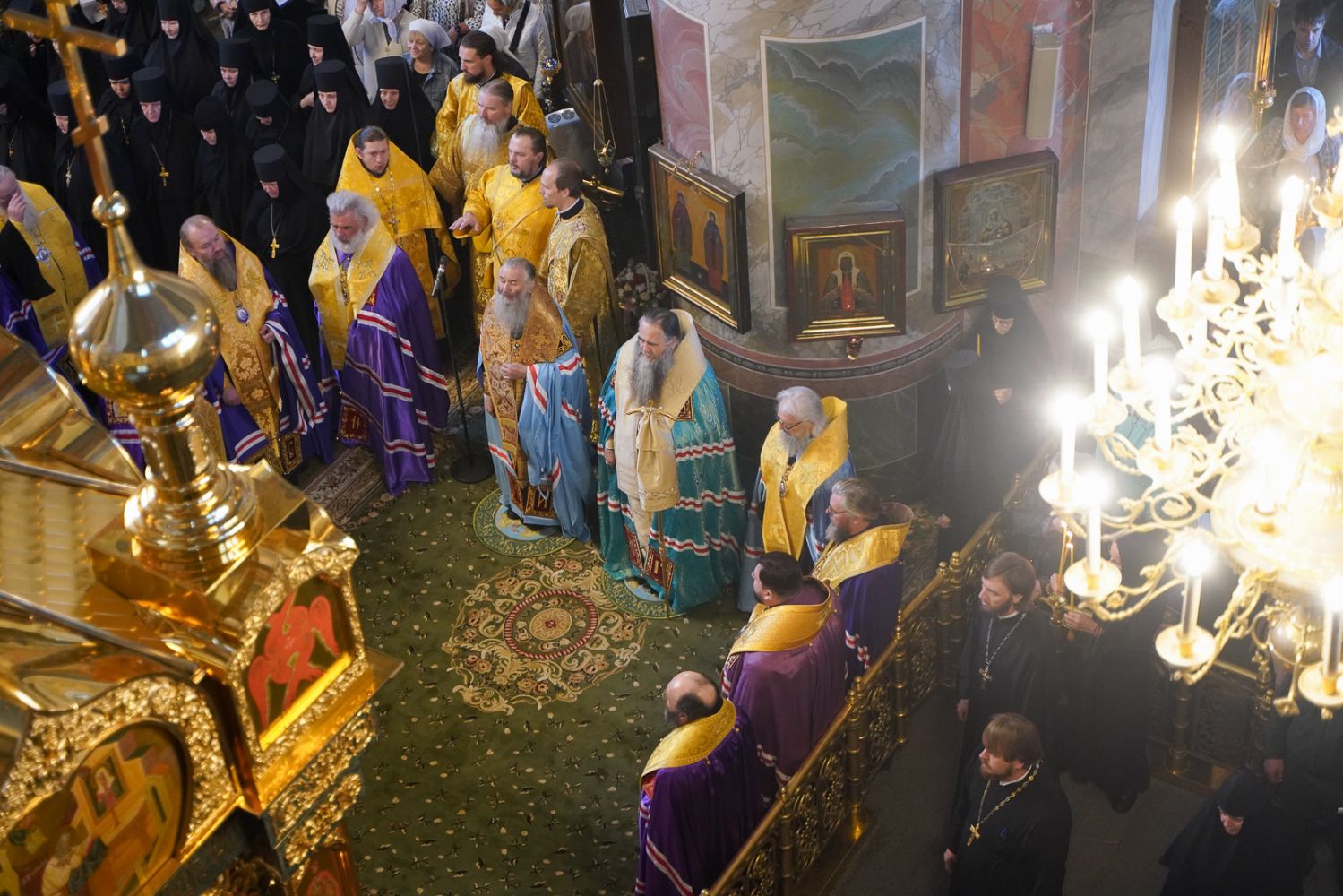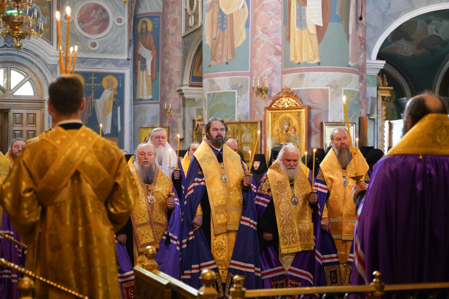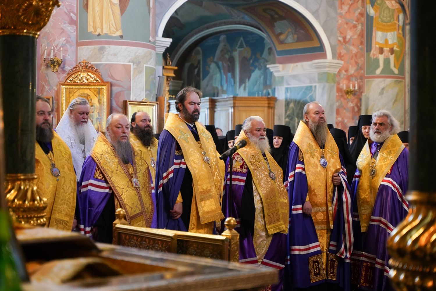 Его Высокопреосвященству сослужили митрополит Йошкар-Олинский и Марийский Иоанн, митрополит Саранский и Мордовский Зиновий, епископ Салаватский и Кумертауский Николай, епископ Балашовский и Ртищевский Тарасий, епископ Канашский и Беловолжский Стефан, викарий Нижегородской епархии епископ Дальнеконстантиновский Филарет, епископ Бузулукский и Сорочинский Алексий, епископ Кинельский и Безенчукский Софроний, епископ Альметьевский и Бугульминский Мефодий, викарий Нижегородской епархии епископ Сормовский Иннокентий, епископ Сердобский и Спасский Митрофан, епископ Тольяттинский и Жигулевский Нестор, епископ Глазовский и Игринский Виктор, епископ Уржумский и Омутнинский Всеволод, епископ Городецкий и Ветлужский Парамон, епископ Покровский и Новоузенский Фома, епископ Волжский и Сернурский Феофан, епископ Бирский и Белорецкий Спиридон, епископ Балаковский и Николаевский Варфоломей, епископ Сарапульский и Можгинский Павел, епископ Кудымкарский и Верещагинский Петр, епископ Ардатовский и Атяшевский Мелетий, а также секретарь Архиерейского совета Нижегородской митрополии протоиерей Сергий Матвеев, благочинный Дивеевского округа, старший священник обители иерей Владимир Каргин, другие клирики Нижегородской епархии и монашествуюшие в священном сане, прибывшие для участия в конференции.