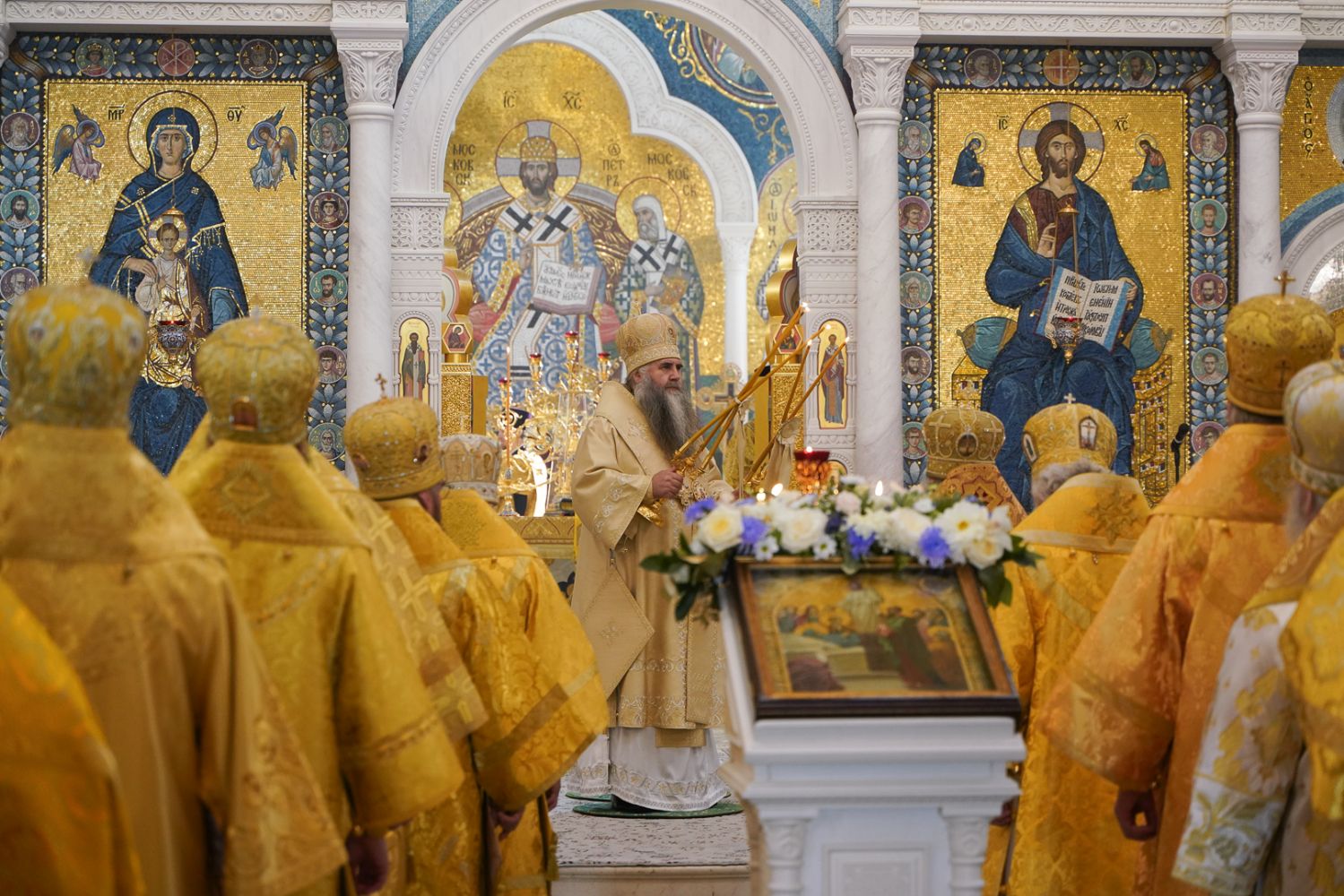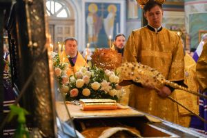 Утром в Троицком соборе обители около раки с мощами преподобного Серафима Саровского митрополит Нижегородский и Арзамазский Георгий возглавил молебен с акафистом преподобному Серафиму. Затем владыка Георгий возглавил в Благовещенском соборе обители Божественную литургию.