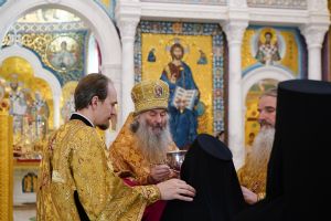 По окончании Литургии игумения Сергия поблагодарила архипастырей за визит и совершенное богослужение и преподнесла им заздравные просфоры.