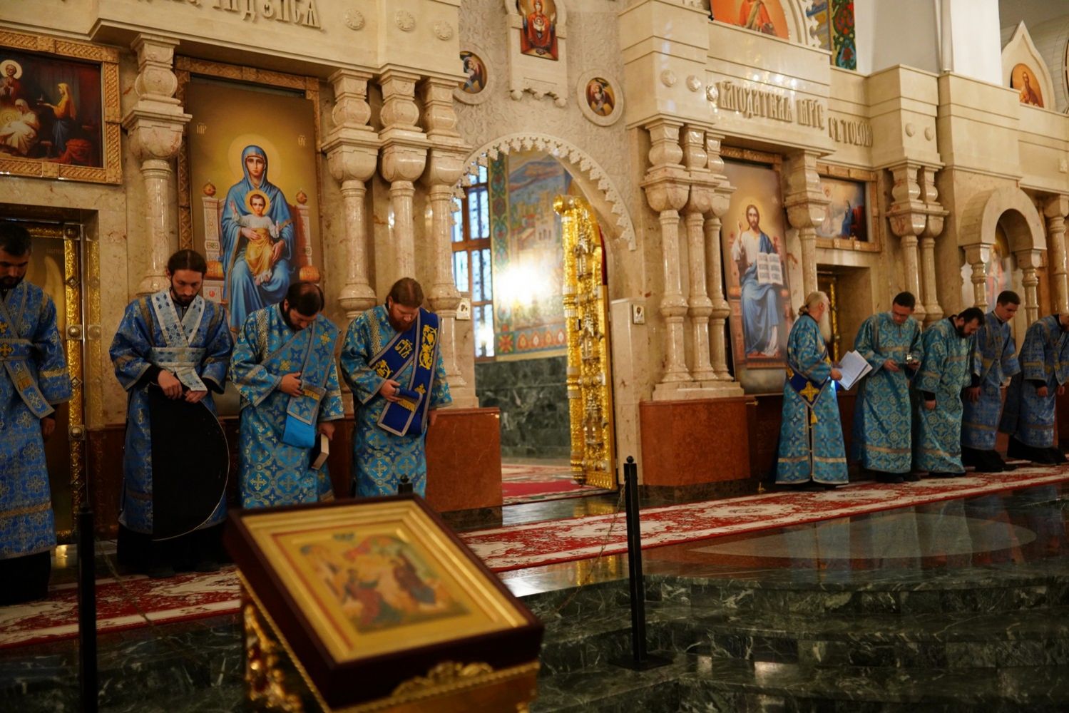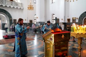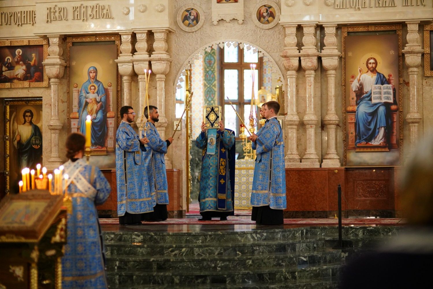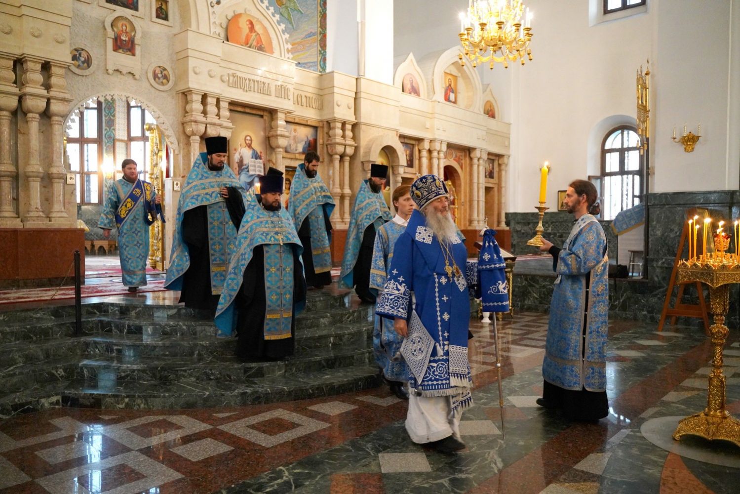 Его Высокопреосвященству сослужили ключарь кафедрального собора протоиерей Сергий Поглазов, клирики собора иереи Никифор Захаров, Евгений Самойлов, Александр Староверов, Иоанн Милютин, диаконы Андрей Дружинин и Артемий Бобоч, а также протодиакон Михаил Козловский. Песнопения исполнял детско-юношеский хор «Благовест» под управлением Надежды Поздеевой.