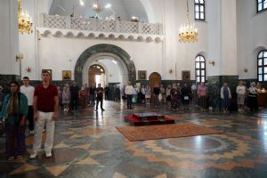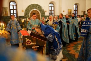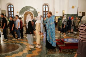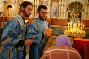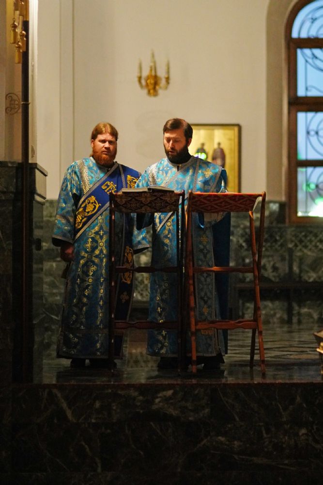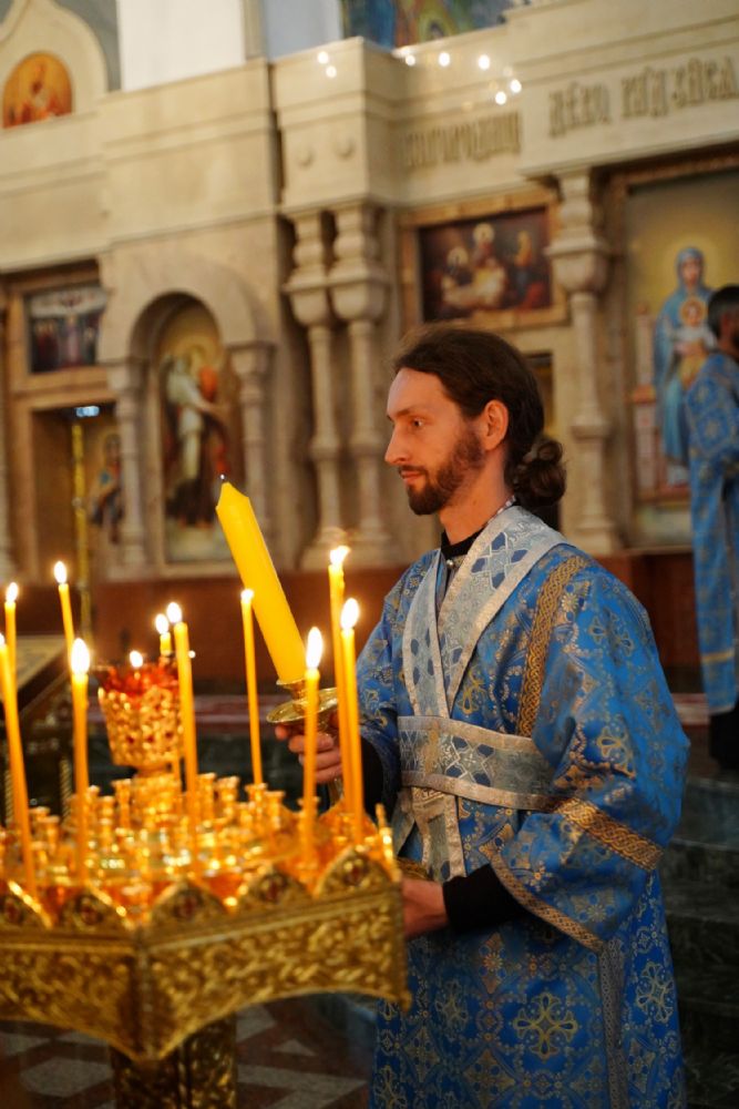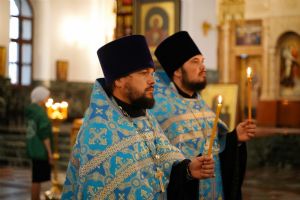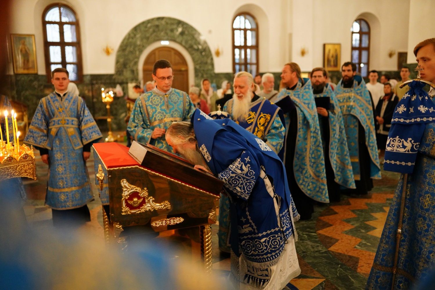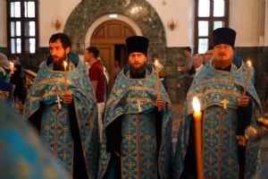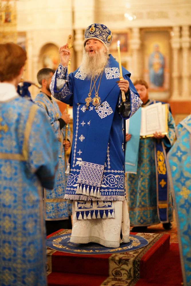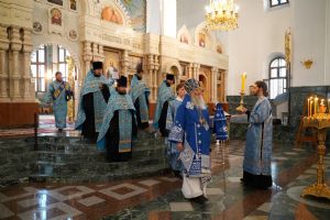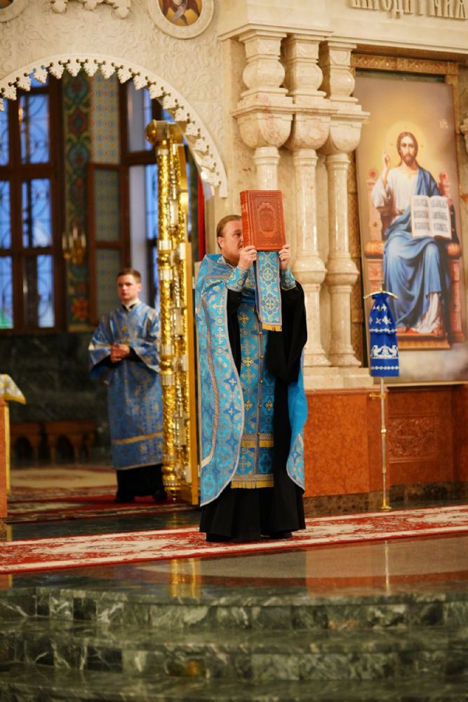 Его Высокопреосвященству сослужили ключарь кафедрального собора протоиерей Сергий Поглазов, клирики собора иереи Никифор Захаров, Евгений Самойлов, Александр Староверов, Иоанн Милютин, диаконы Андрей Дружинин и Артемий Бобоч, а также протодиакон Михаил Козловский. Песнопения исполнял детско-юношеский хор «Благовест» под управлением Надежды Поздеевой.