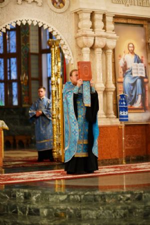 По случаю праздника на вечерне читались ветхозаветные паремии из книг Бытия, Пророка Иезекииля и Притчей Соломоновых, прообразующие Пресвятую Богородицу.