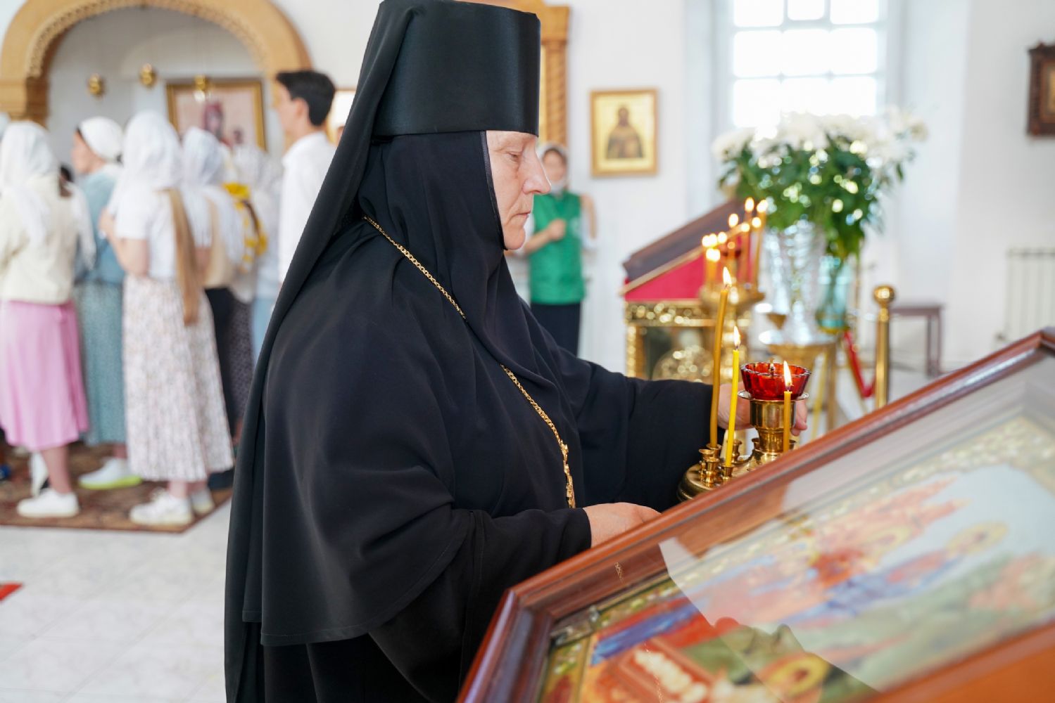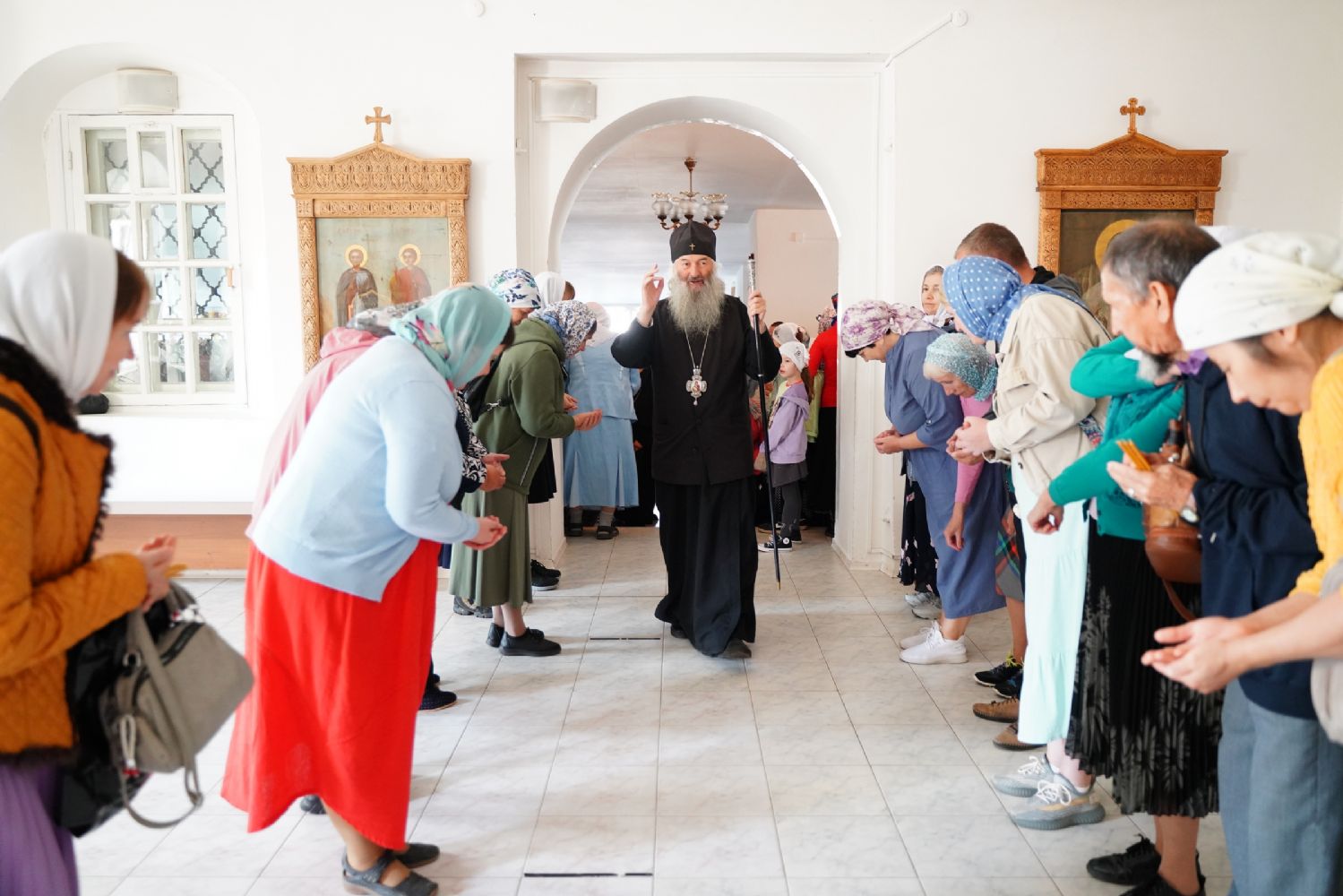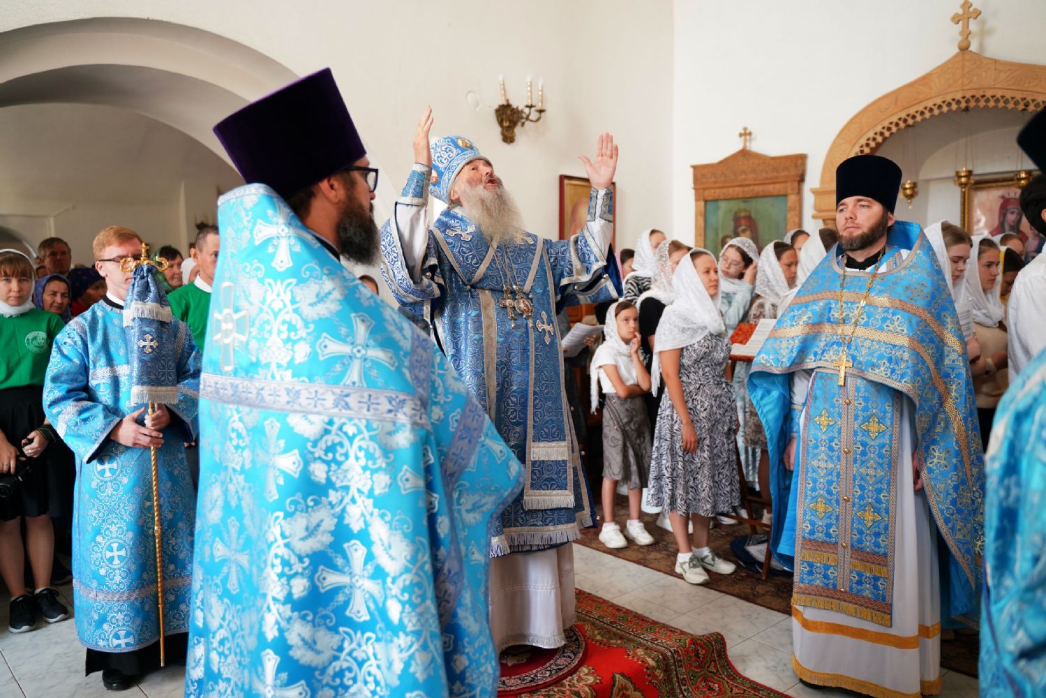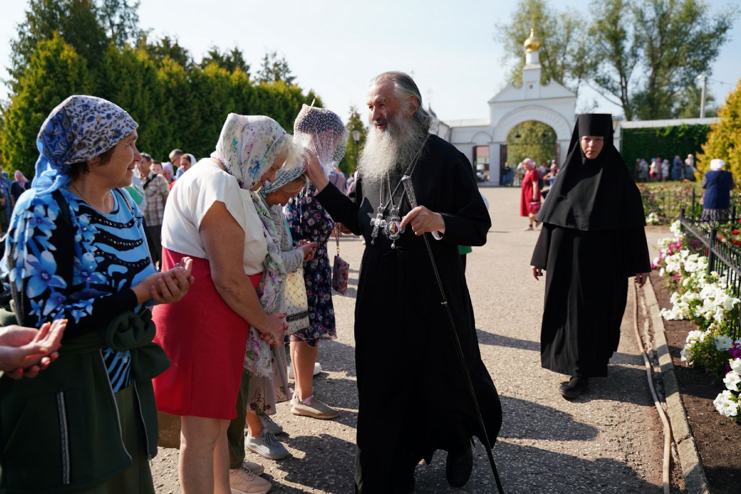 «Сегодня, дорогие отцы, братья и сестры, мы собрались в этой святой обители, чтобы принять участие в крестном ходе с Пречистой Богоматерью, – отметил митрополит Иоанн. – Она обходит Свои пределы, благословляя и освящая Марийскую землю, напоминая всем нам, что мы должны в жизни своей всецело вручать себя в руки Божии, исполняя Его святую волю.