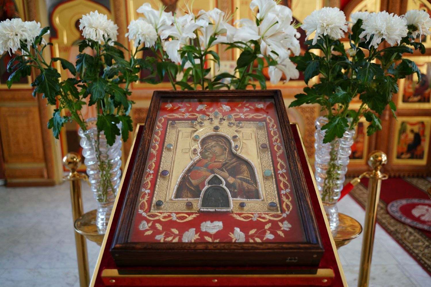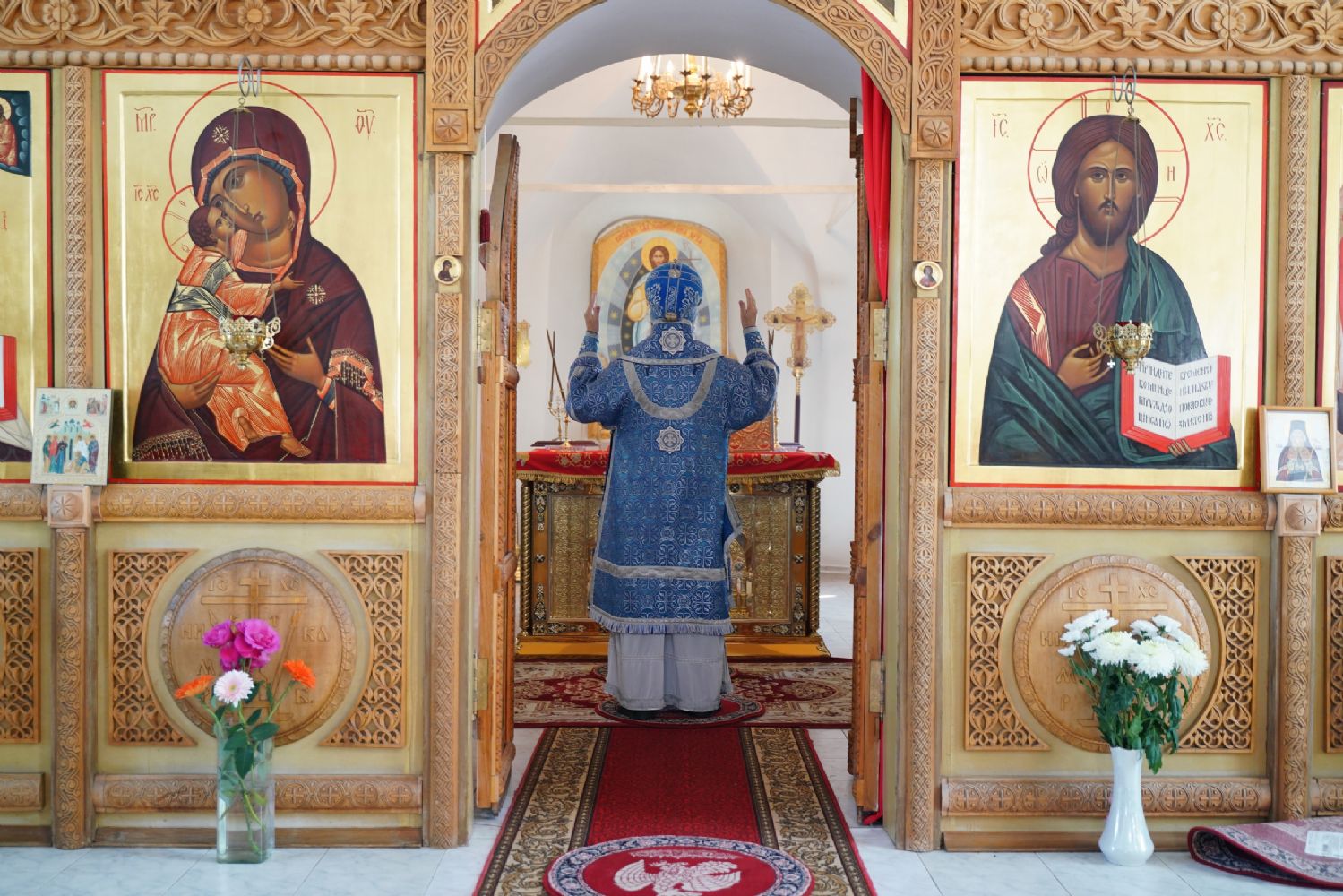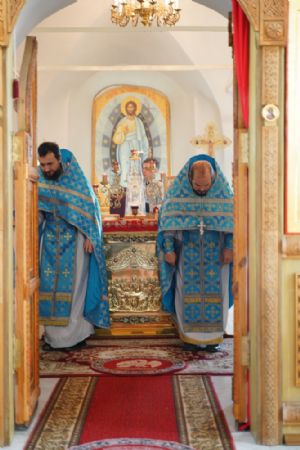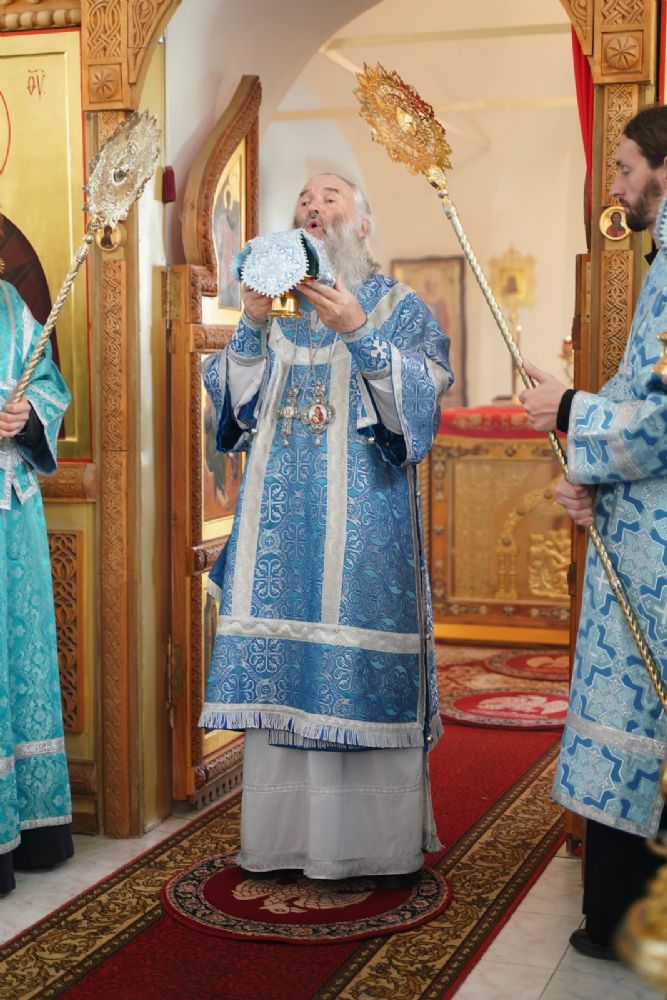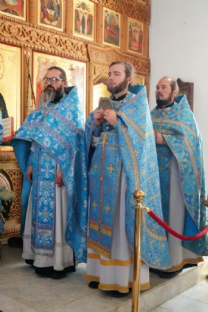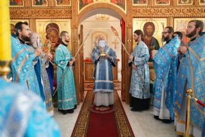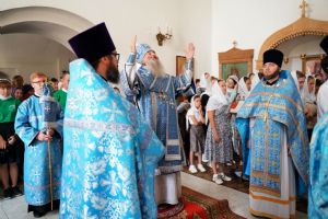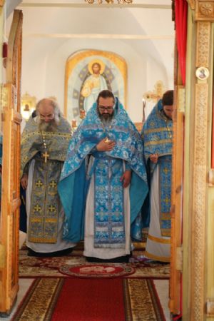 Владыке сослужили секретарь Йошкар-Олинского епархиального управления иерей Димитрий Дьяков, клирик монастыря иерей Михаил Лежнин и духовенство храмов г. Йошкар-Олы. Песнопения исполнял детско-юношеский хор «Благовест» под управлением регента Надежды Поздеевой. Помолиться перед чудотворным образом собралось множество верующих из Ежово, Йошкар-Олы и окрестных селений.