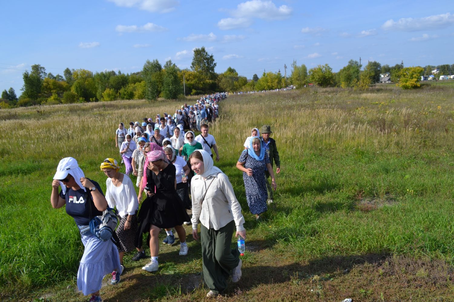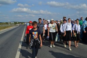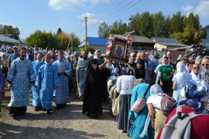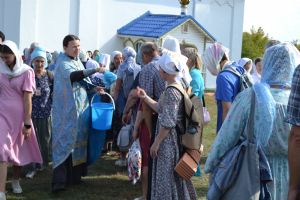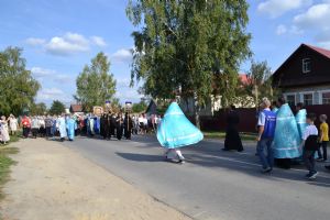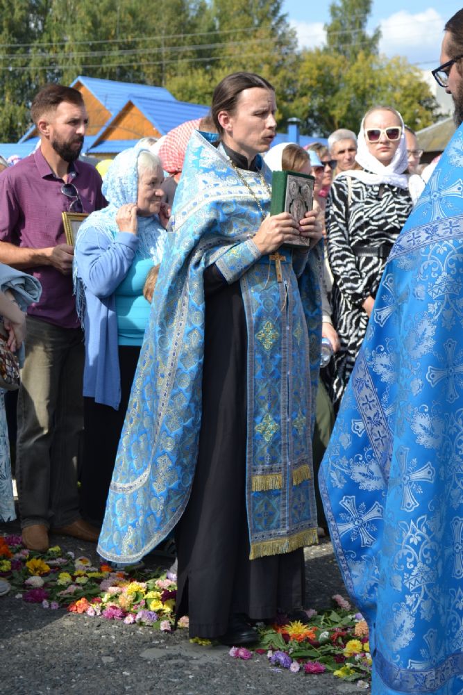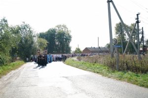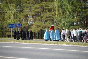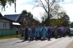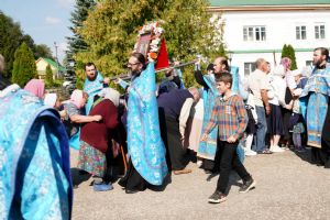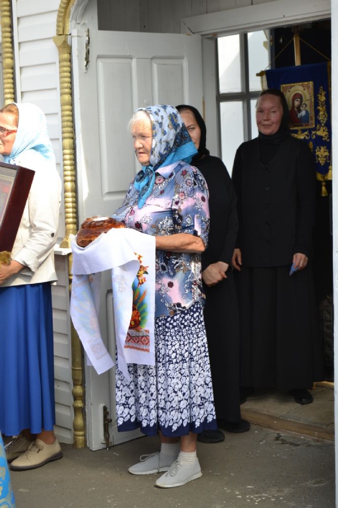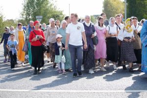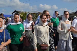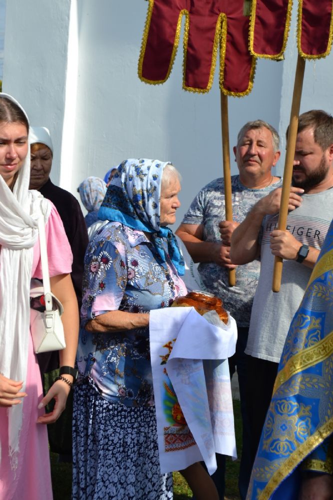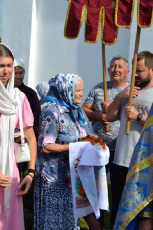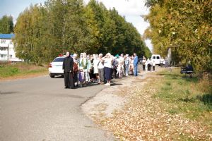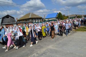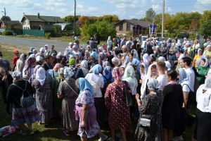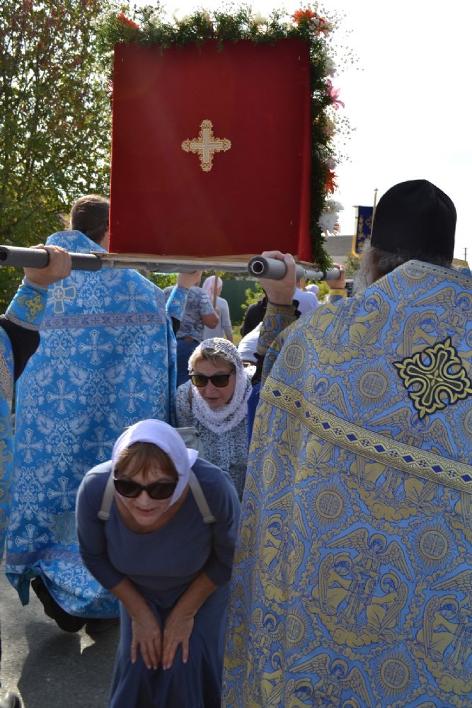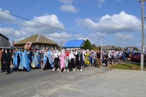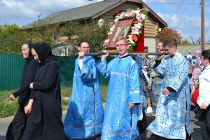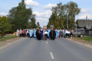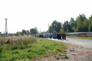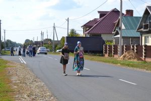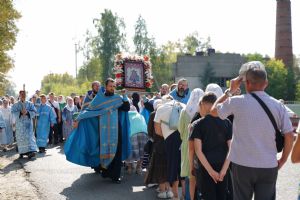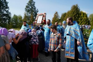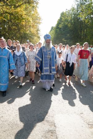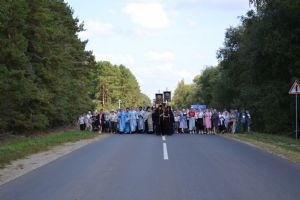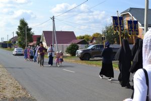 После трапезы верующие, обойдя крестным ходом с Мироносицкой иконой Божией Матери вокруг храма, двинулись к селу Семеновка, пройдя по пути через села Ким, Юшково, Кузнецово, Данилово. На подходе к Семеновке крестоходцев радостно встретили священнослужители и прихожане храма Рождества Пресвятой Богородицы.