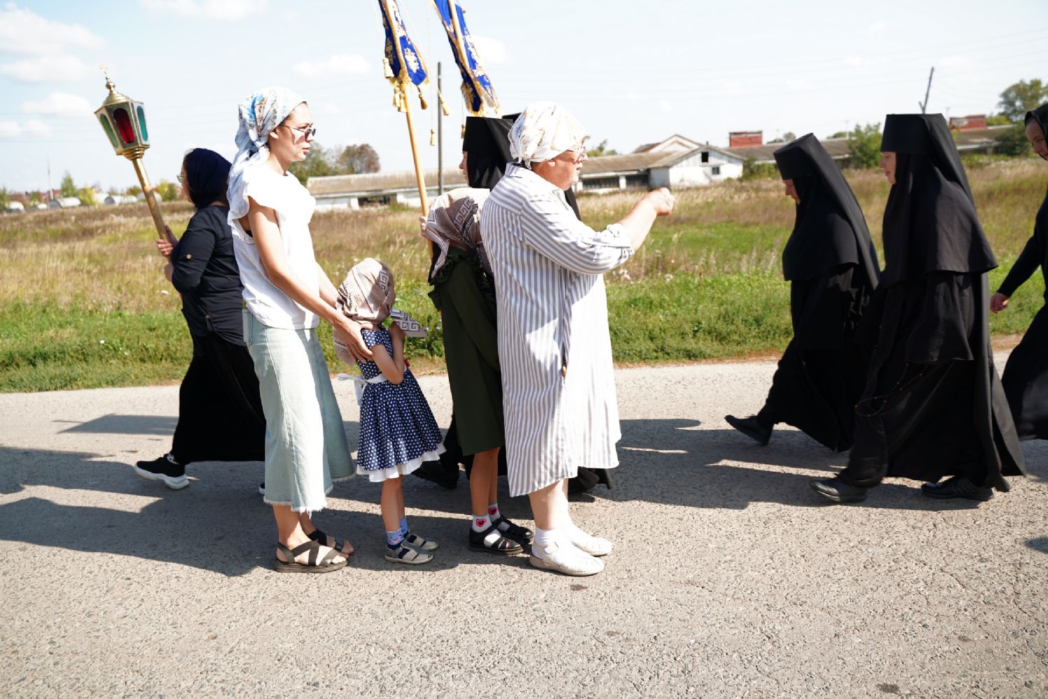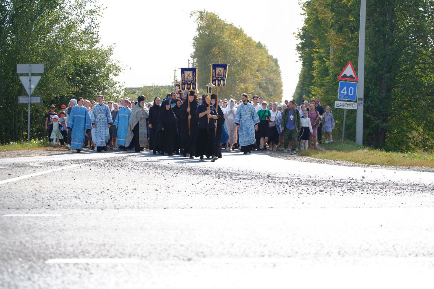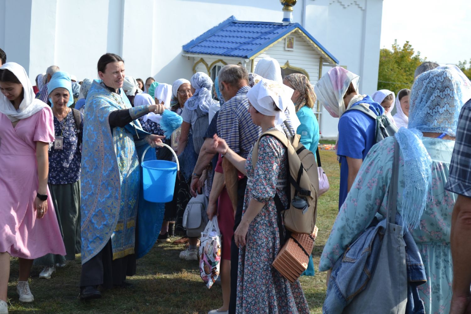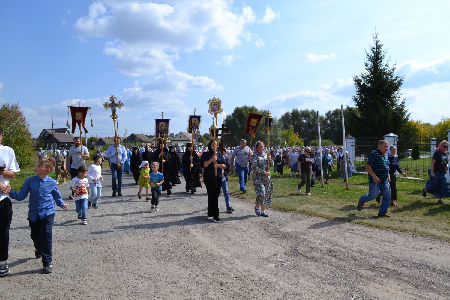 После трапезы верующие, обойдя крестным ходом с Мироносицкой иконой Божией Матери вокруг храма, двинулись к селу Семеновка, пройдя по пути через села Ким, Юшково, Кузнецово, Данилово. На подходе к Семеновке крестоходцев радостно встретили священнослужители и прихожане храма Рождества Пресвятой Богородицы.
