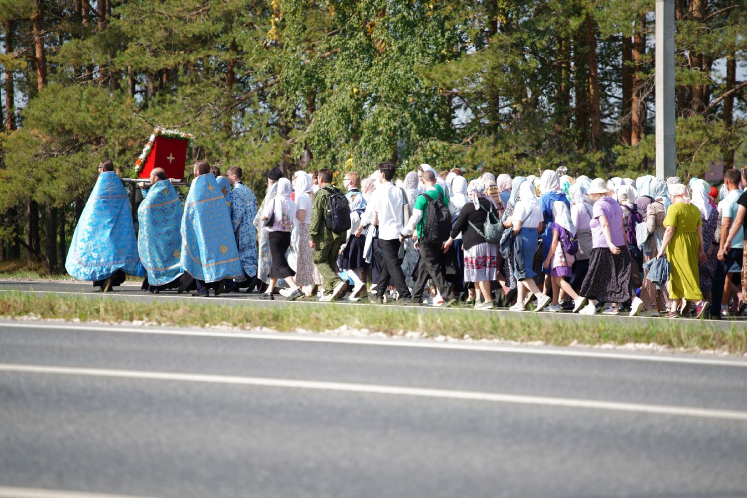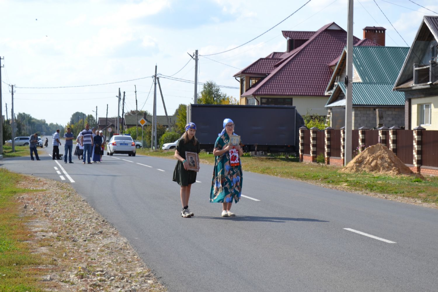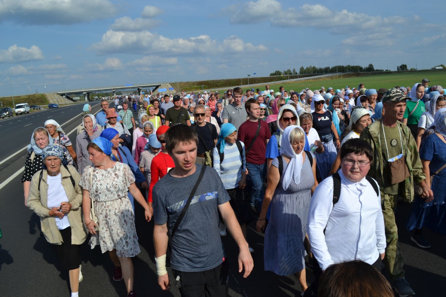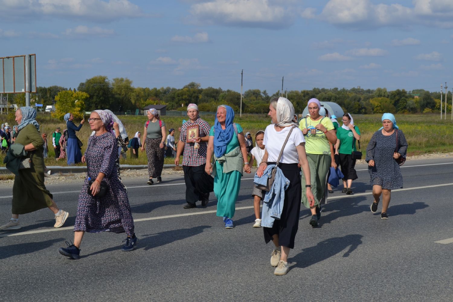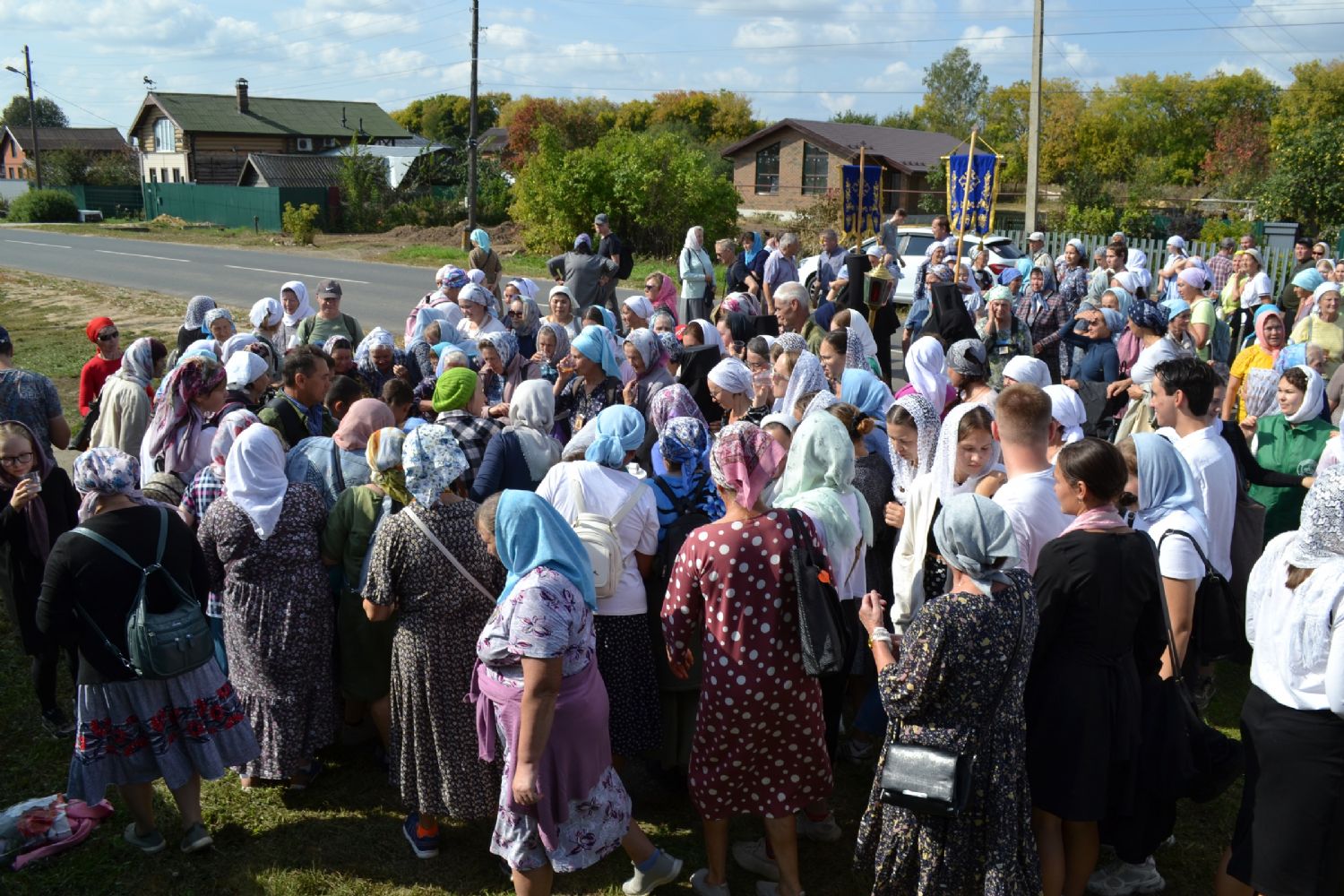 После трапезы верующие, обойдя крестным ходом с Мироносицкой иконой Божией Матери вокруг храма, двинулись к селу Семеновка, пройдя по пути через села Ким, Юшково, Кузнецово, Данилово. На подходе к Семеновке крестоходцев радостно встретили священнослужители и прихожане храма Рождества Пресвятой Богородицы.