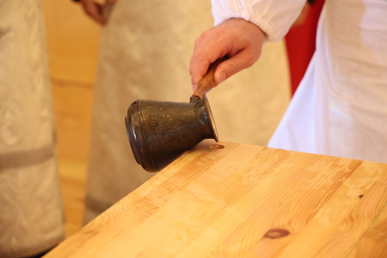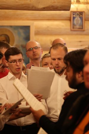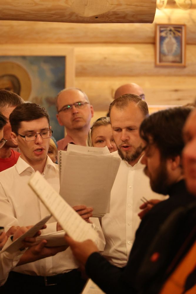 Его Преосвященству сослужили клирики Волжской епархии иерей Алексий Скрябин, иерей Виталий Ульянов и диакон Иоанн Захаров, а также клирик Свято-Троицкого Алатырского мужского монастыря иеромонах Израиль (Арсентьев). Песнопения исполнял мужской Архиерейский хор Казанской епархии под управлением регента Дениса Рогова.