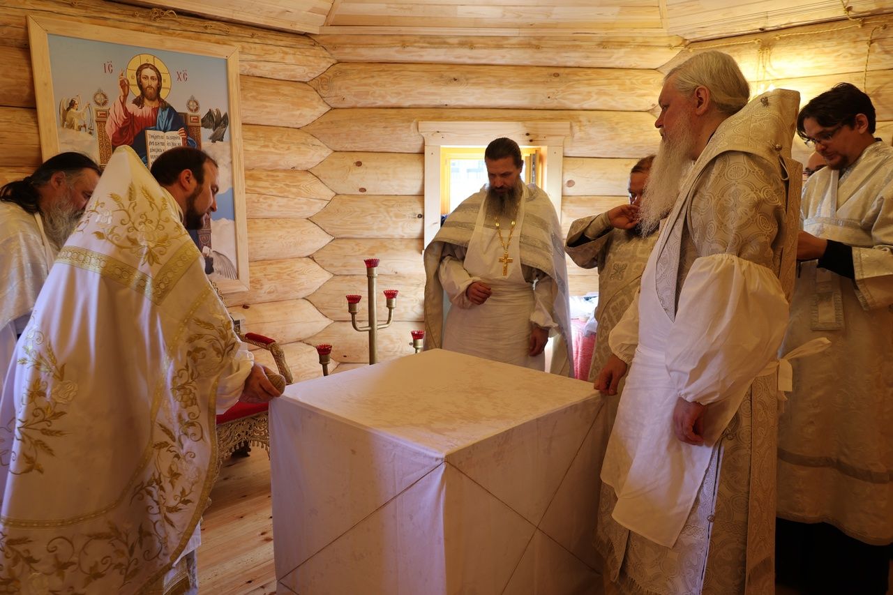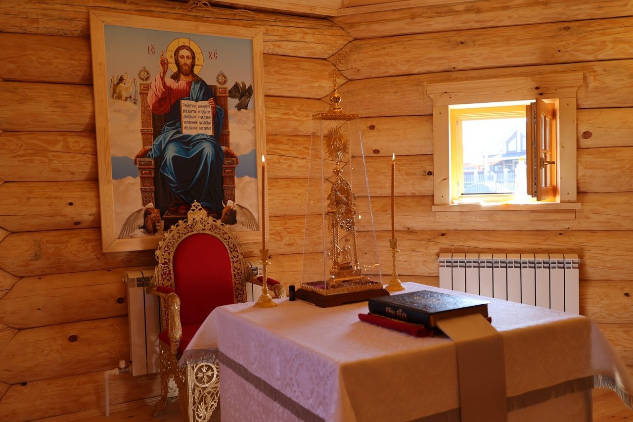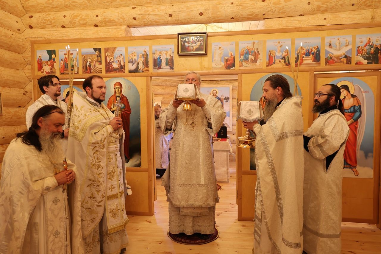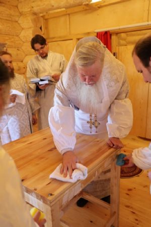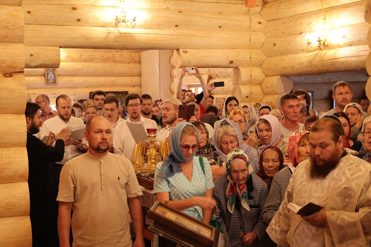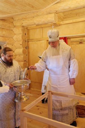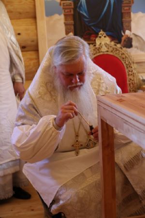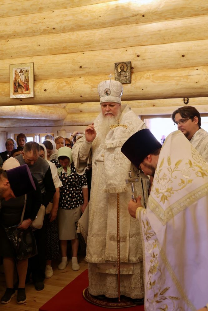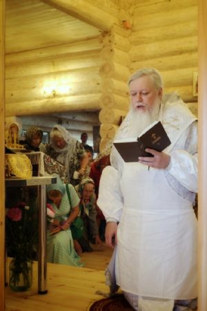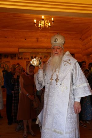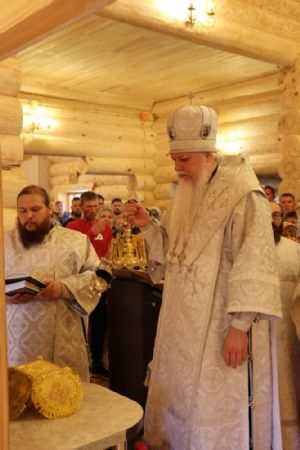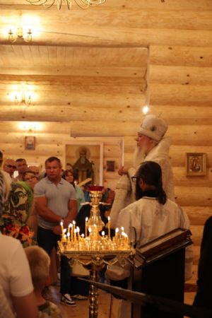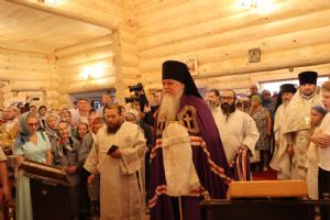 Сегодня мы с Божией помощью совершили освящение этого храма в честь Владимирской иконы Божией Матери, как раз на престольный праздник. Надеюсь, что все люди, притекающие сюда с верой и упованием на помощь Божией Матери, будут уходить из храма утешенными, умиротворенными. И жизнь их будет проходить под покровом Царицы Небесной.