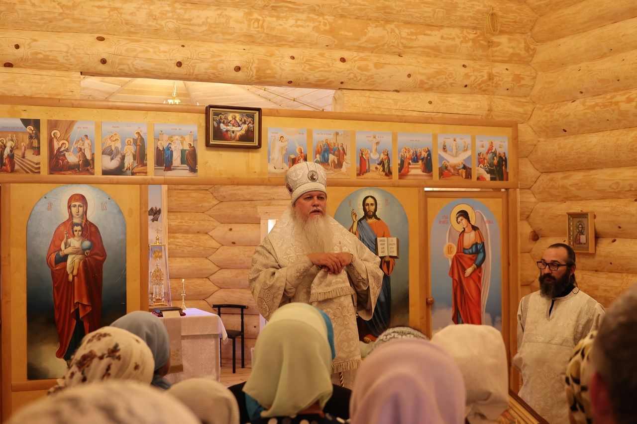По окончании богослужения архипастырь обратился к собравшимся с проповедью, рассказав об истории чудотворного образа Божией Матери «Владимирская» и Ее заступничестве за Святую Русь от нашествия врагов.