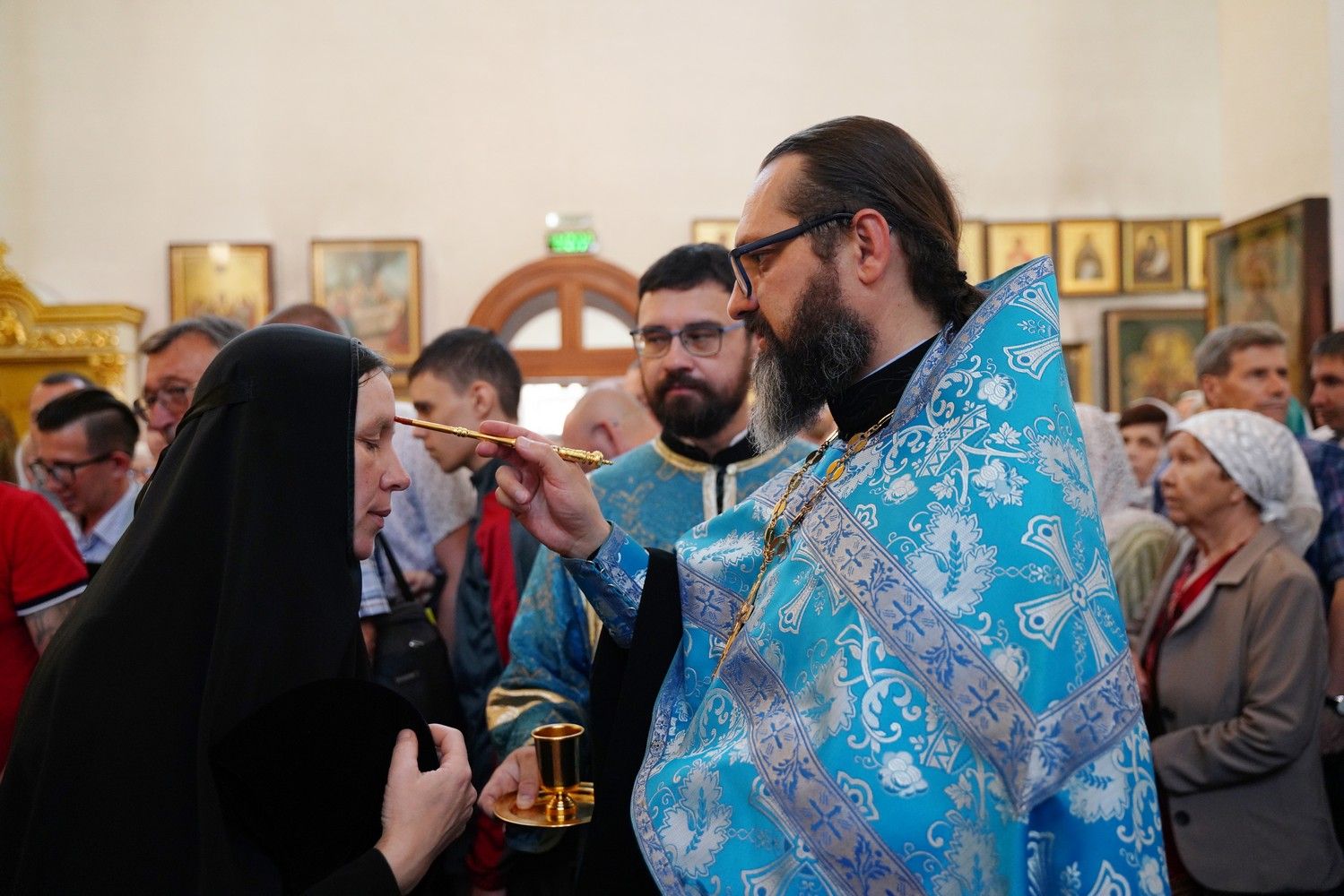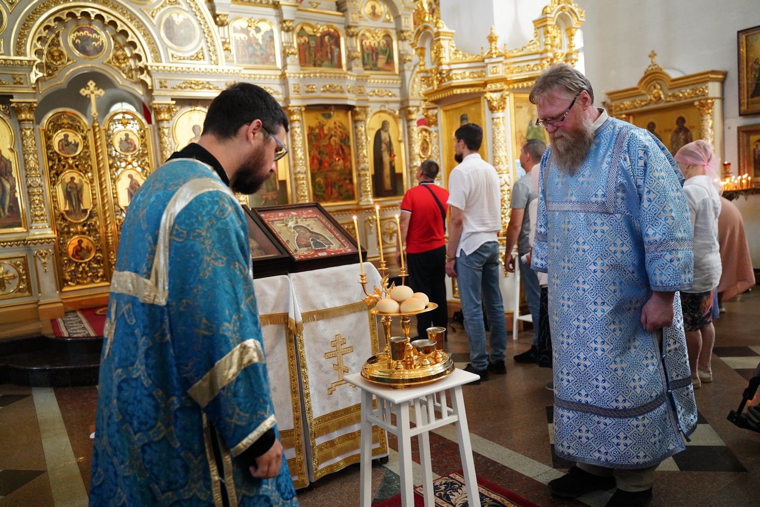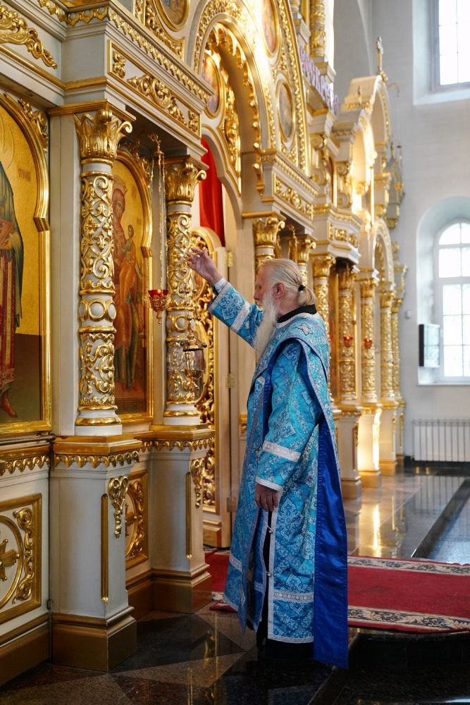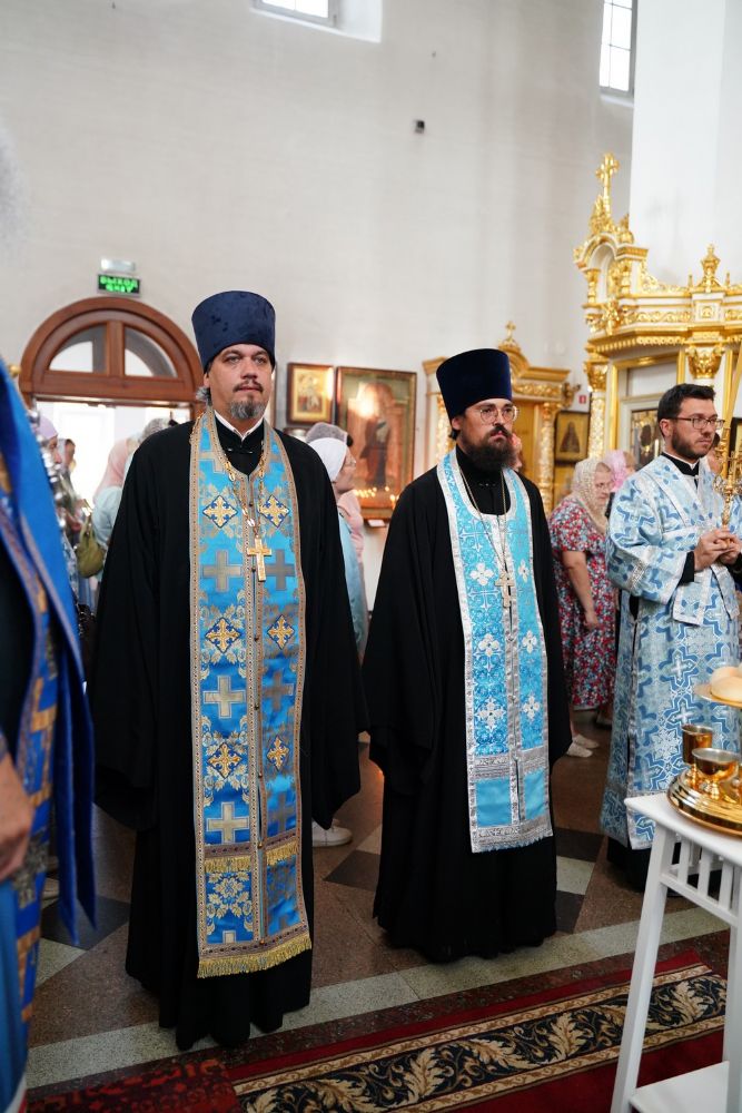 Владыке сослужили секретарь Йошкар-Олинского епархиального управления иерей Димитрий Дьяков, настоятель храма иерей Александр Лоскутов, клирики храма иерей Никита Смирнов, иерей Евгений Симаков и диакон Димитрий Кудряшов, а также протодиакон Михаил Козловский. Песнопения исполнял хор храма под управлением регента Наталии Поповой.
