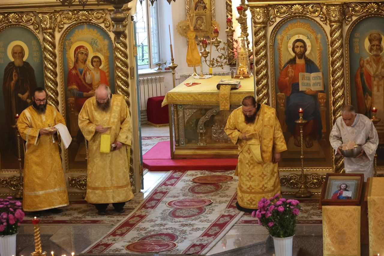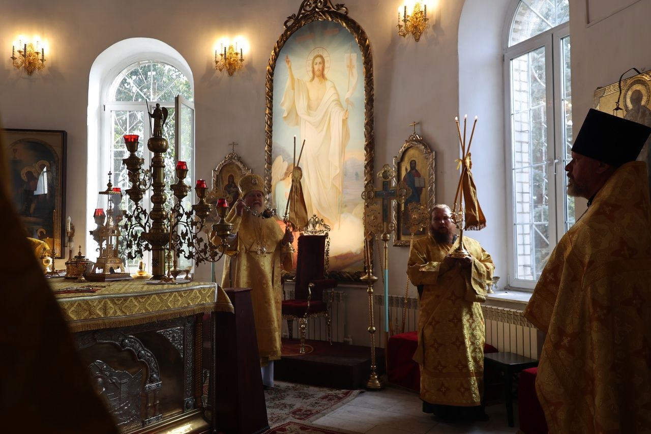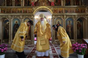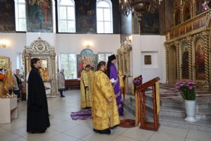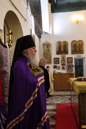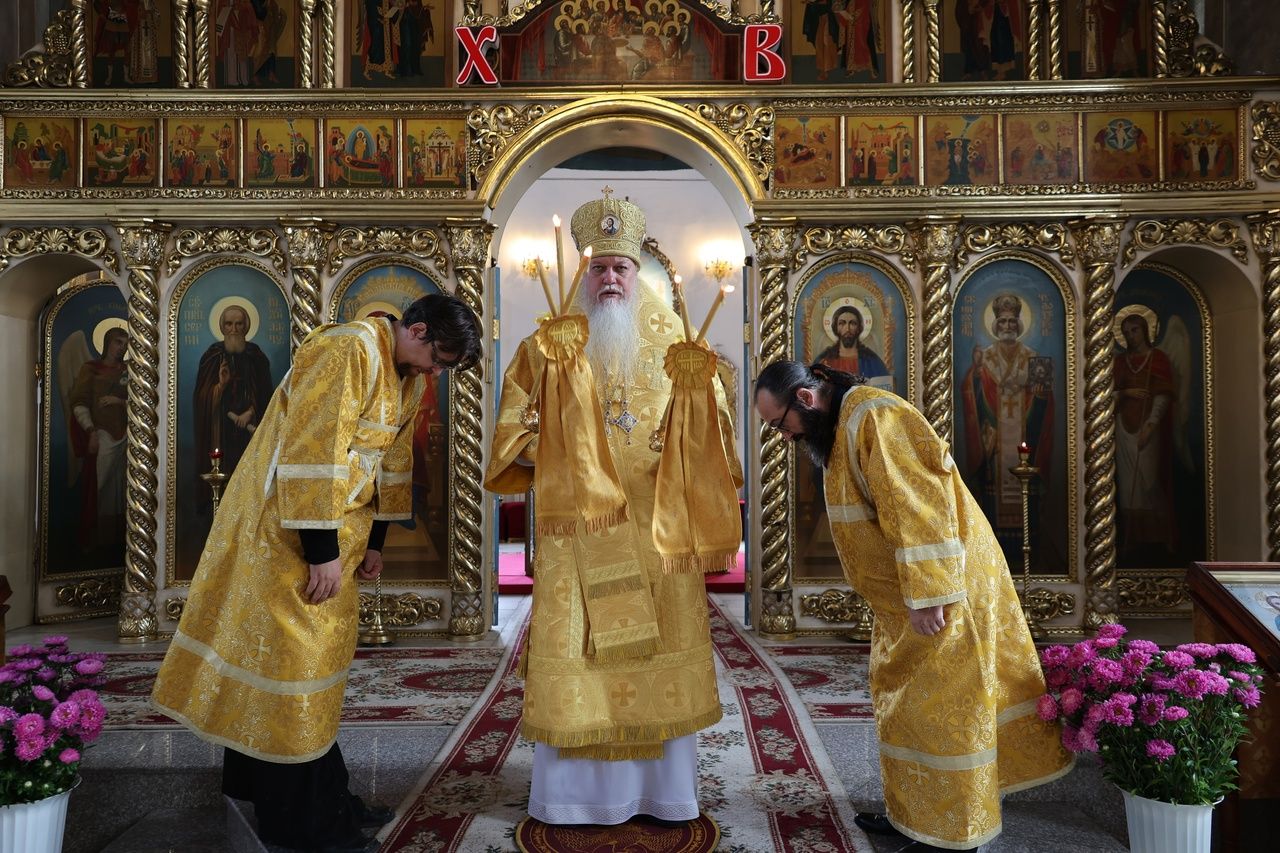 Его Преосвященству сослужили клирики собора, песнопения исполнял архиерейский хор.