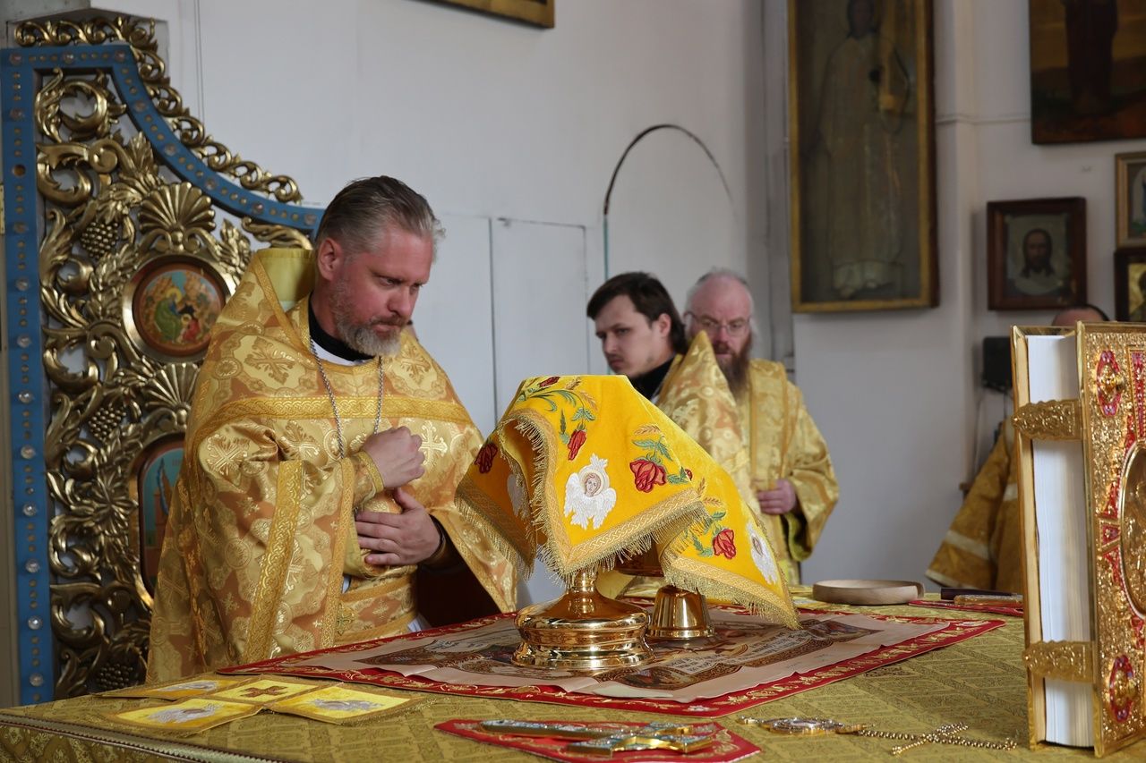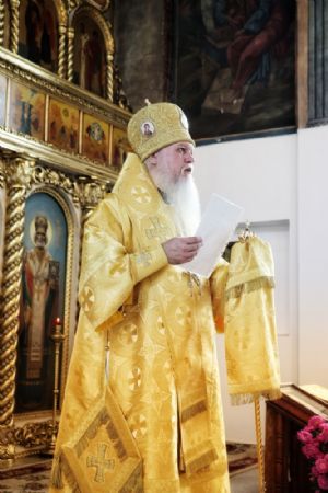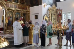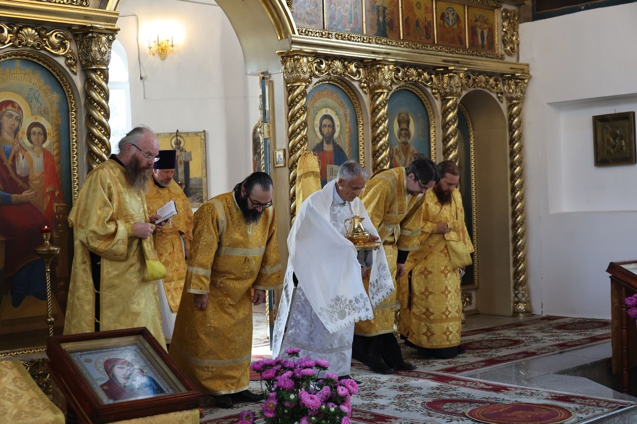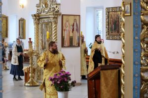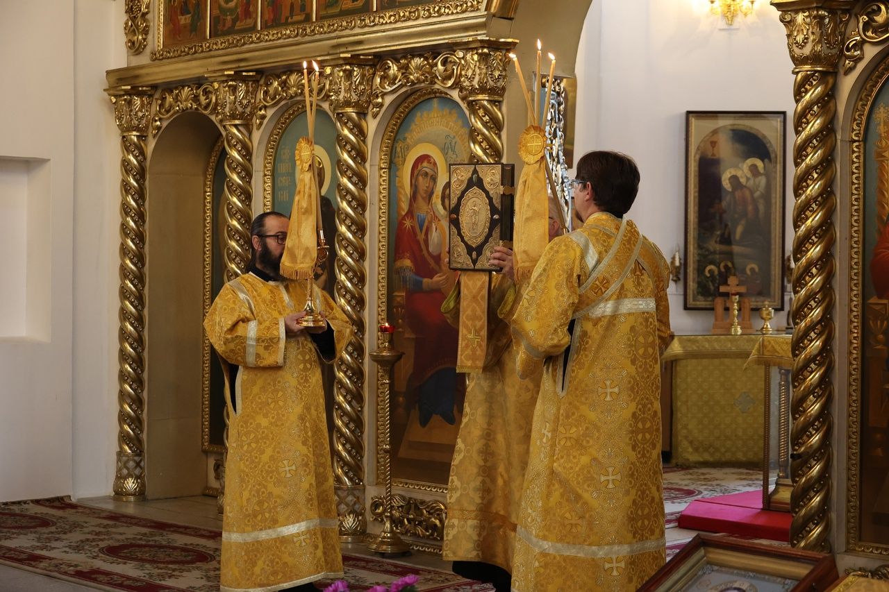 Его Преосвященству сослужили клирики собора, песнопения исполнял архиерейский хор.