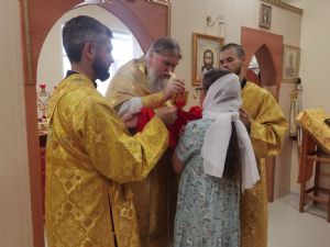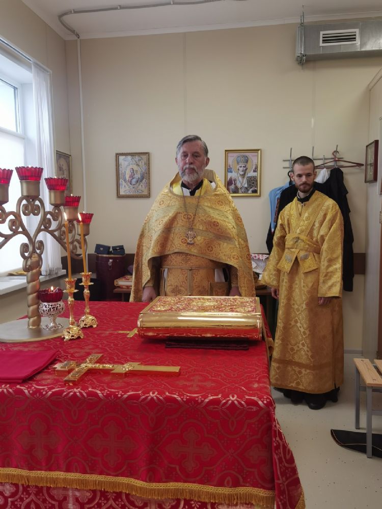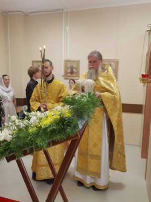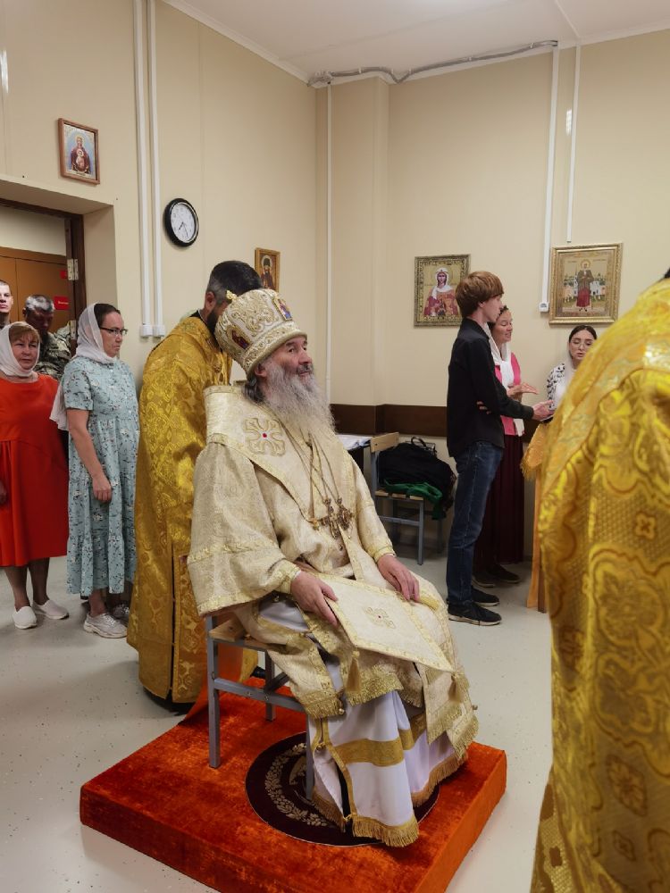 Владыке сослужили полковой священник иерей Георгий Колотов, настоятель храма преподобного Серафима Саровского г. Йошкар-Ола протоиерей Александр Бачурин и протодиакон Михаил Козловский. Песнопения исполнял малый состав хора храма мученицы Татианы под управлением регента Аллы Симаковой.