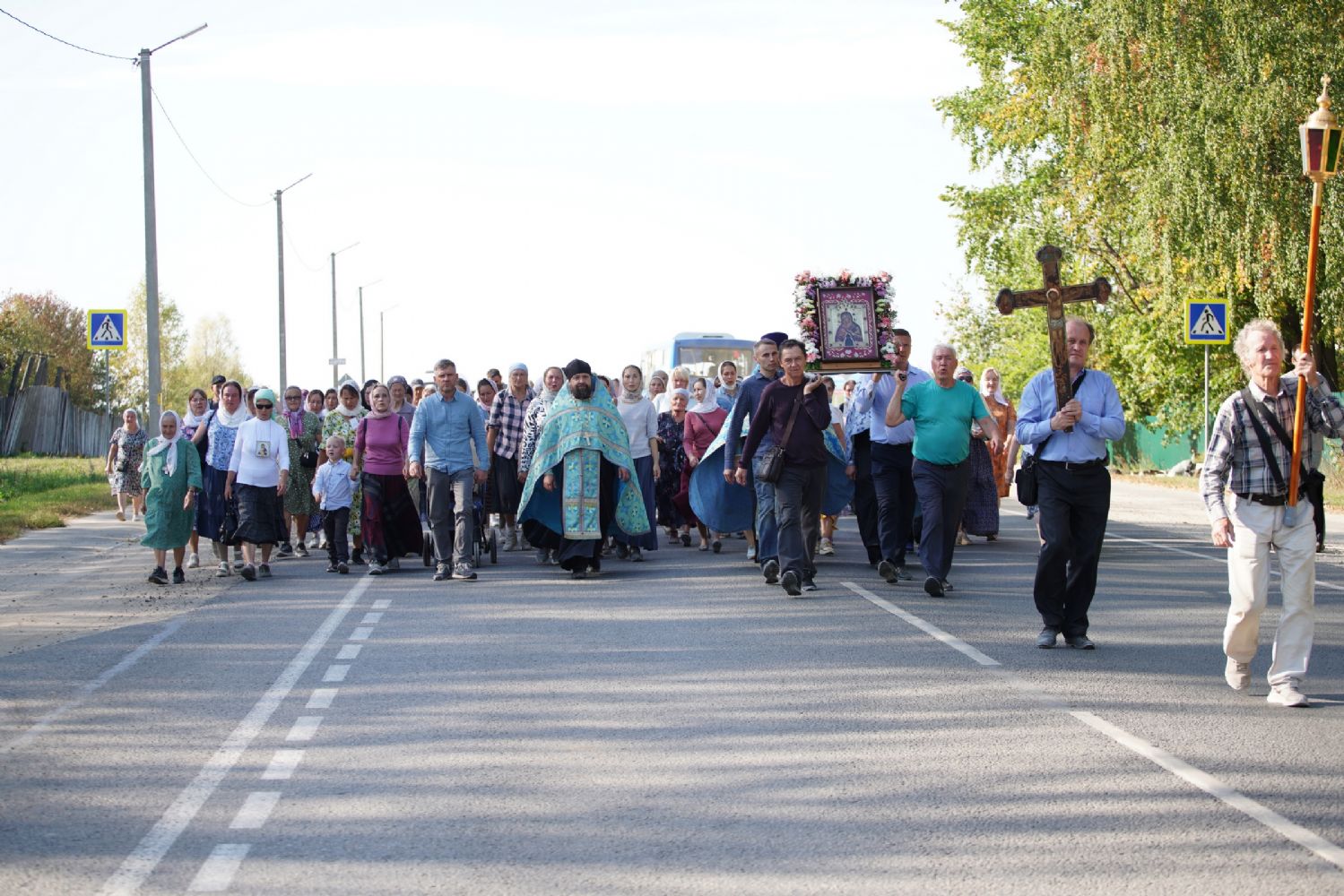Храм был переполнен – вознести молитвы Пресвятой Богородице и пройти с Ее чудотворной иконой самый длинный участок маршрута крестного хода собралось множество людей всех возрастов. После праздничной трапезы был совершен молебен, и крестный ход отправился в 20-километровое шествие. Сопровождали крестоходцев настоятель храма иерей Александр Коваль, настоятель Свято-Троицкого храма с. Красный Яр иерей Михаил Репин и клирик Воскресенского собора г. Йошкар-Олы иерей Игорь Коваль.