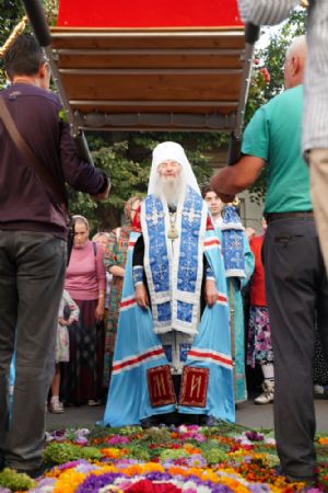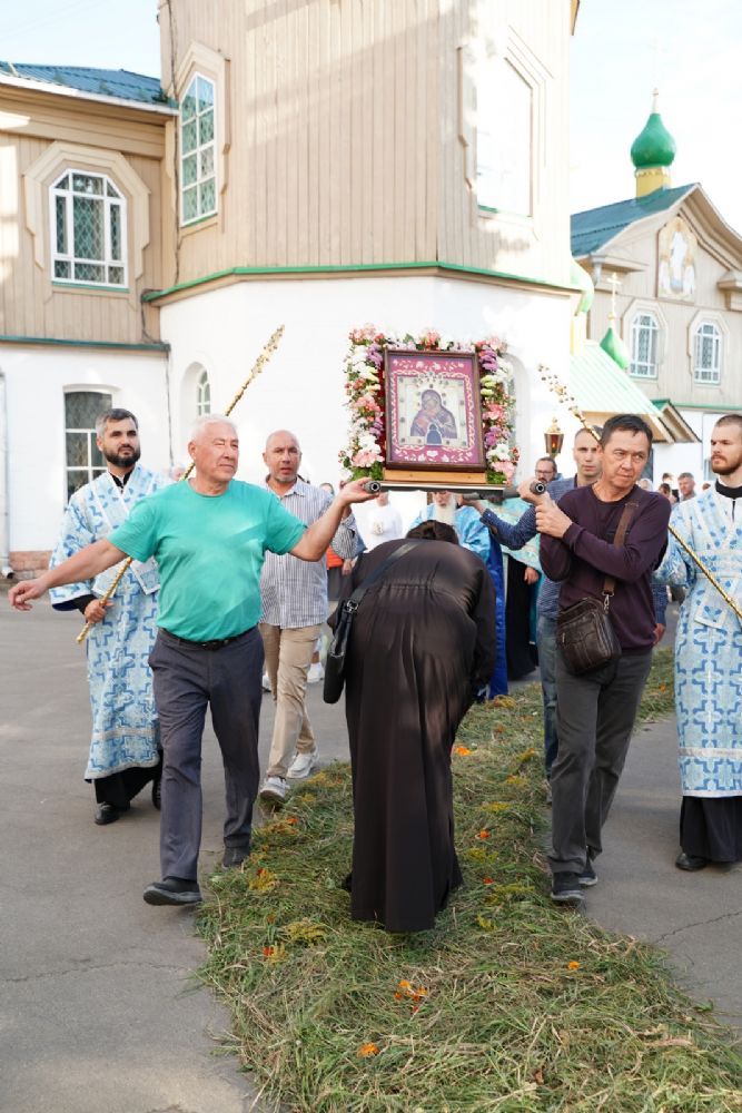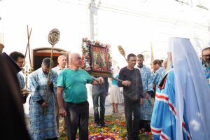 Встречал икону на территории Йошкар-Олинского епархиального управления митрополит Йошкар-Олинский и Марийский Иоанн. Подойдя к домовому храму в честь иконы Богородицы «Троеручцица», верующие и духовенство вознесли молитву ко Пресвятой Богородице. Крестоходцы подкрепили силы трапезой, после чего в храме началось всенощное бдение.