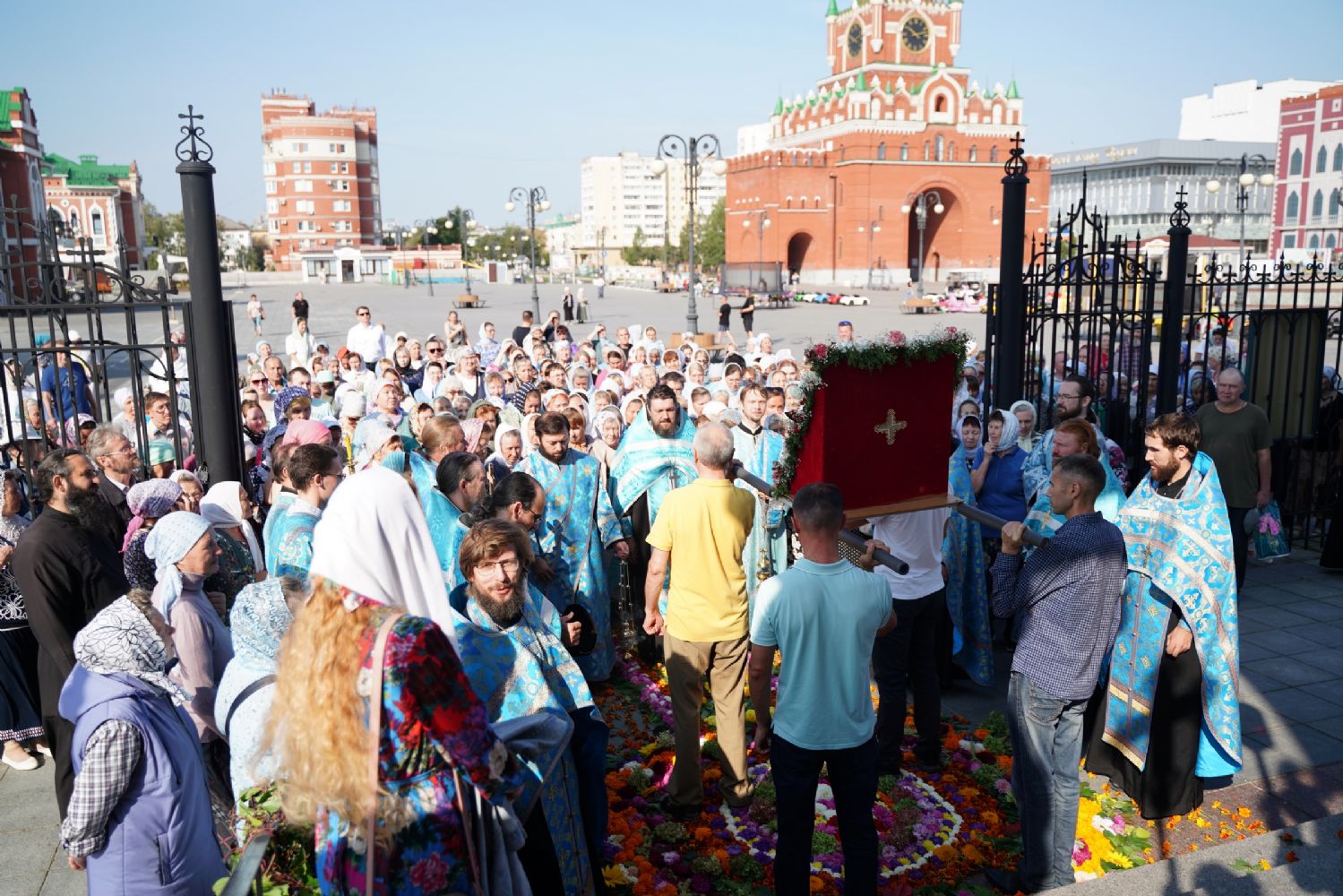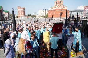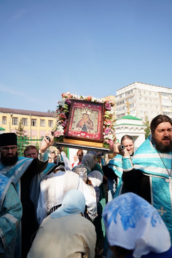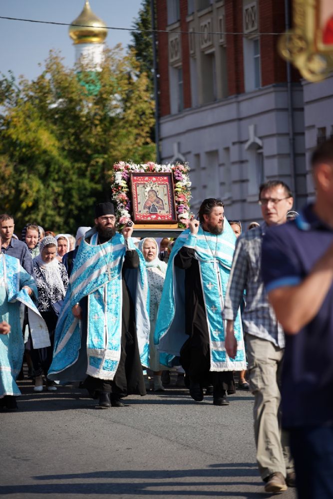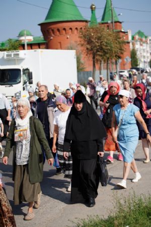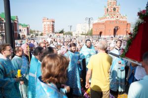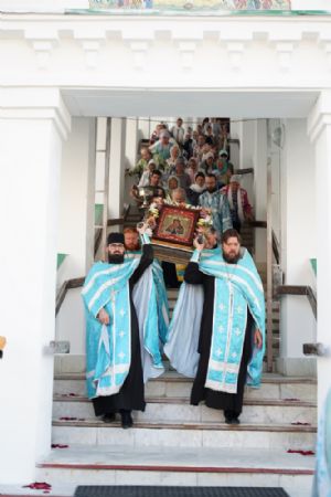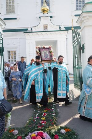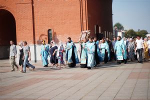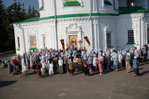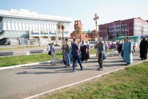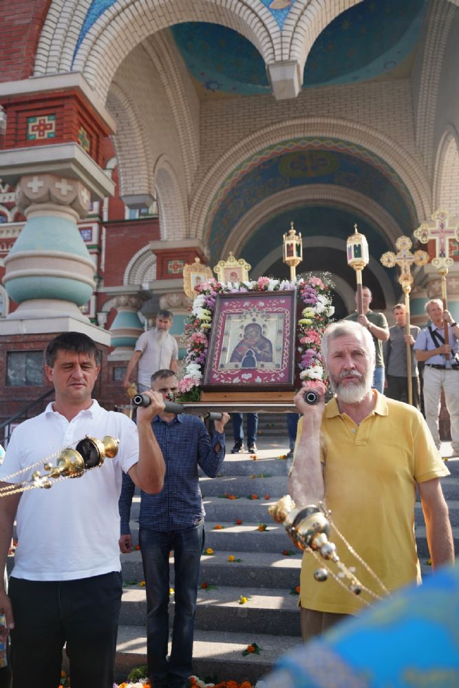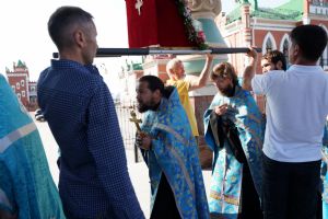 13 сентября после Божественной литургии в Вознесенском соборе г. Йошкар-Олы крестный ход с Мироносицкой иконой Божией Матери продолжил шествие по храмам города.