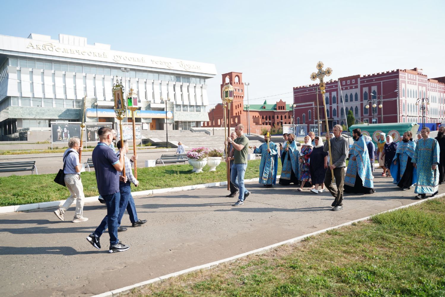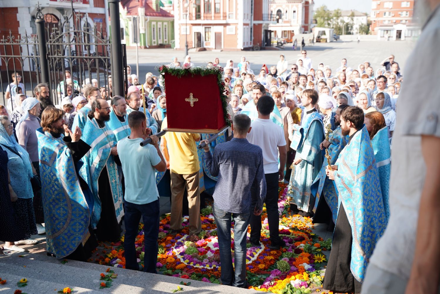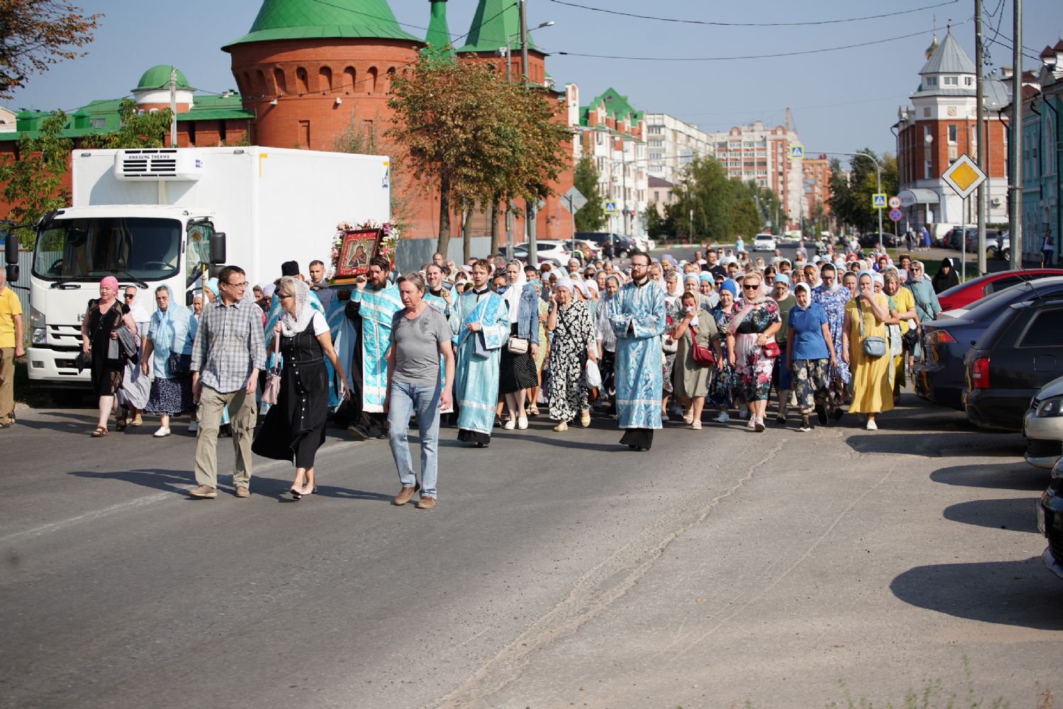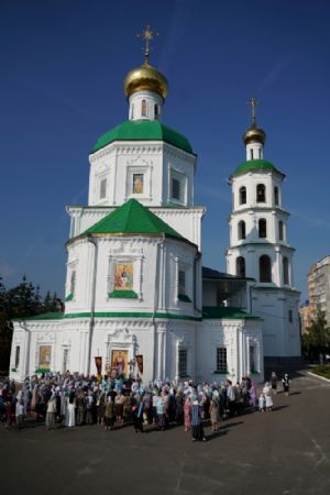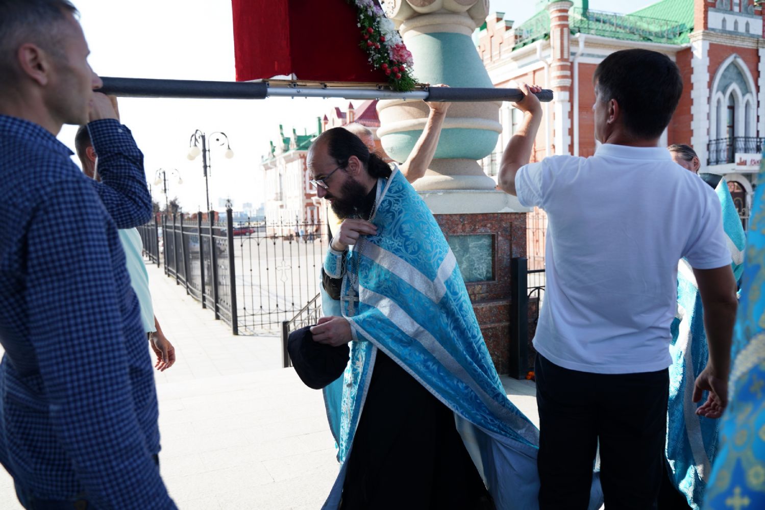 13 сентября после Божественной литургии в Вознесенском соборе г. Йошкар-Олы крестный ход с Мироносицкой иконой Божией Матери продолжил шествие по храмам города.