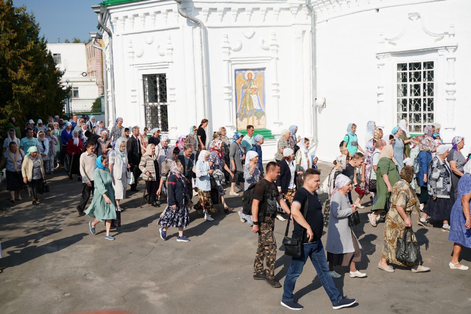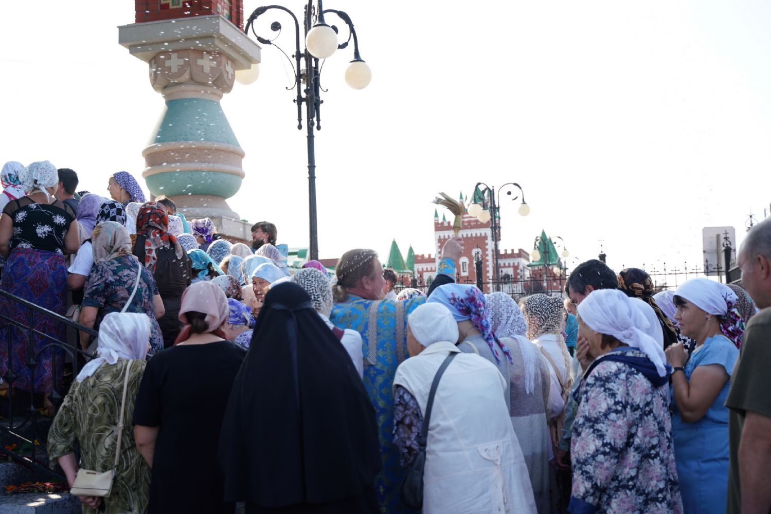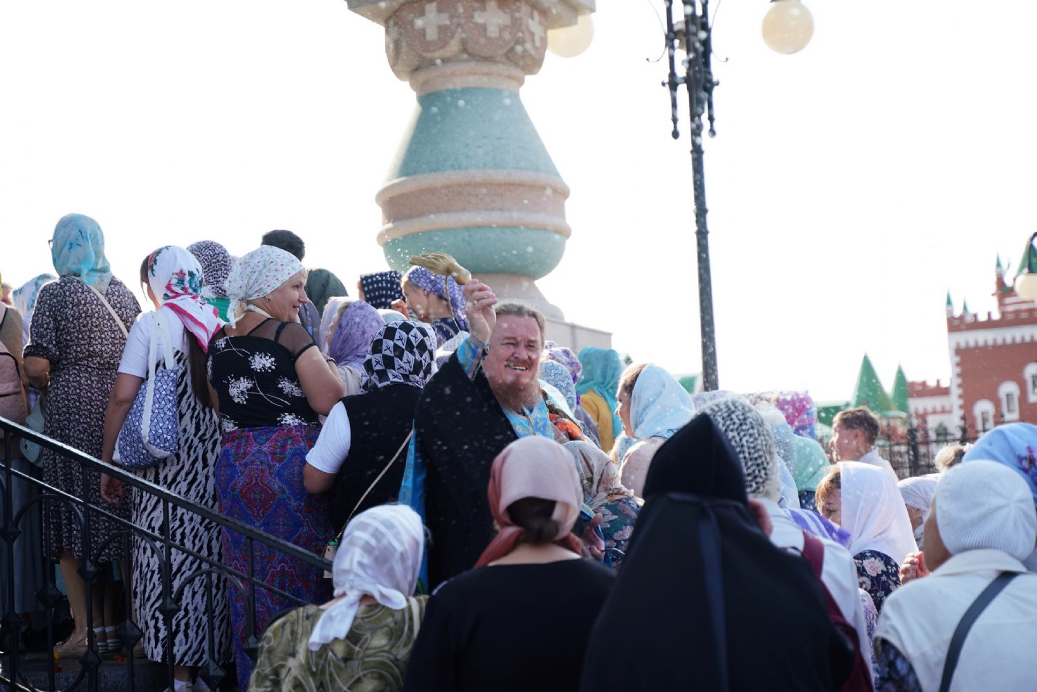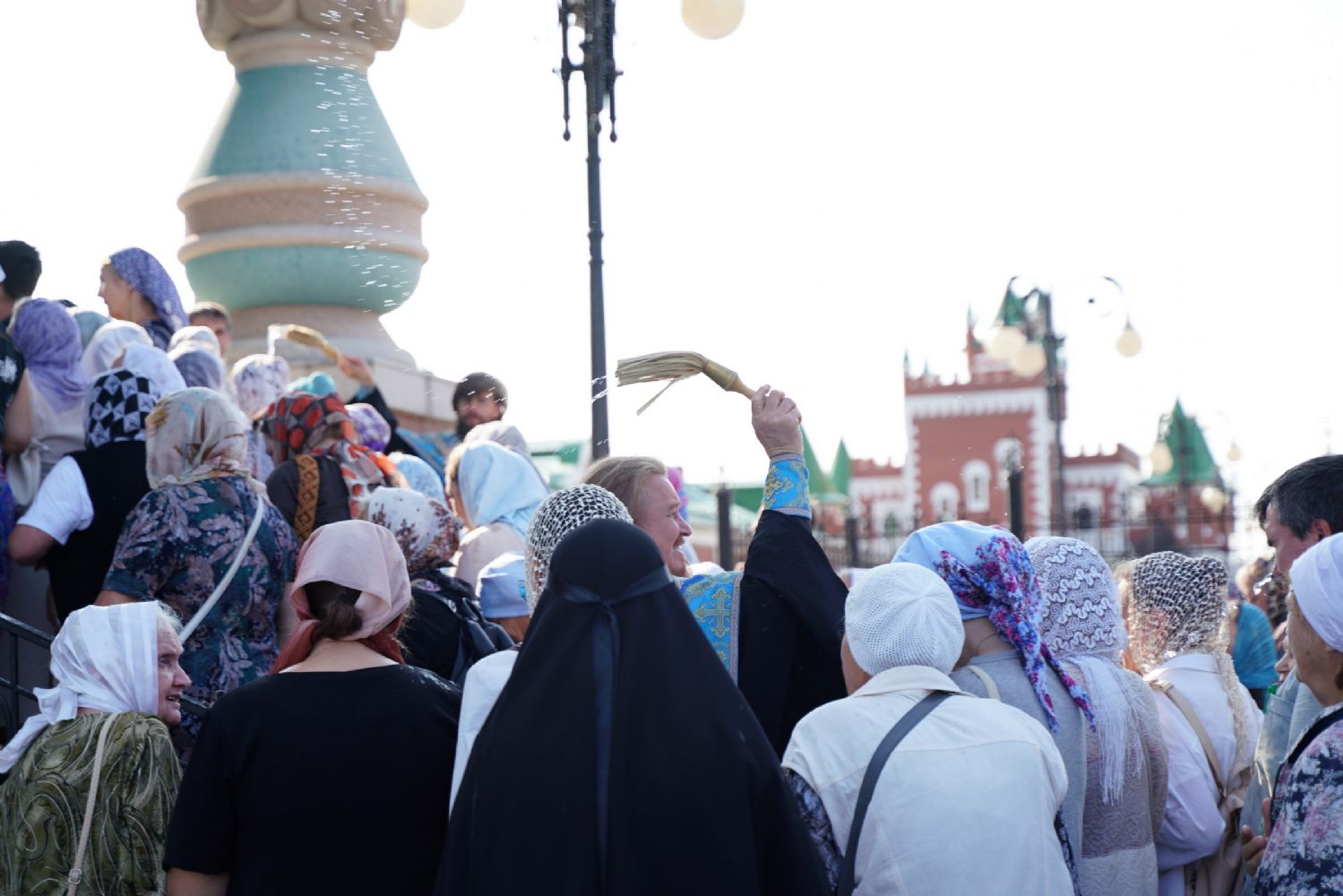 Вначале верующие во главе с настоятелем Вознесенского собора протоиереем Евгением Кутыревым обошли крестным ходом вокруг храма со чтением Евангелия и кроплением святой водой.