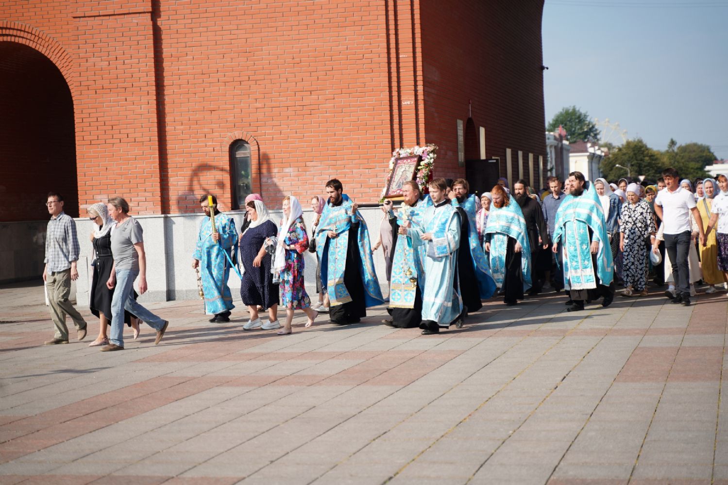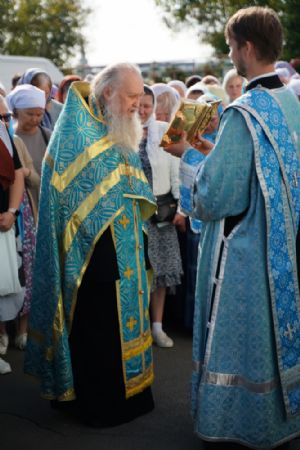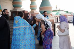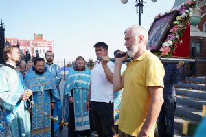 Далее крестоходцы двинулись по улицам города к Благовещенскому кафедральному собору, где их встретили ключарь собора протоиерей Сергий Поглазов, клирики собора и многочисленные прихожане. Все вместе вознесли молитву ко Пречистой, верующие благоговейно приложились к святыне.