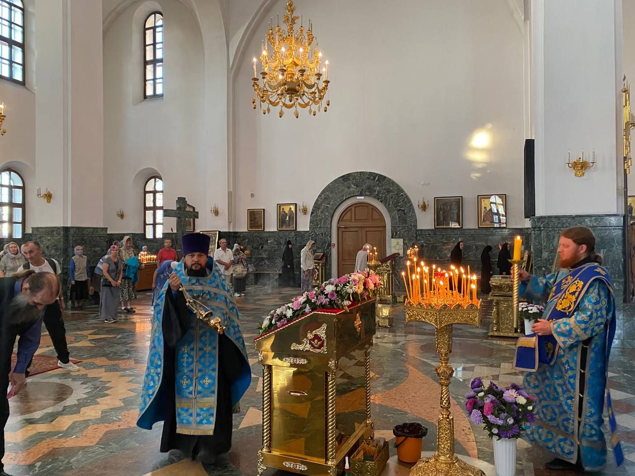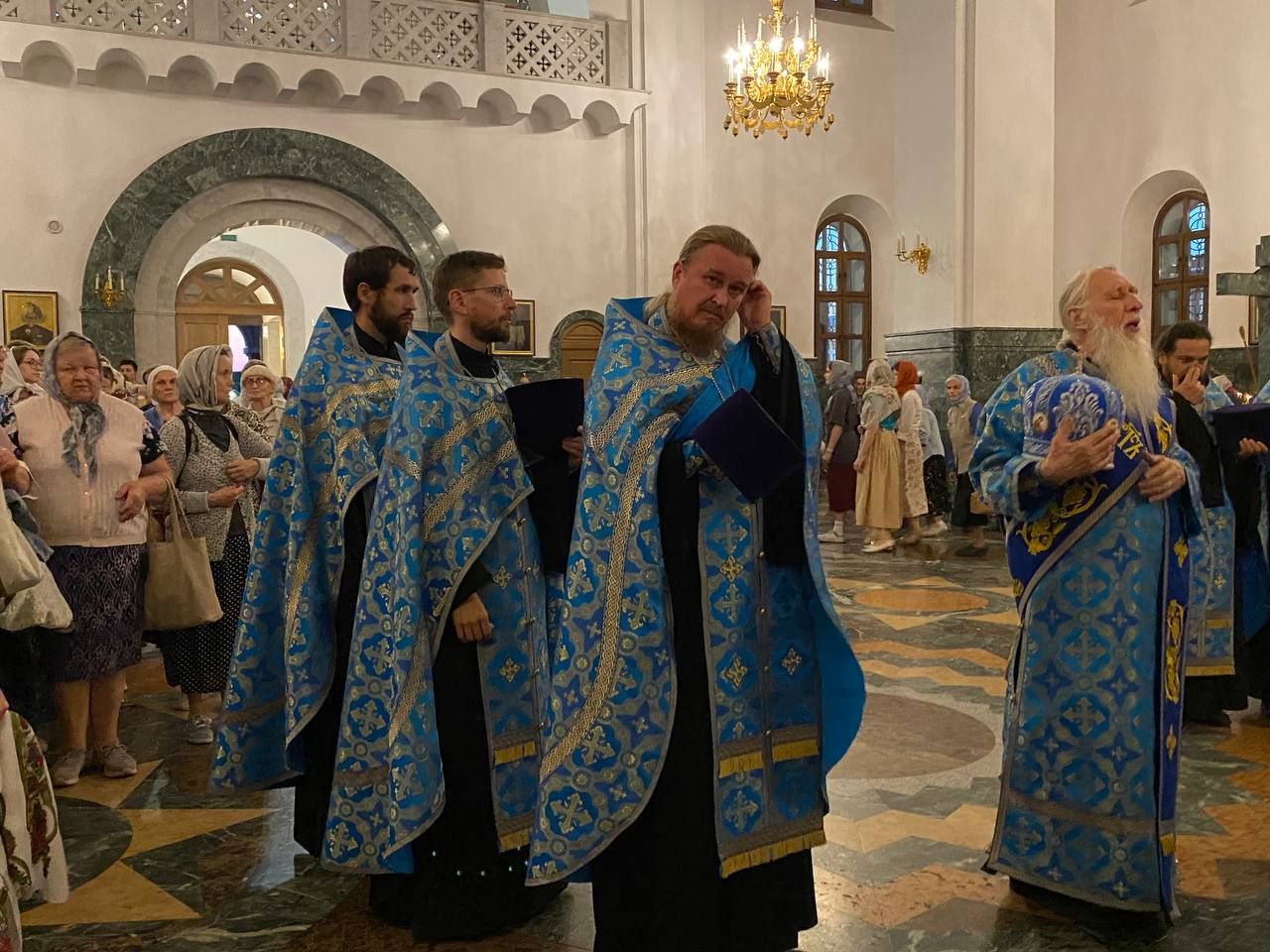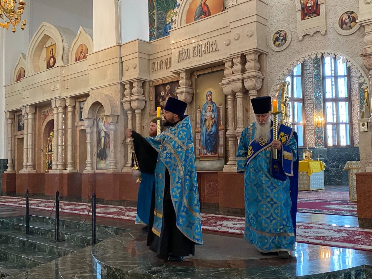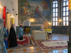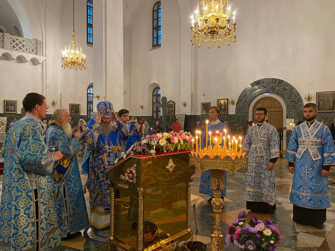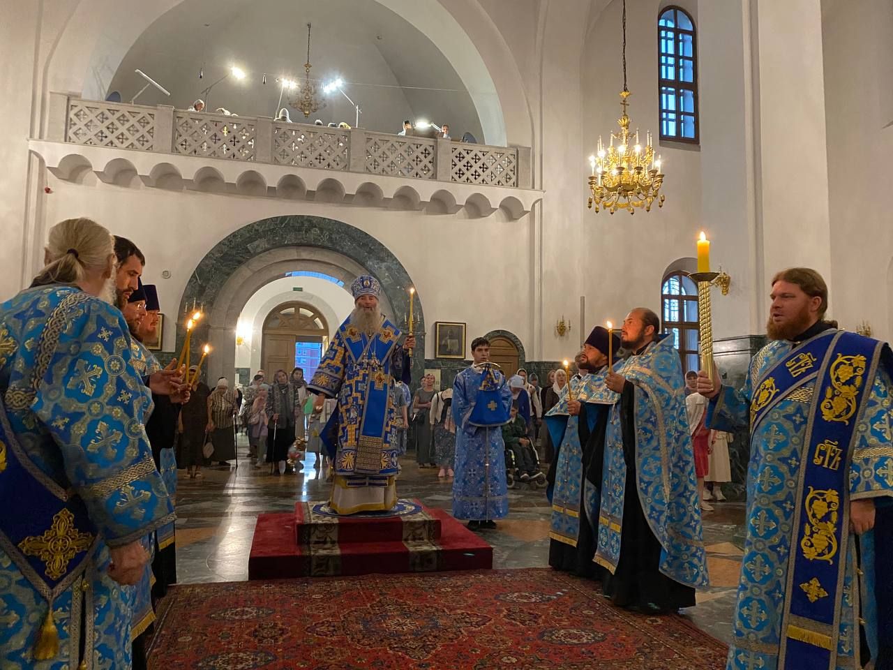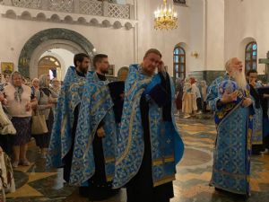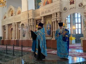 Архипастырю сослужили ключарь собора протоиерей Сергий Поглазов клирики собора иерей Никифор Захаров, иерей Евгений Самойлов, иерей Иоанн Милютин и диакон Андрей Дружинин, а также протодиакон Михаил Козловский. Песнопения исполнял детско-юношеский хор «Благовест» под управлением Надежды Поздеевой.