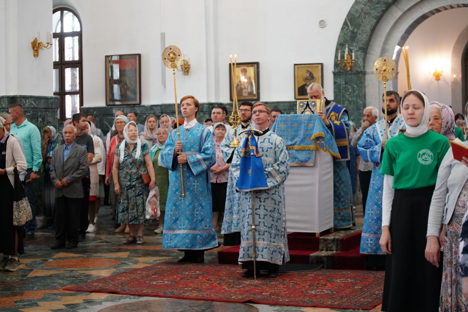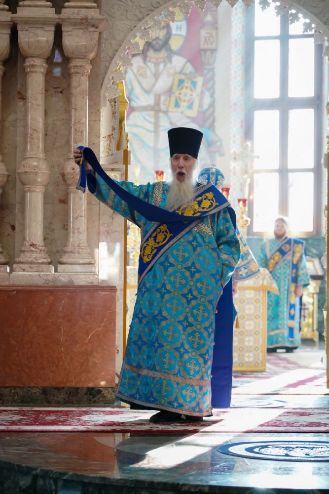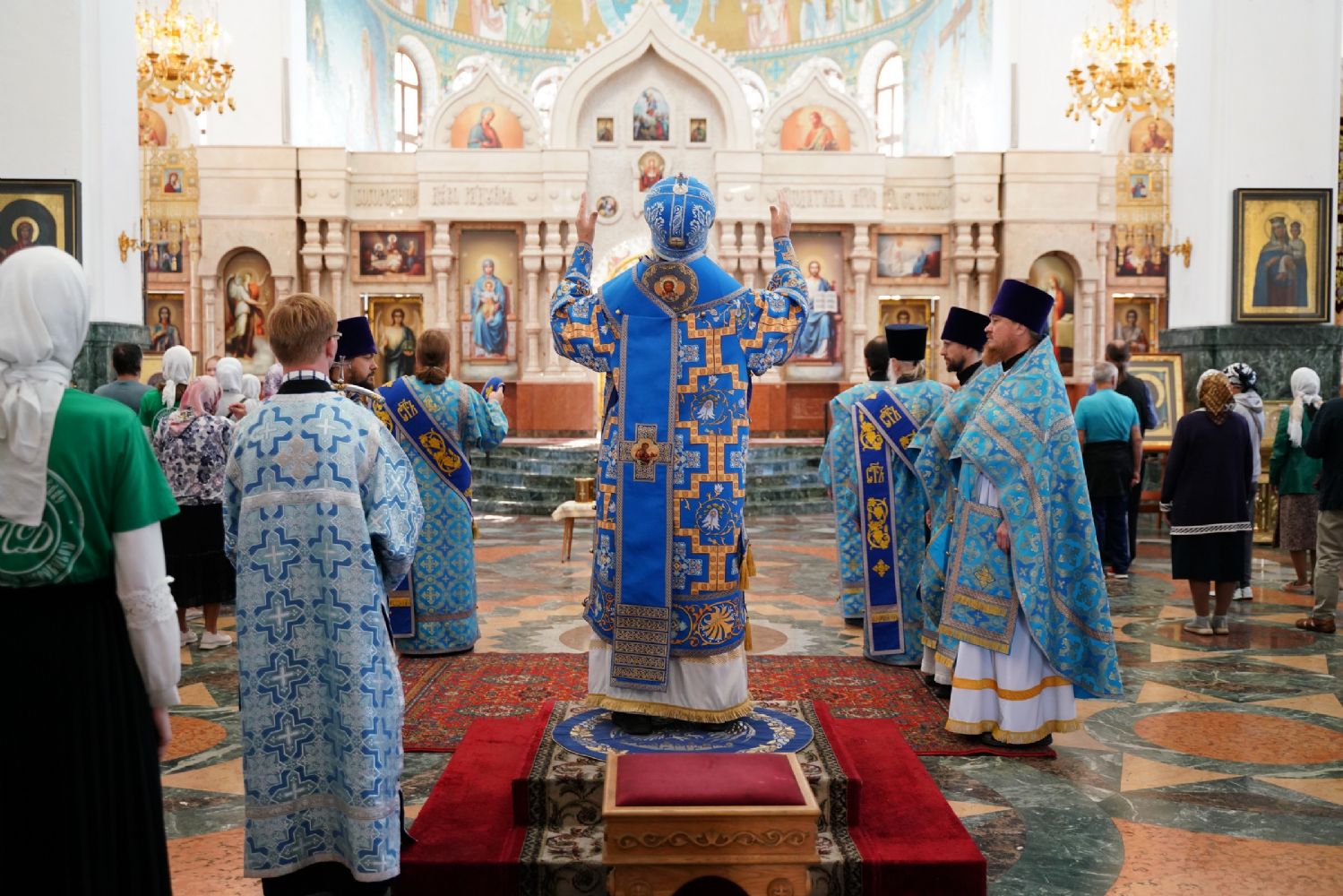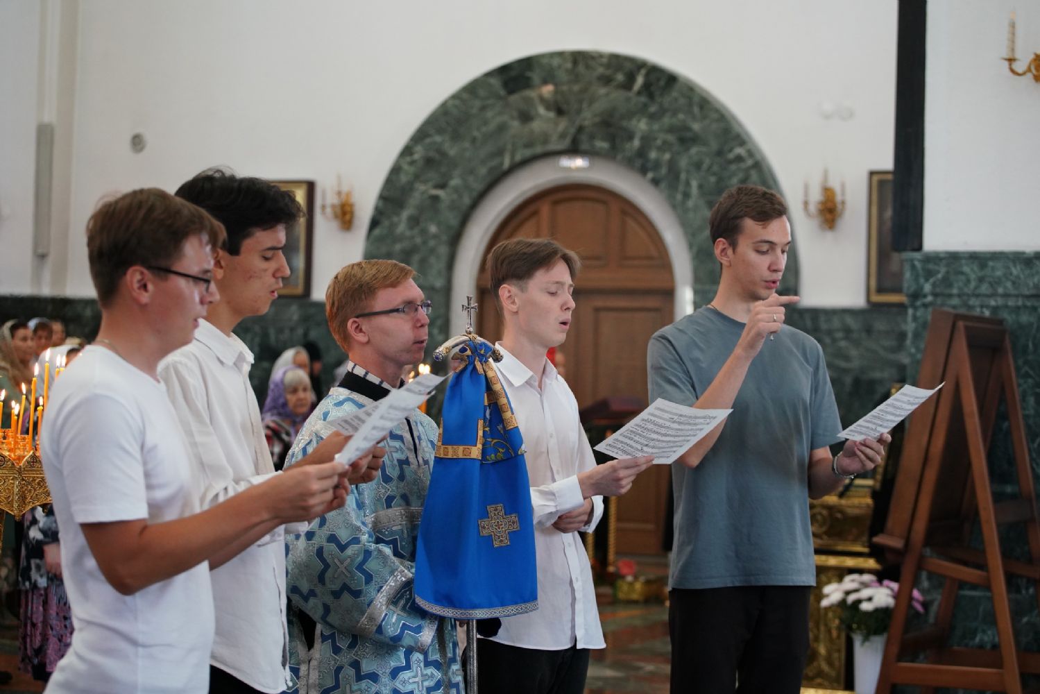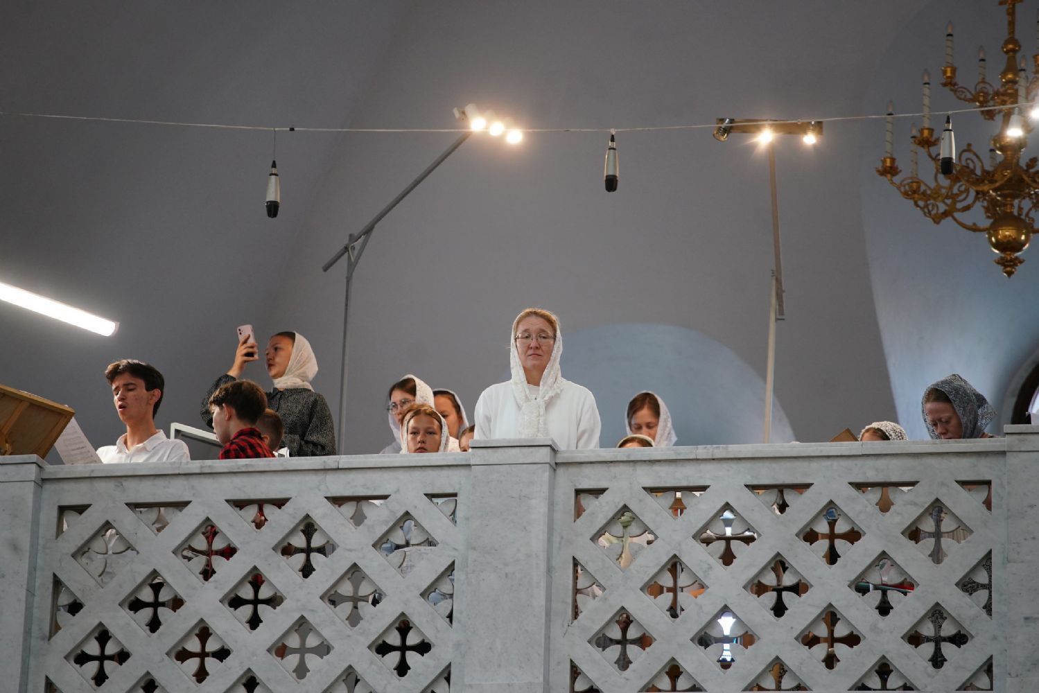 Архипастырю сослужили ключарь собора протоиерей Сергий Поглазов клирики собора иерей Никифор Захаров, иерей Евгений Самойлов, диаконы Андрей Дружинин и Артемий Бобоч, а также протодиакон Михаил Козловский. Песнопения исполнял детско-юношеский хор «Благовест» под управлением регента Татьяны Черновой.