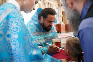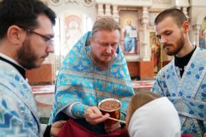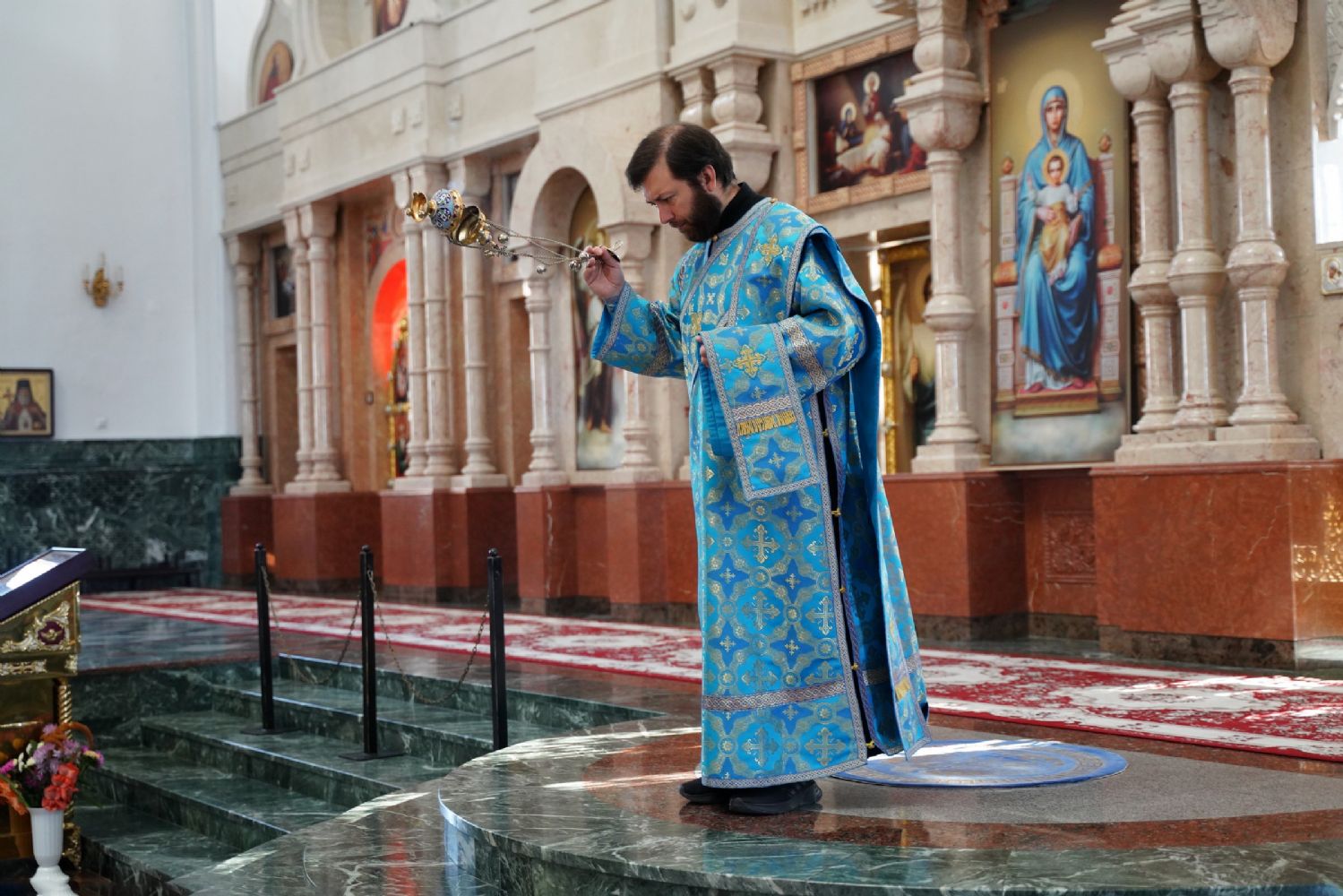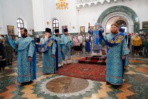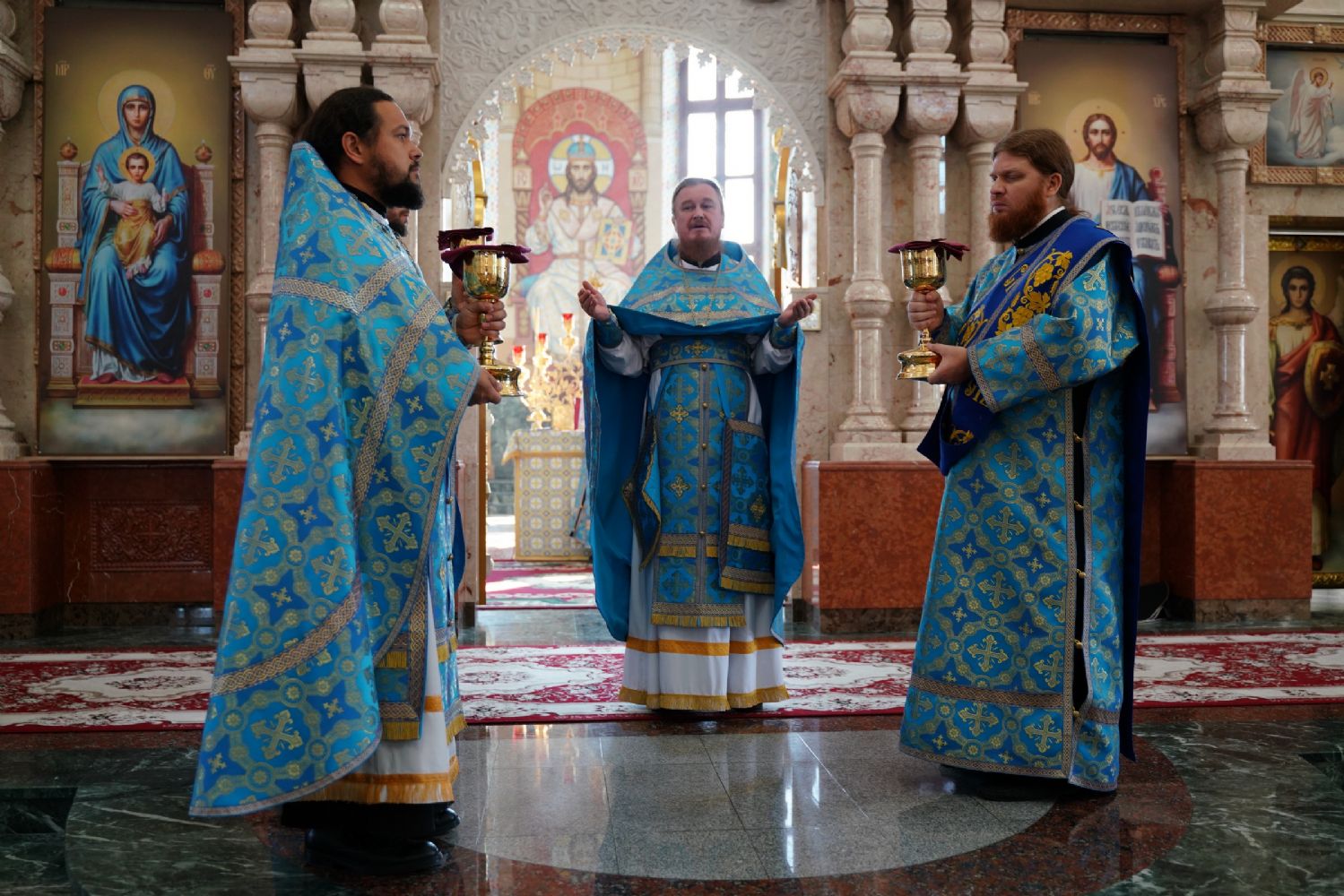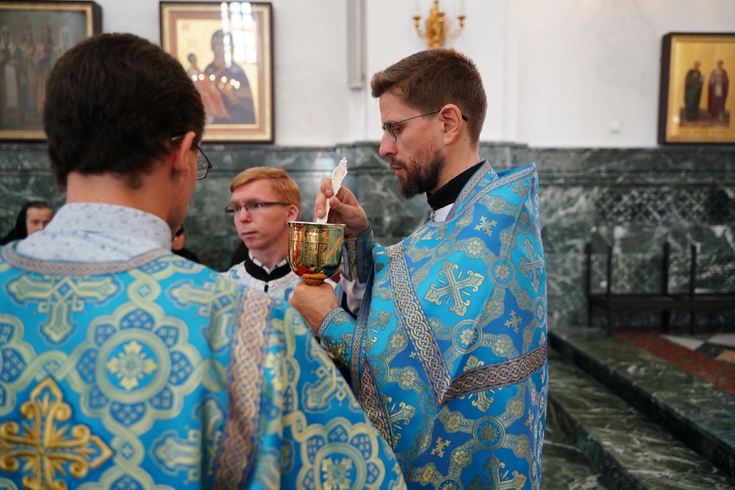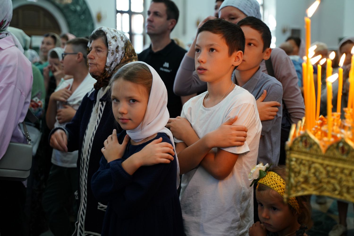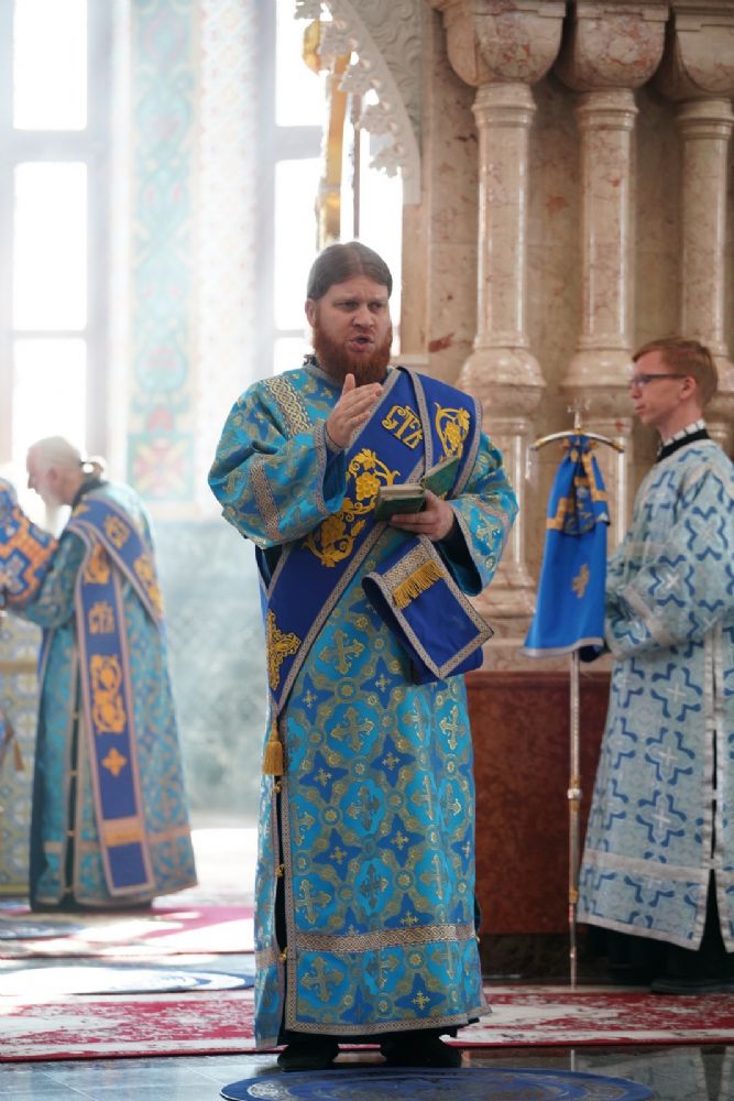 Архипастырю сослужили ключарь собора протоиерей Сергий Поглазов клирики собора иерей Никифор Захаров, иерей Евгений Самойлов, диаконы Андрей Дружинин и Артемий Бобоч, а также протодиакон Михаил Козловский. Песнопения исполнял детско-юношеский хор «Благовест» под управлением регента Татьяны Черновой.