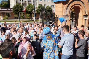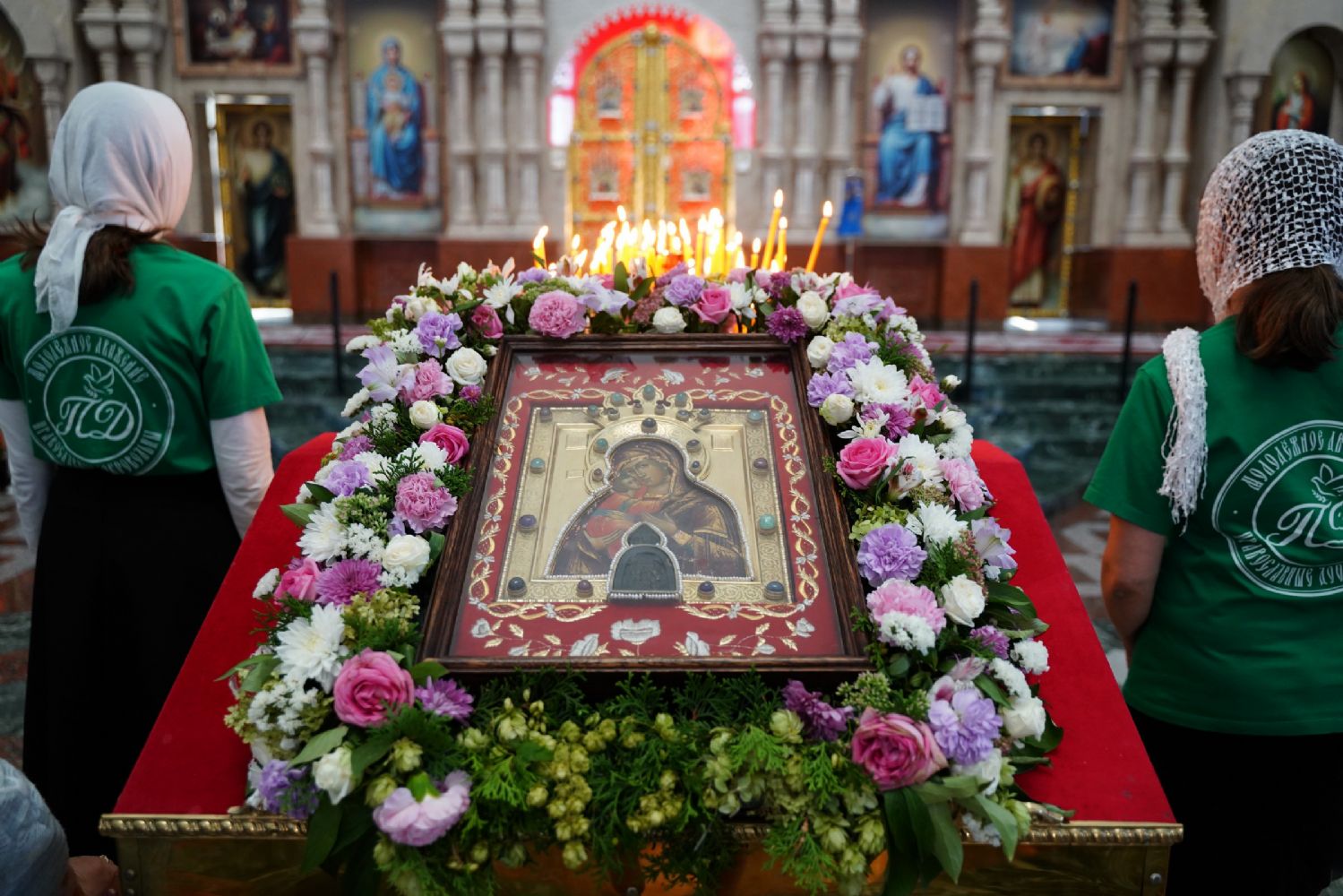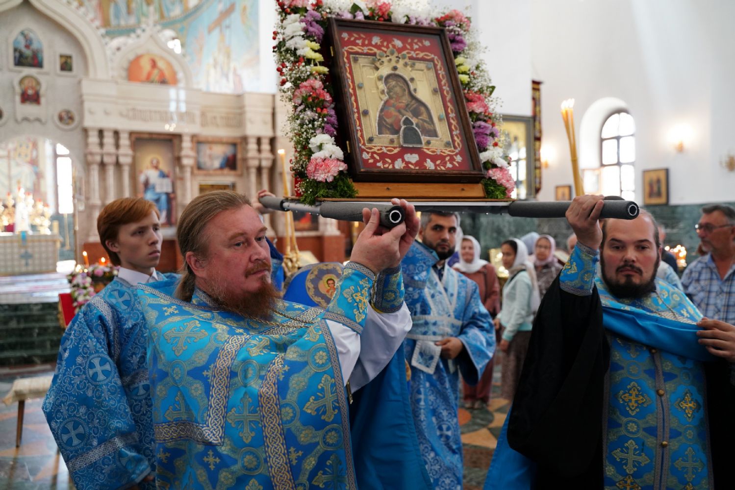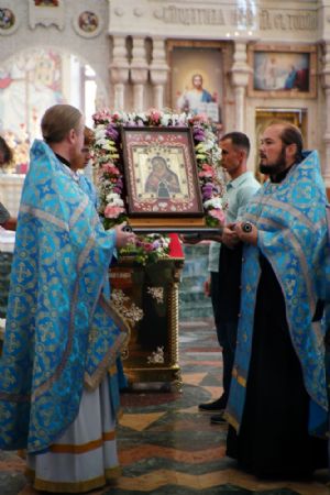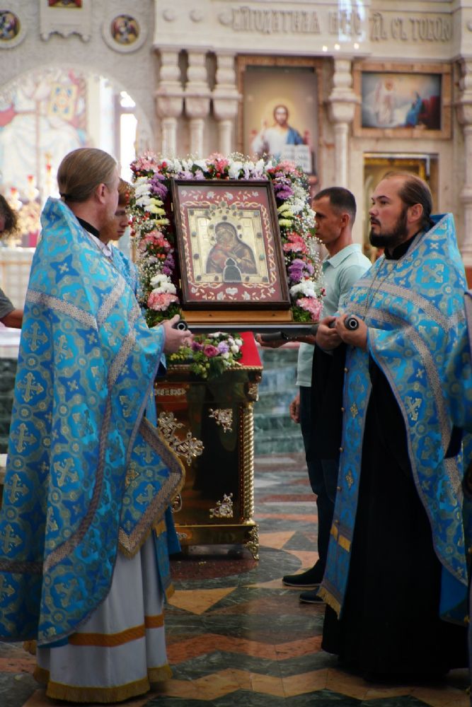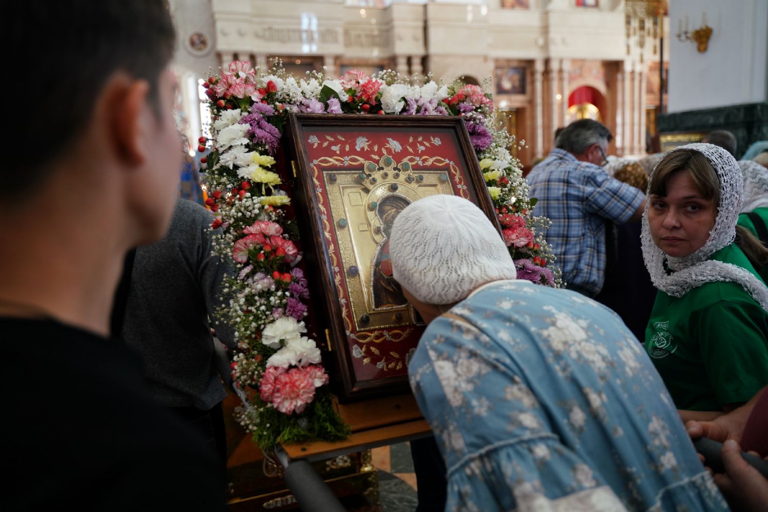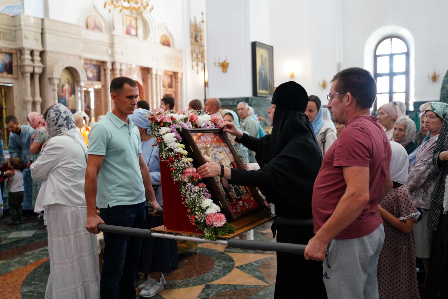 В Успенском храме Пресвятую Богородицу радостно встретили священносужители и прихожане. Был совершен молебен на новолетие и вознесена молитва Пресвятой Богородице, затем митрополит Иоанн обратился к собравшимся с архипастырским словом.