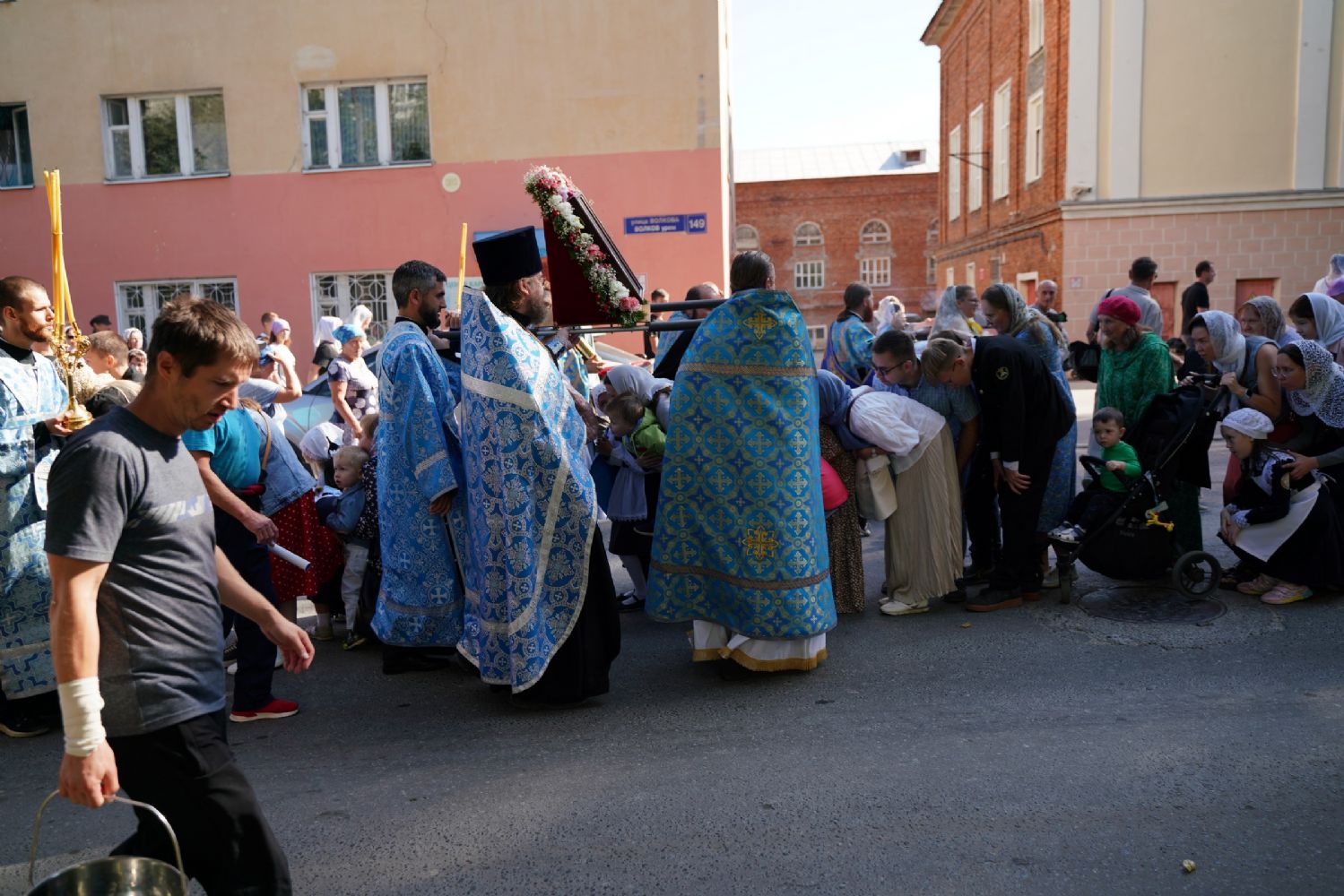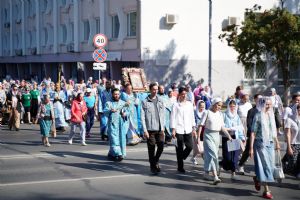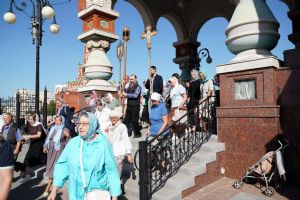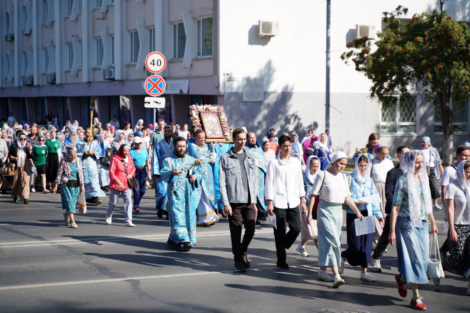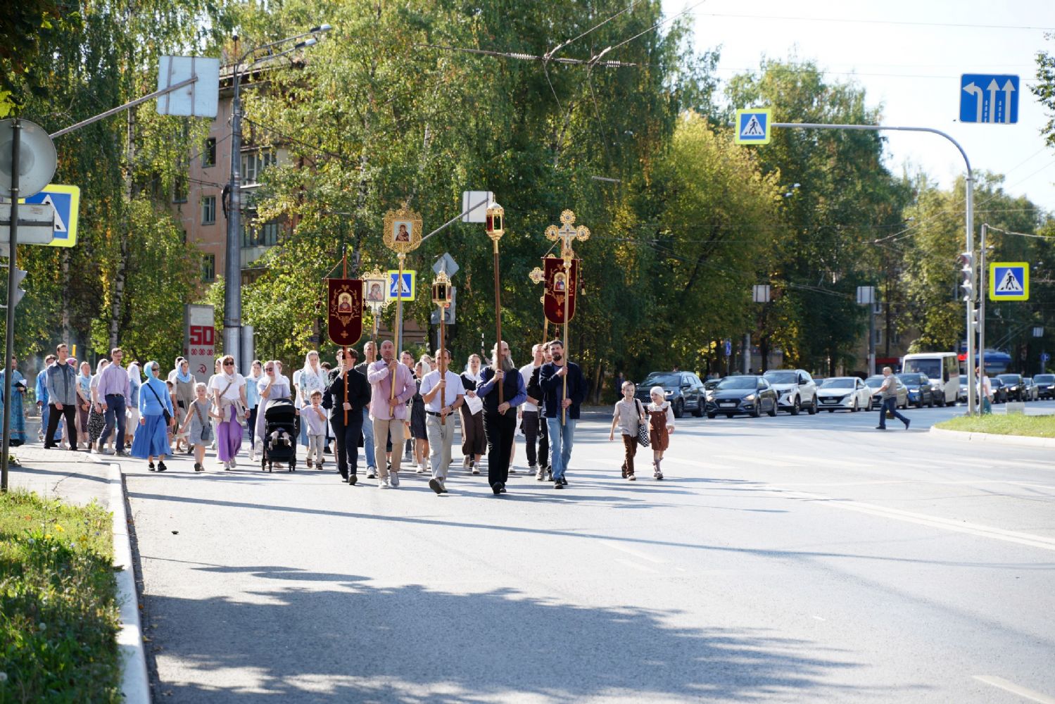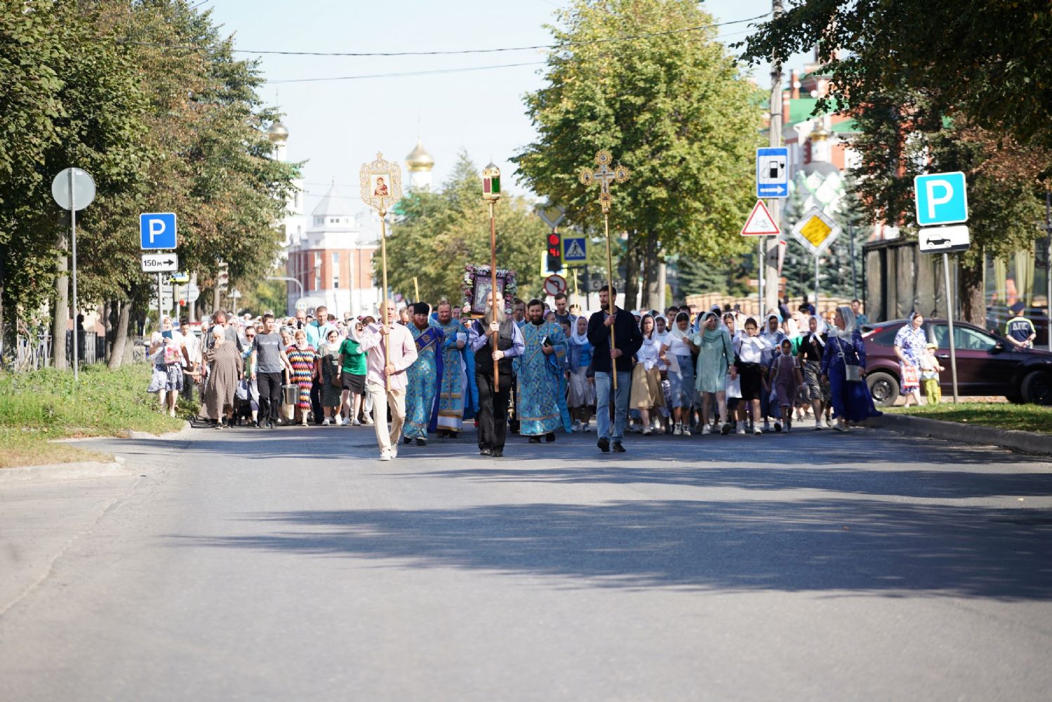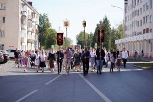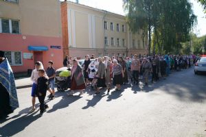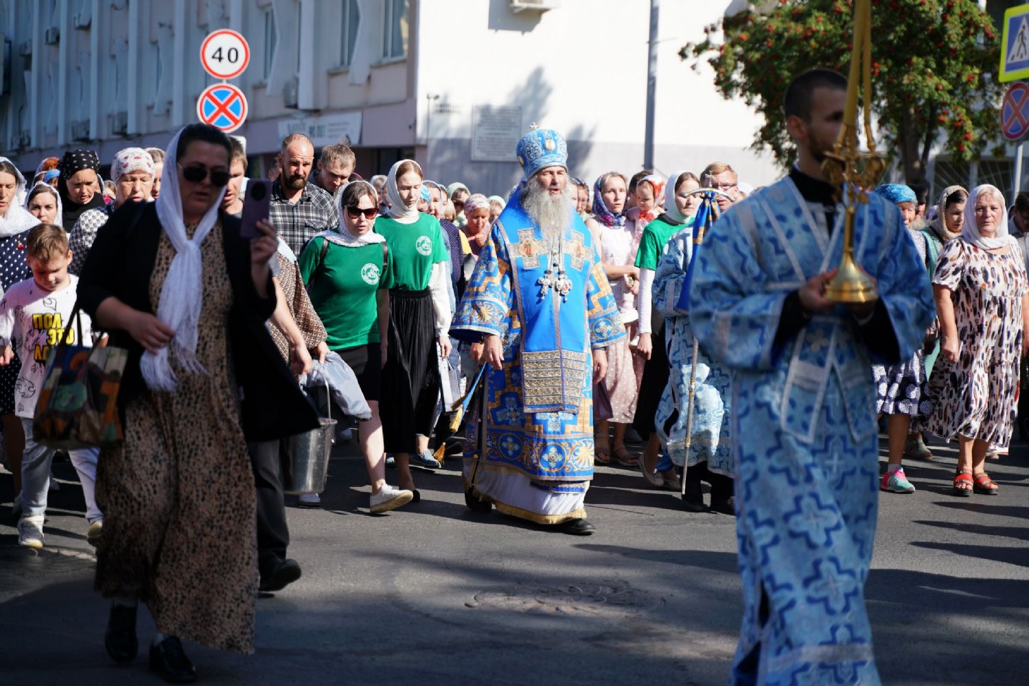 После Литургии верующие с Мироносицкой иконой Божией Матери обошли крестным ходом вокруг собора, затем владыка Иоанн возглавил молитвенное шествие в Успенский храм г. Йошкар-Олы. Около строящегося Входоиерусалимского храма, Православного центра и храма мученицы Татианы делались остановки с молитвами Пречистой и кроплением святой водой. У Татианинского храма к крестоходцам присоединились прихожане храма, учащиеся и педагоги гимназии им. Сергия Радонежского с настоятелем храма, директором гимназии протоиереем Евгением Сурковым.