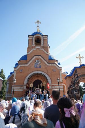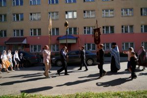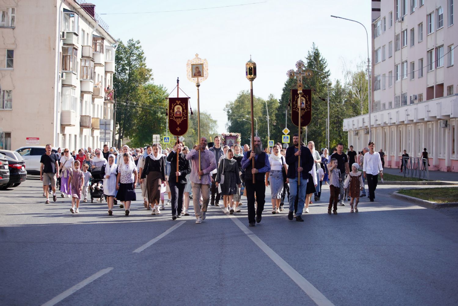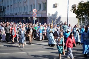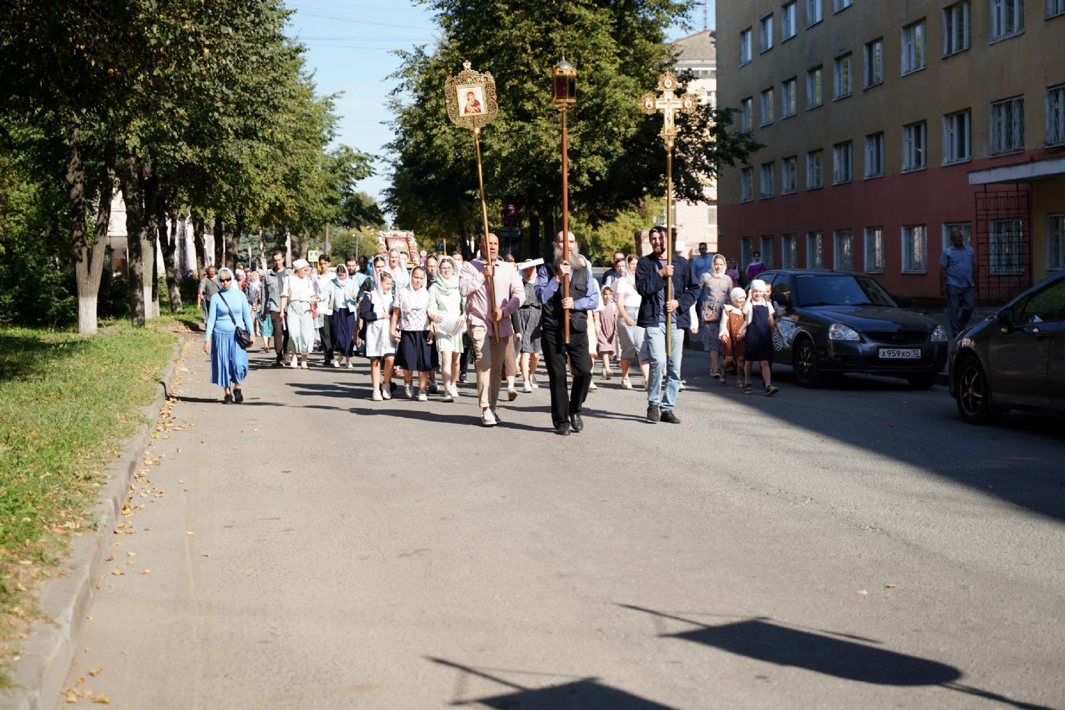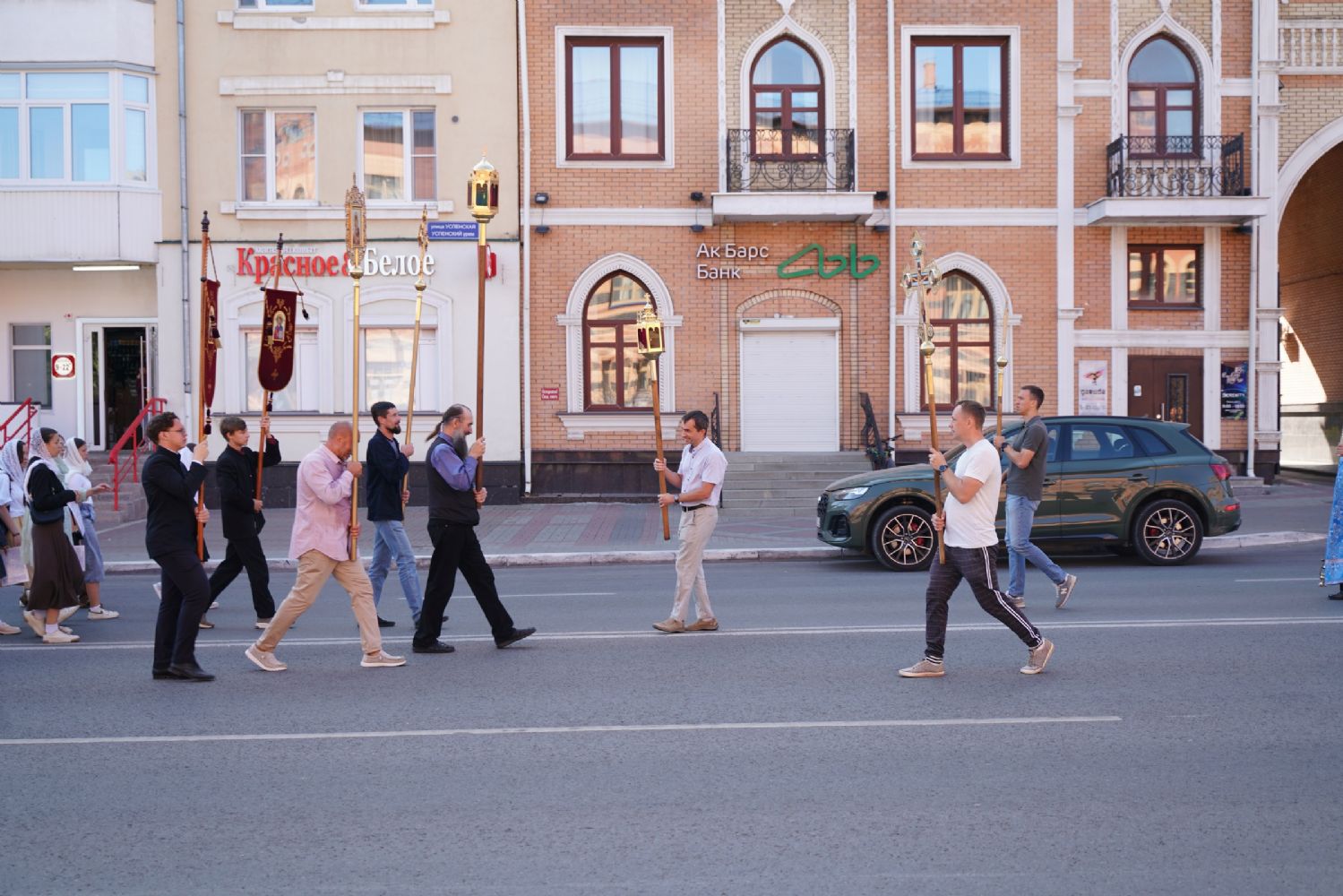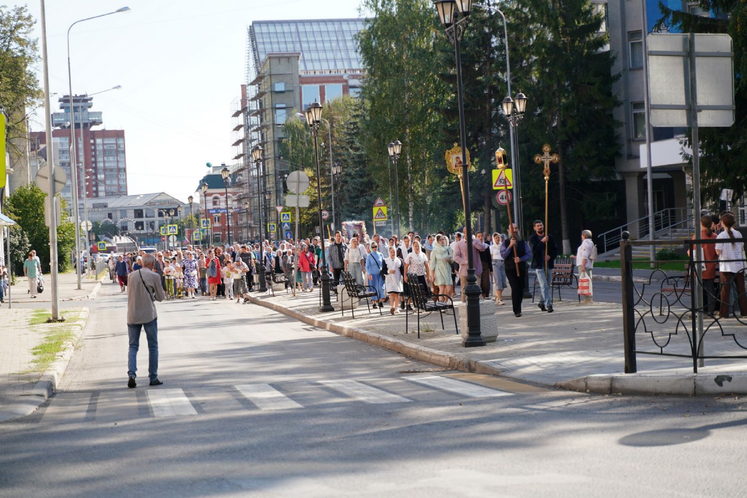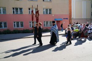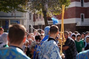 После Литургии верующие с Мироносицкой иконой Божией Матери обошли крестным ходом вокруг собора, затем владыка Иоанн возглавил молитвенное шествие в Успенский храм г. Йошкар-Олы. Около строящегося Входоиерусалимского храма, Православного центра и храма мученицы Татианы делались остановки с молитвами Пречистой и кроплением святой водой. У Татианинского храма к крестоходцам присоединились прихожане храма, учащиеся и педагоги гимназии им. Сергия Радонежского с настоятелем храма, директором гимназии протоиереем Евгением Сурковым.