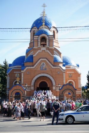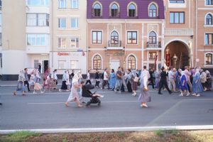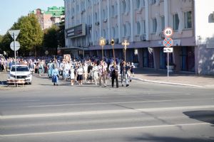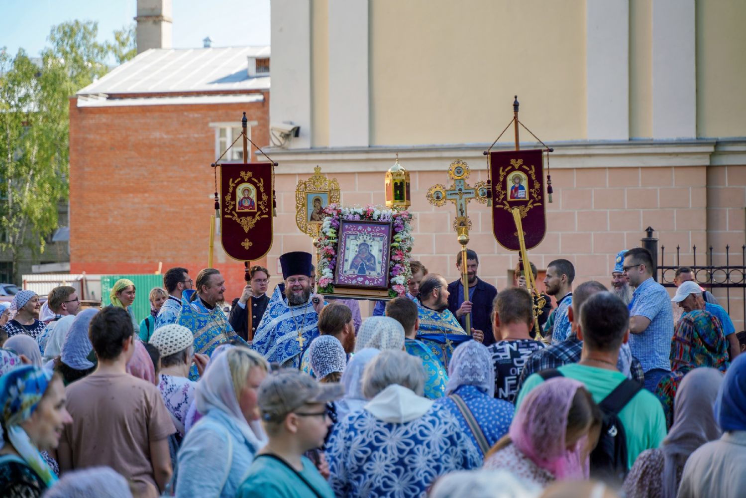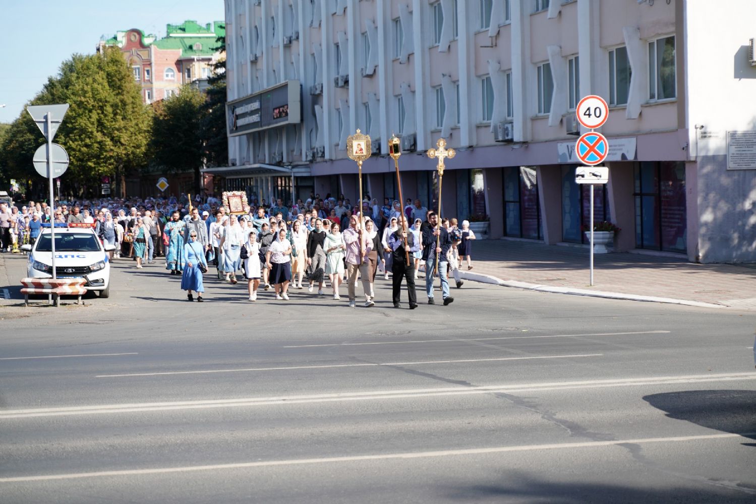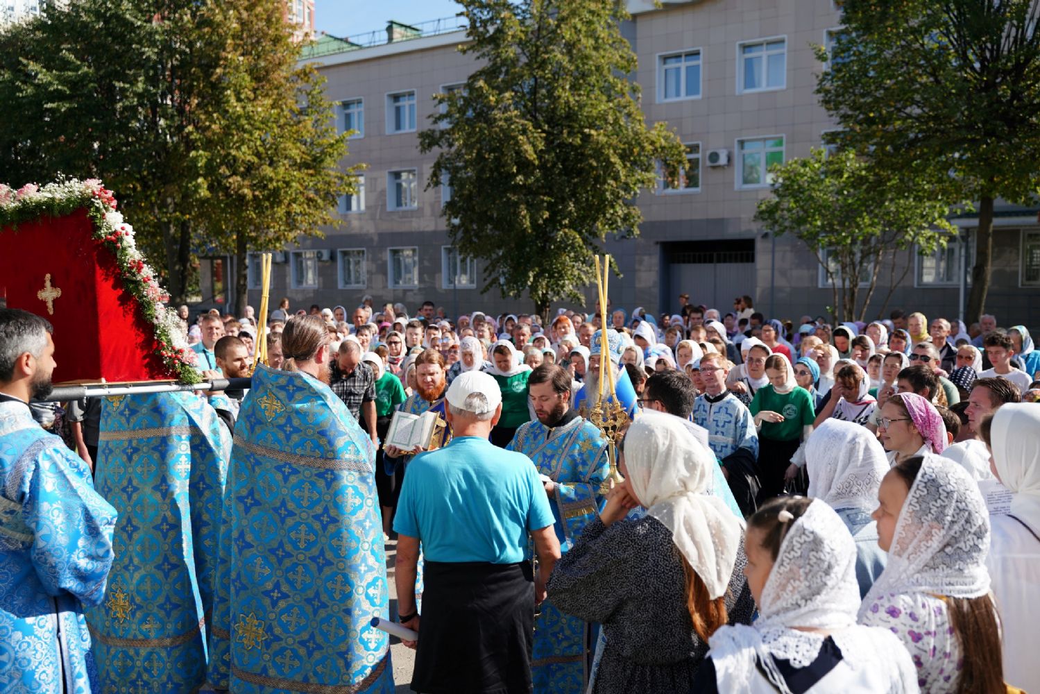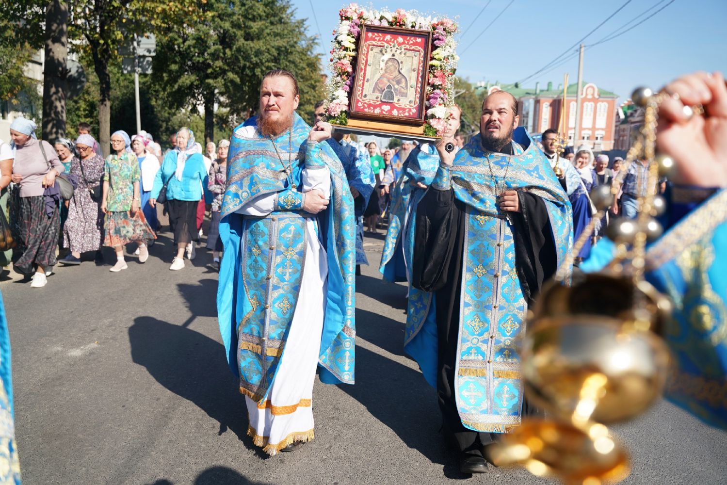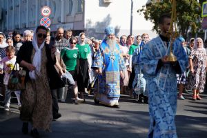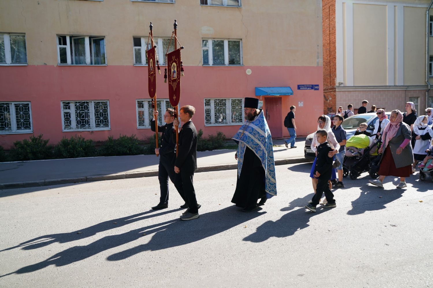 После Литургии верующие с Мироносицкой иконой Божией Матери обошли крестным ходом вокруг собора, затем владыка Иоанн возглавил молитвенное шествие в Успенский храм г. Йошкар-Олы. Около строящегося Входоиерусалимского храма, Православного центра и храма мученицы Татианы делались остановки с молитвами Пречистой и кроплением святой водой. У Татианинского храма к крестоходцам присоединились прихожане храма, учащиеся и педагоги гимназии им. Сергия Радонежского с настоятелем храма, директором гимназии протоиереем Евгением Сурковым.