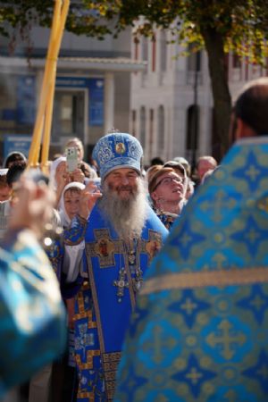 «Всех вас, дорогие отцы, братья и сестры, поздравляю с церковным новолетием благости Господней. Сегодня этот новый год каждый из нас начинает с крестного шествия с Пречистой Богоматерью, Которая обходит наш город, благословляет всех живущих в нем. Царица Небесная, являя Свою благодатную милость и радость о Сладчайшем Спасителе, каждого из нас призывает к всеобщей молитве к Творцу всяческих Богу, чтобы Господь наступившее новолетие благословил Своим миром, подал все потребное для нашей с вами жизни. Чтобы все наши труды приносили, с Божией помощью, добрые плоды, чтобы каждый из нас, пребывая в молитве и духовном горении в святой Православной Церкви, молился о всех тех, которые отступили от веры Христовой, молился о всех тех, которые стоят на страже благочестии и святости, молился о себе самом и о ближних своих, чтобы, очистив свое сердце через покаяние, умолить Господа ниспослать Его благодатную милость и дары духовные.