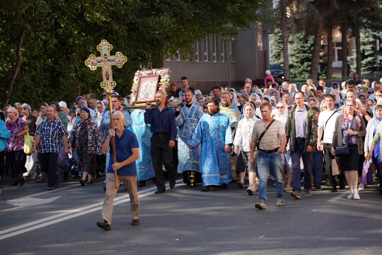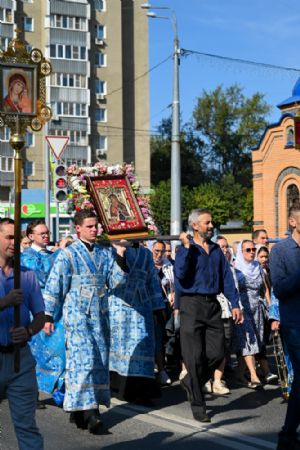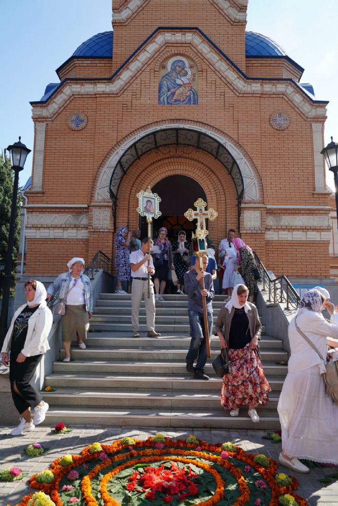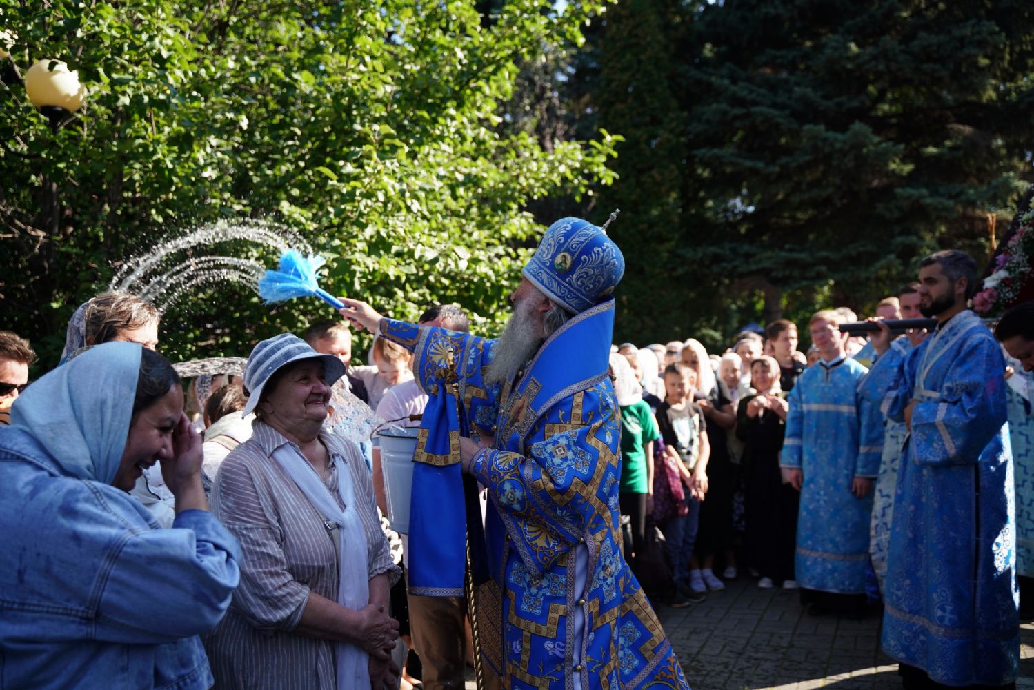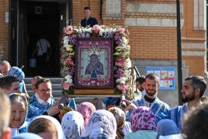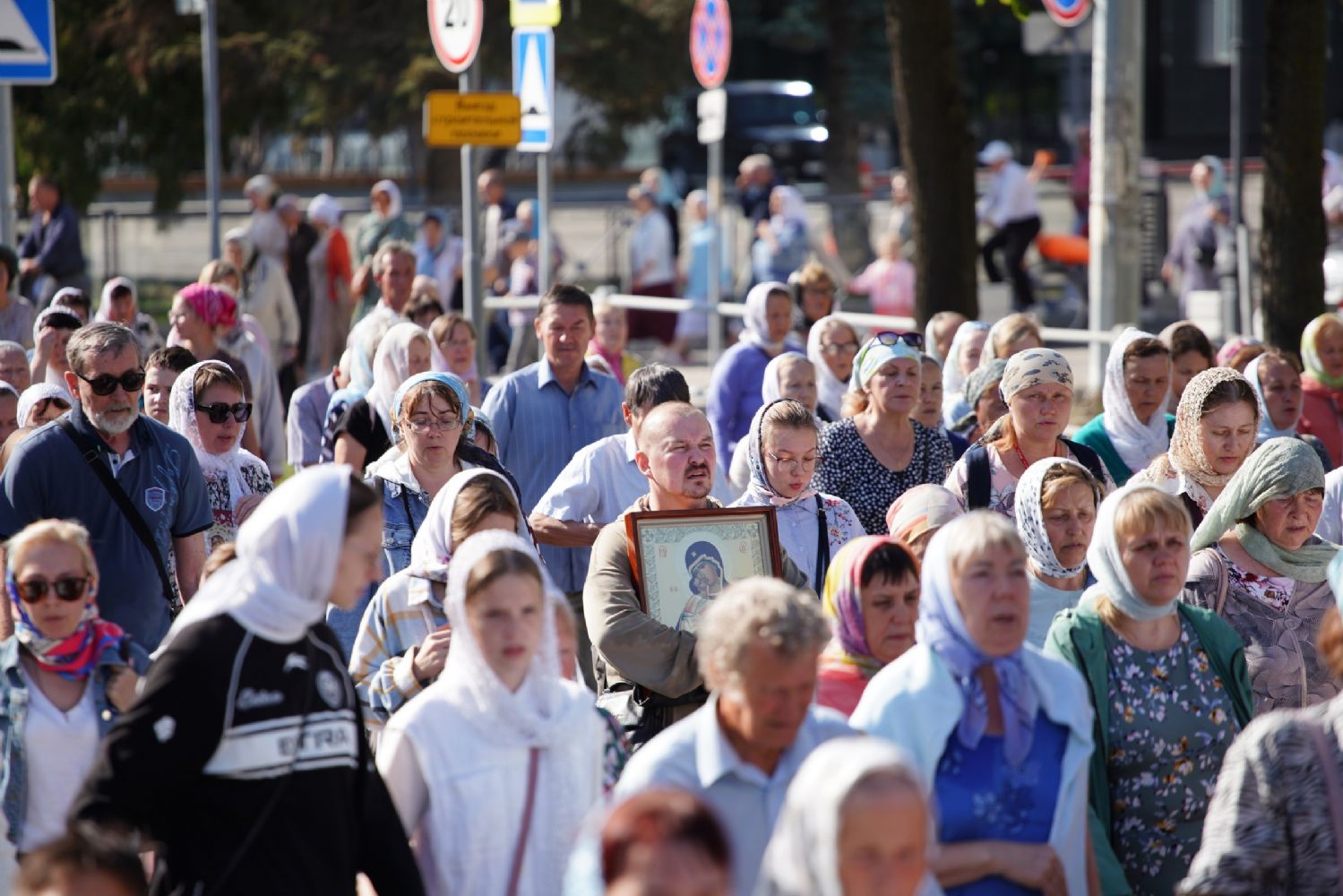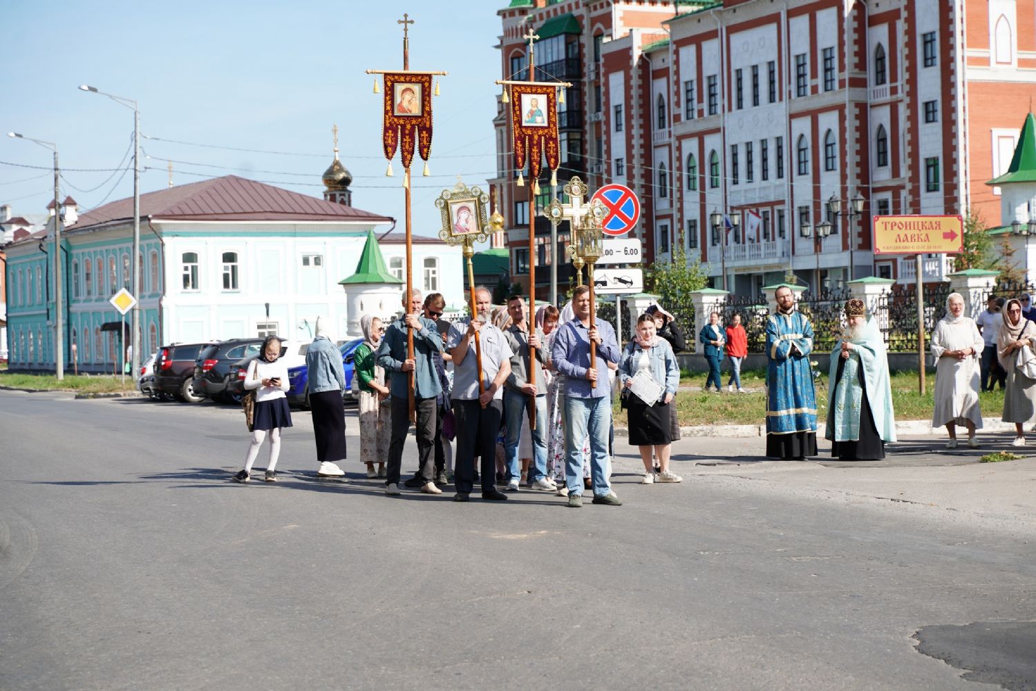 По окончании Литургии митрополит Иоанн возглавил крестный ход вокруг храма со чтением Евангелия и кроплением святой водой, после чего верующие с Мироносицкой иконой Пресвятой Богородицы отправились по улицам города в Троицкий храм.