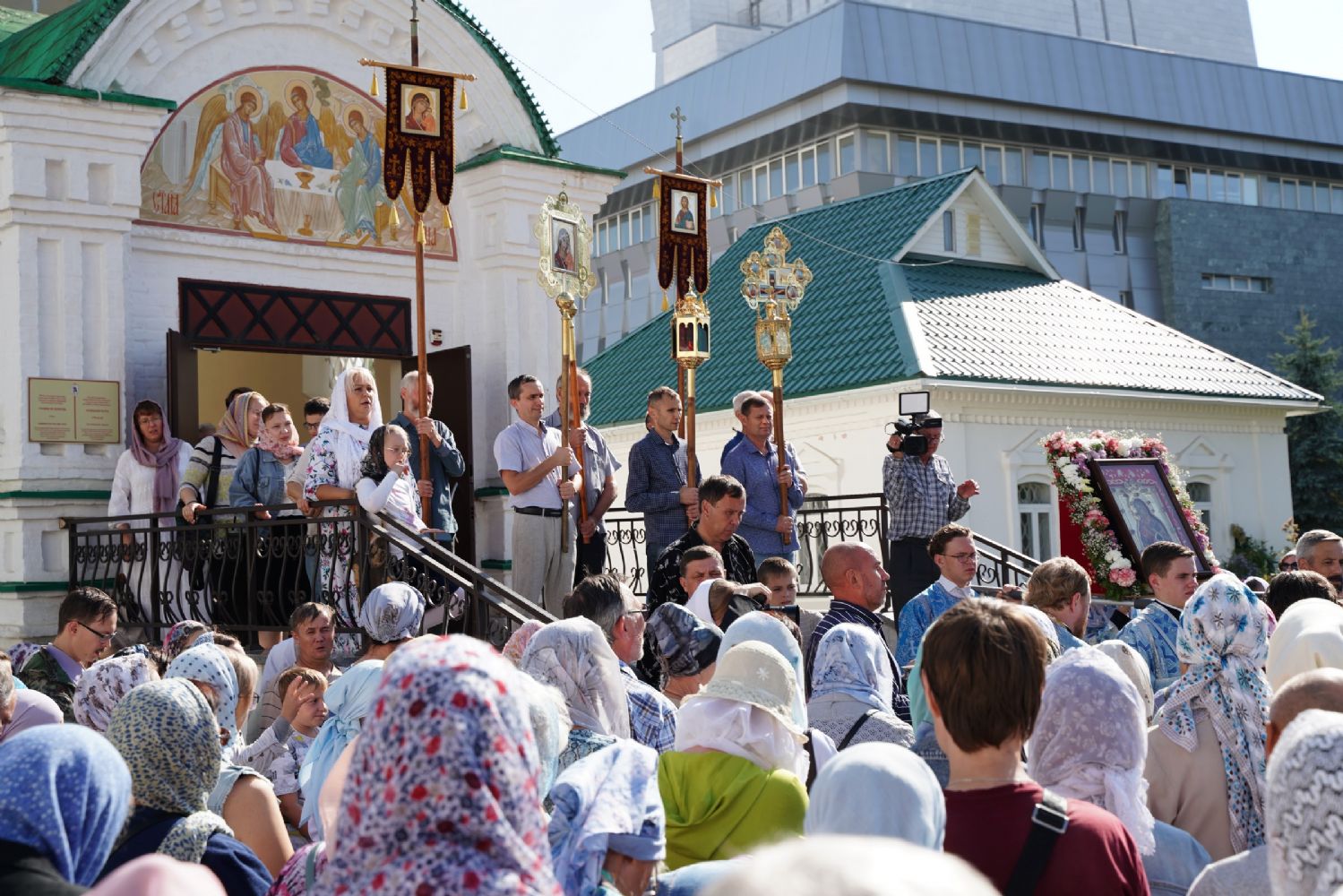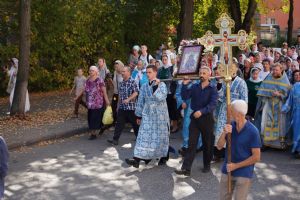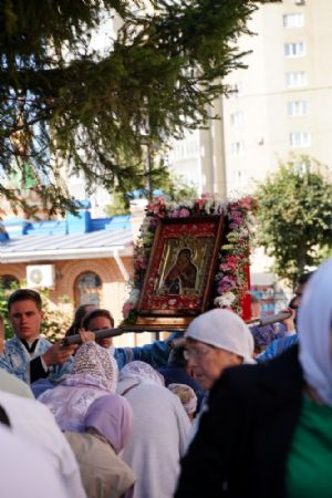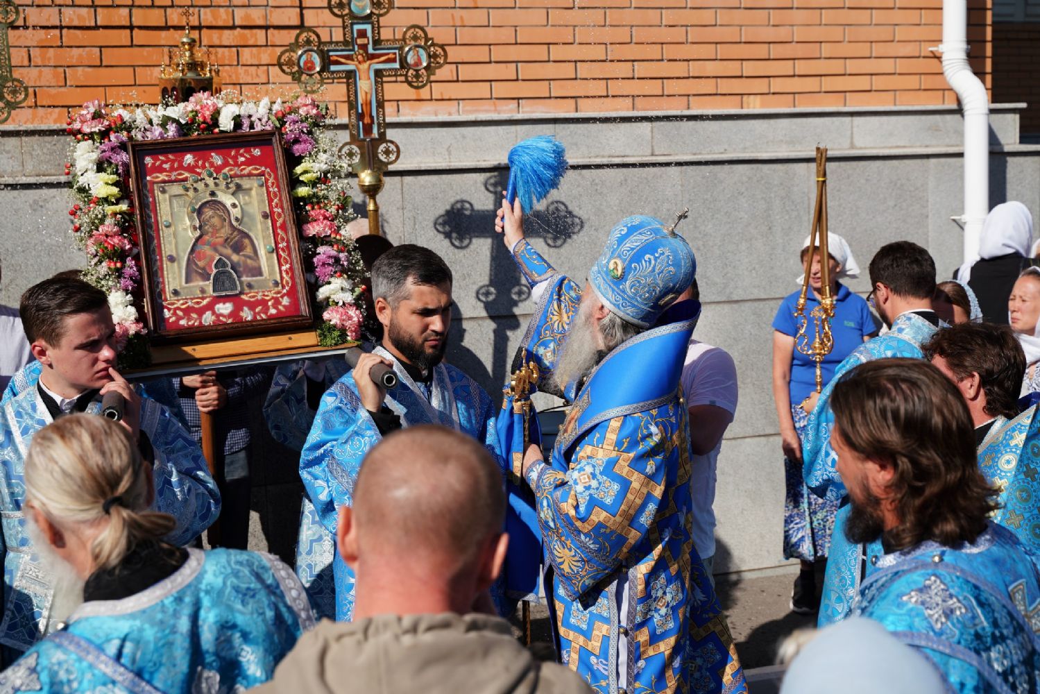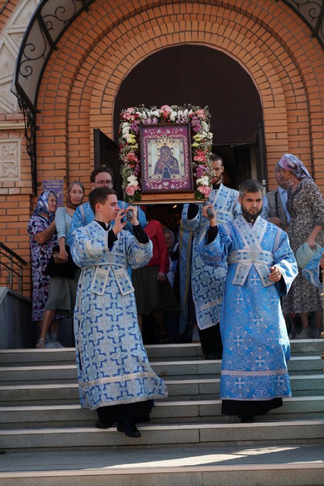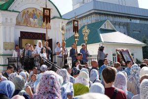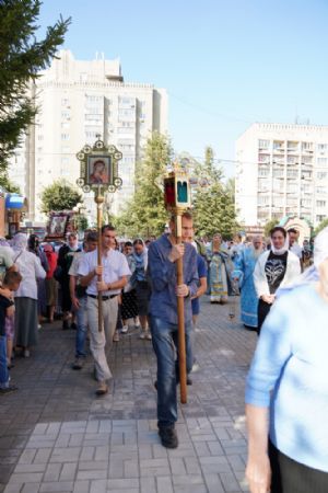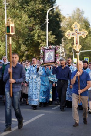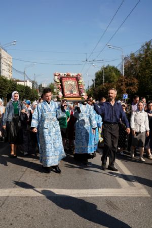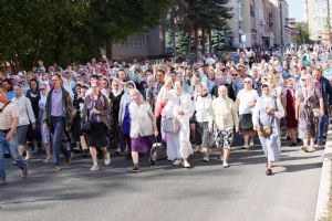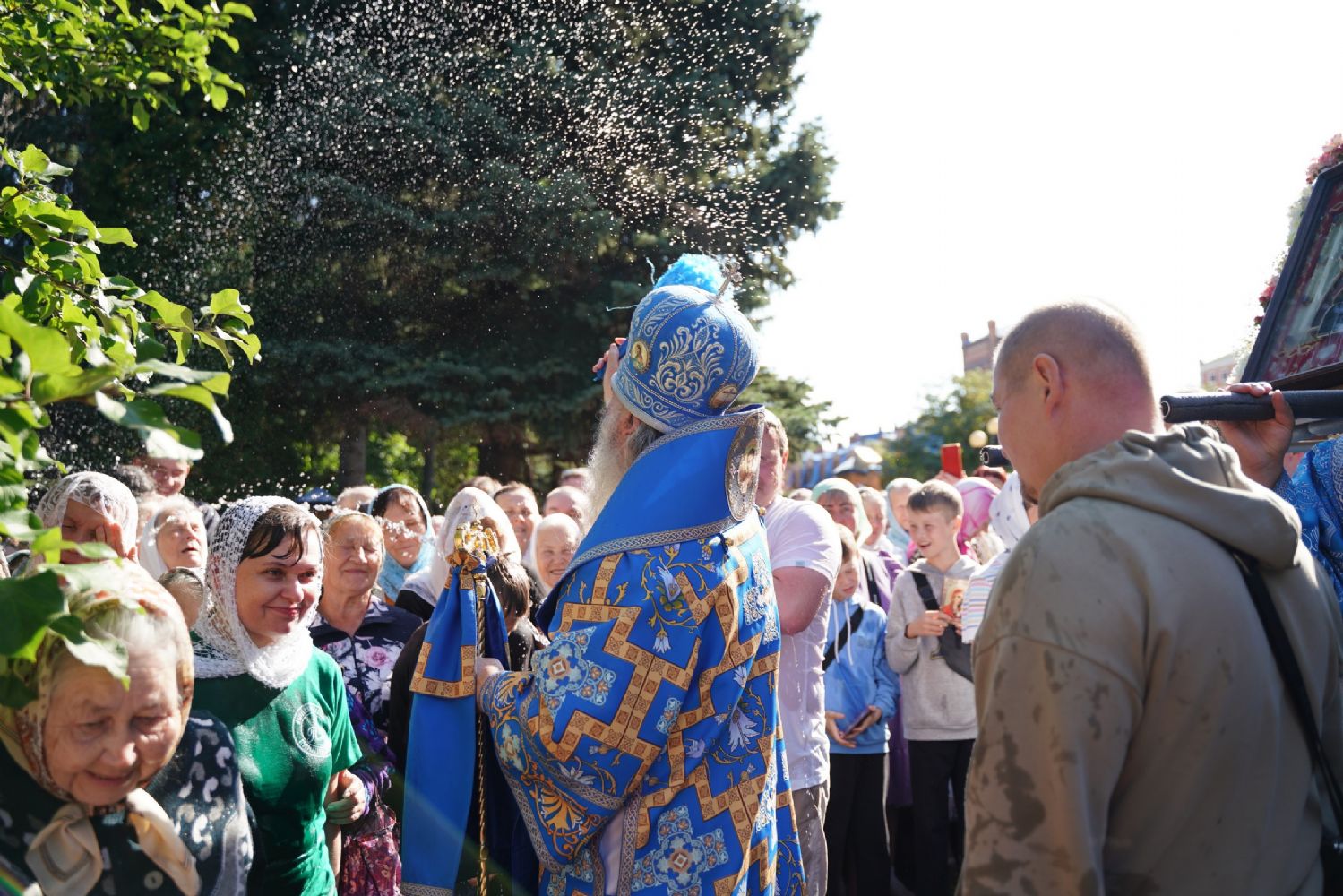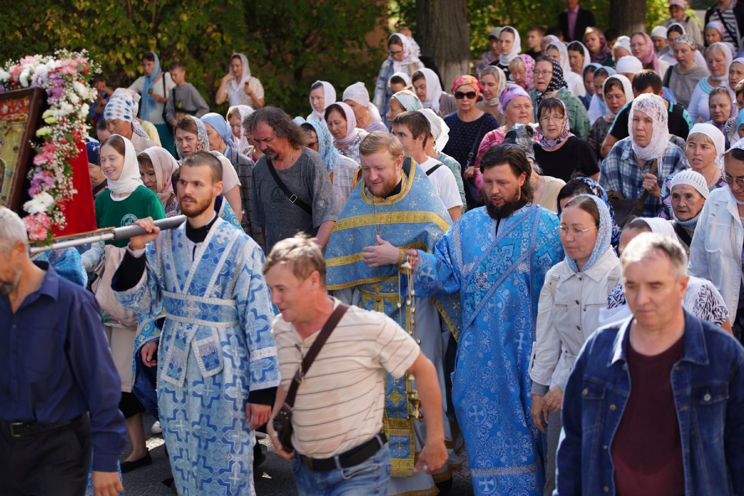 По окончании Литургии митрополит Иоанн возглавил крестный ход вокруг храма со чтением Евангелия и кроплением святой водой, после чего верующие с Мироносицкой иконой Пресвятой Богородицы отправились по улицам города в Троицкий храм.