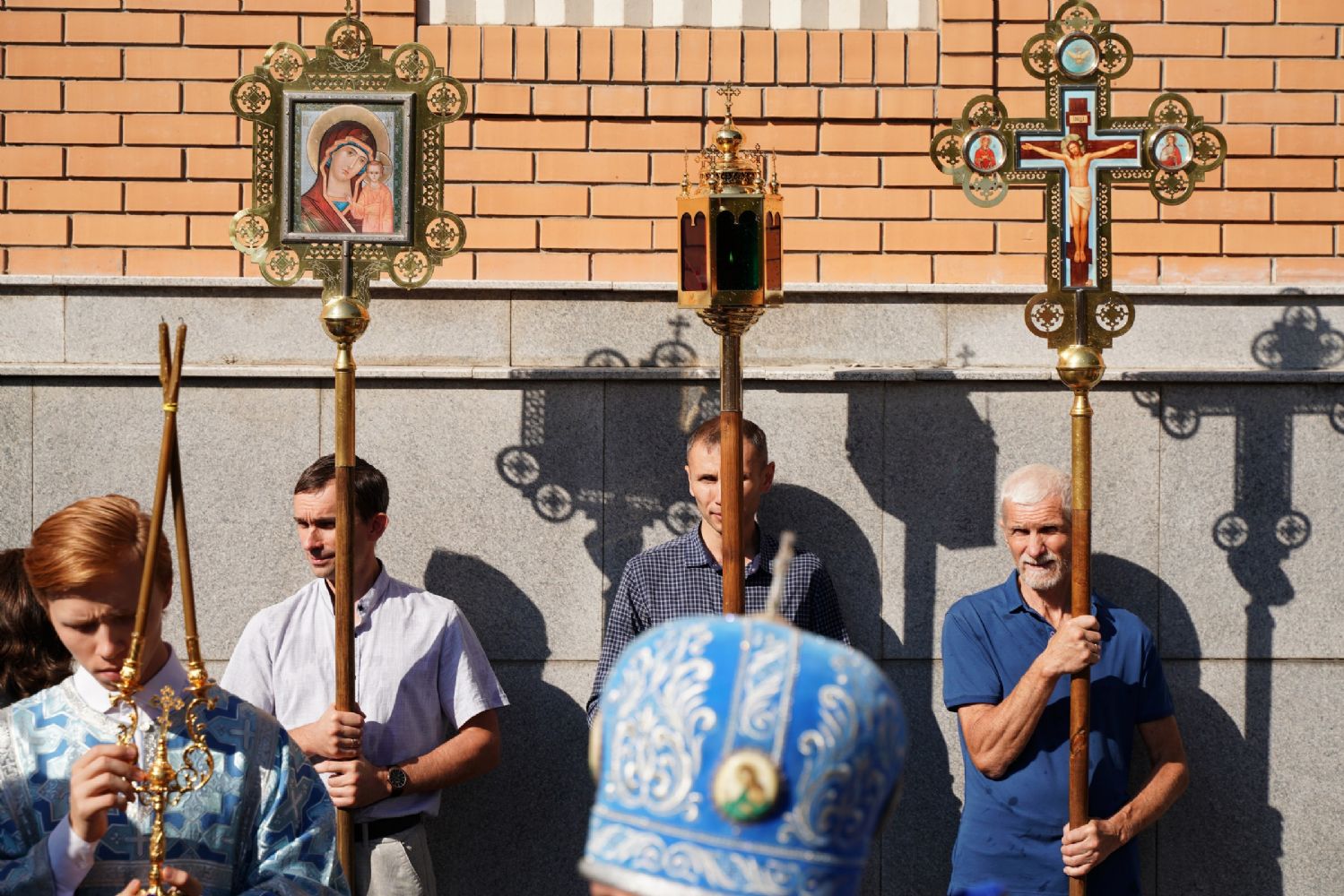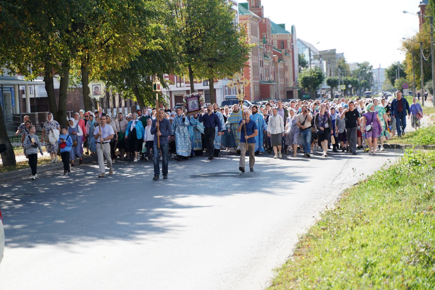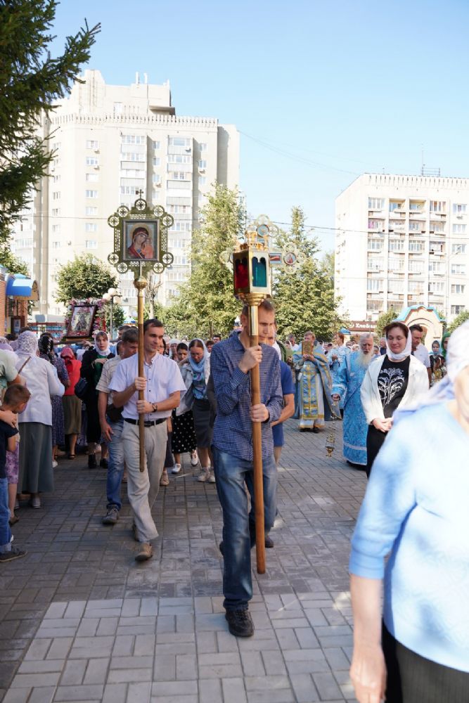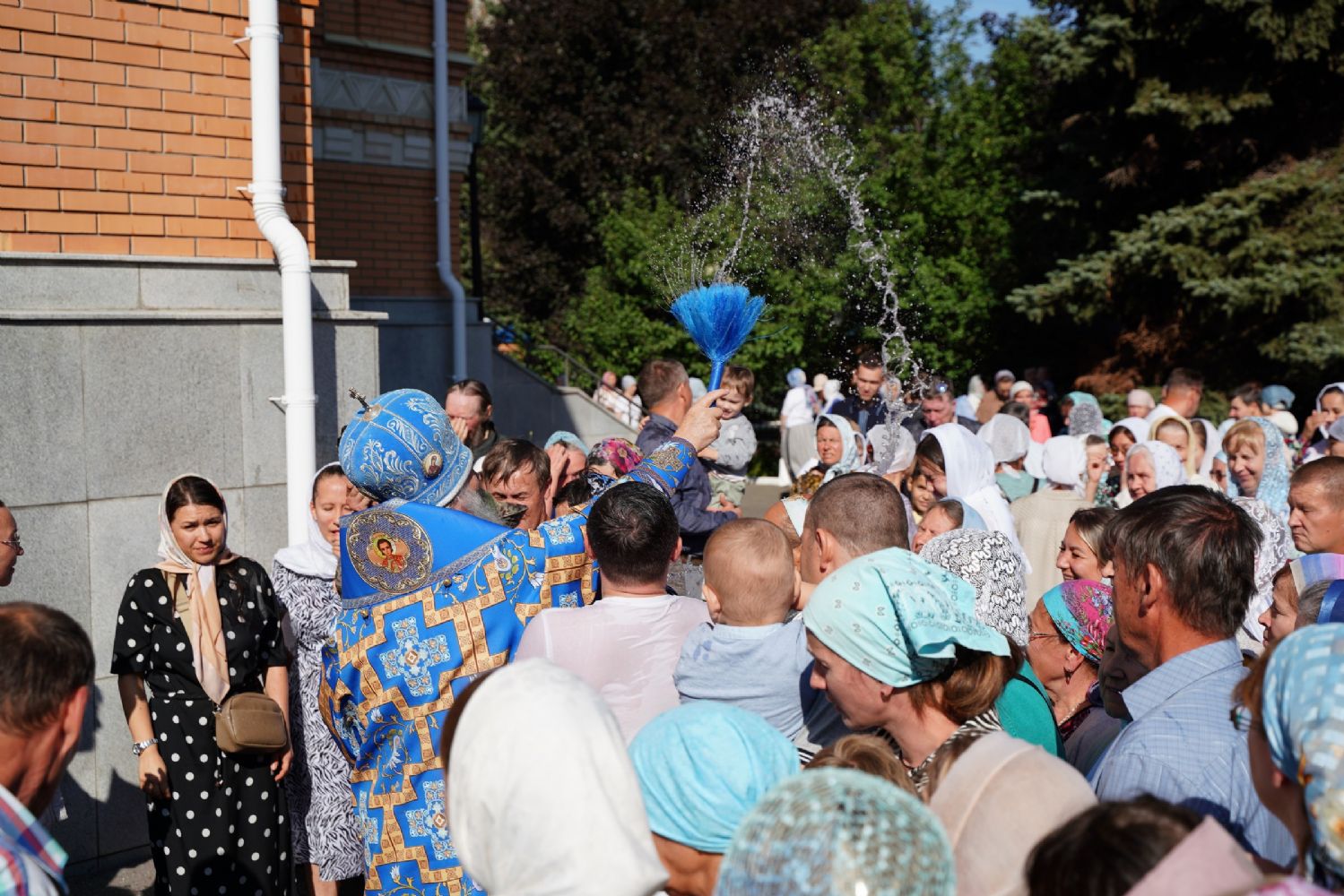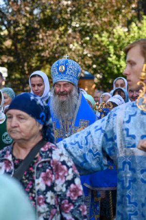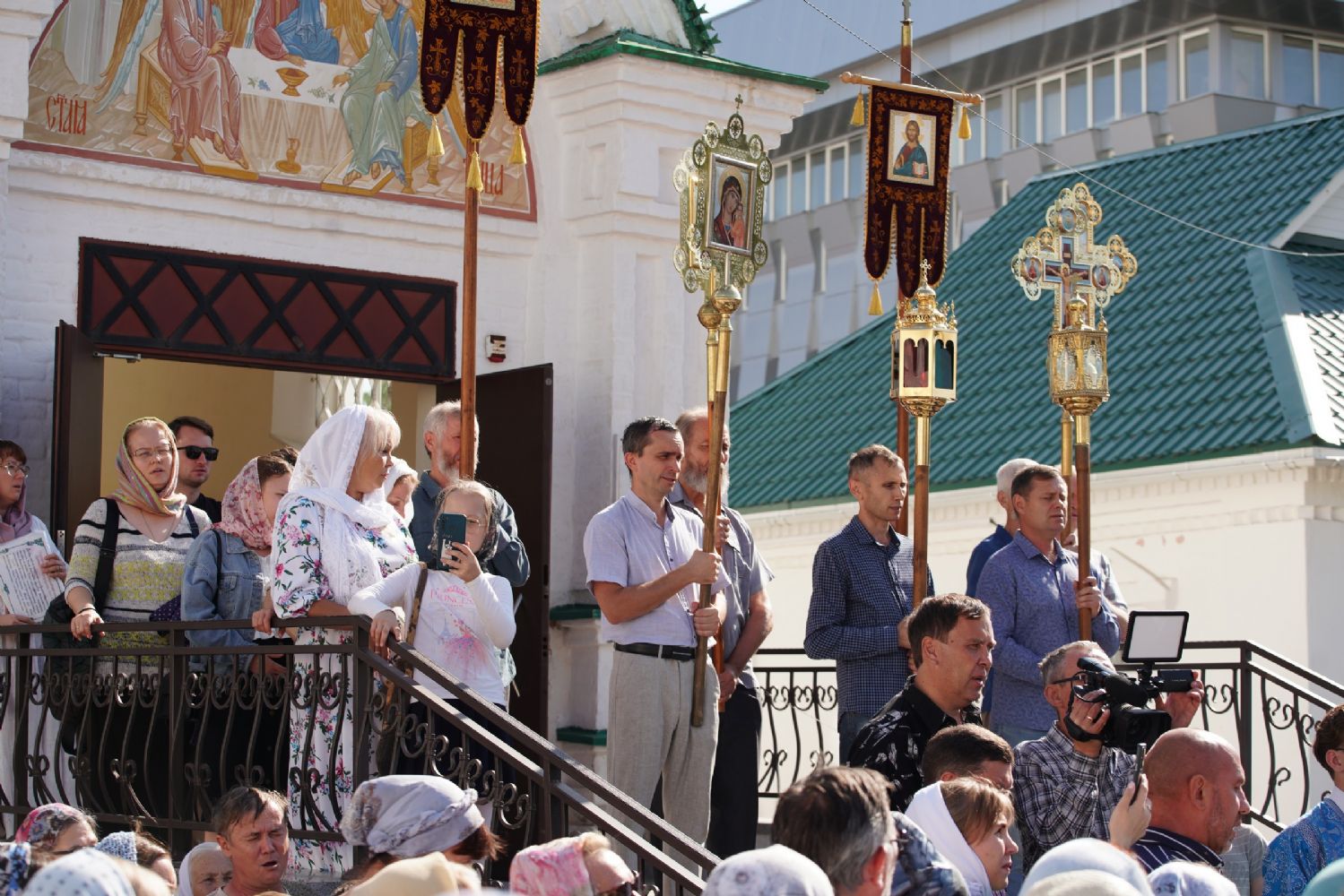 По окончании Литургии митрополит Иоанн возглавил крестный ход вокруг храма со чтением Евангелия и кроплением святой водой, после чего верующие с Мироносицкой иконой Пресвятой Богородицы отправились по улицам города в Троицкий храм.