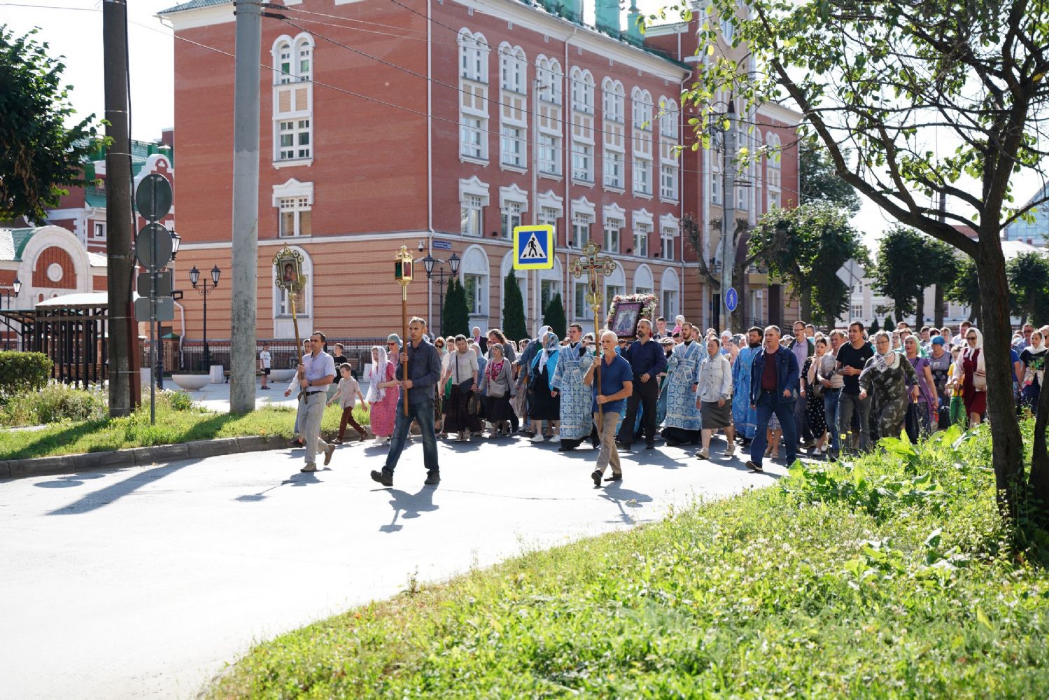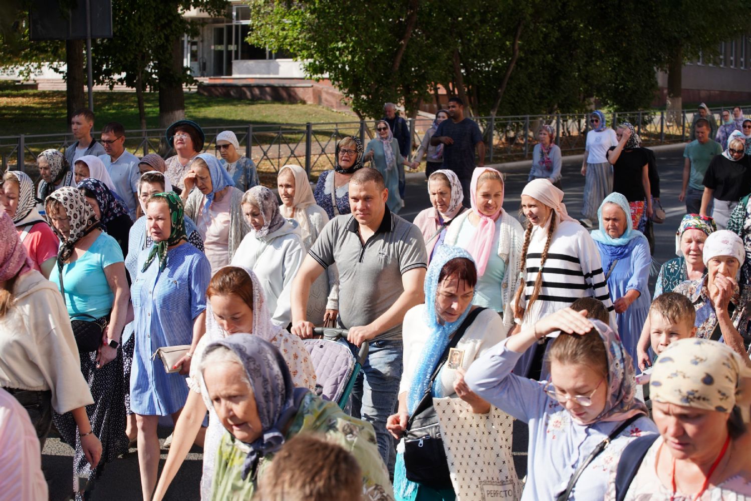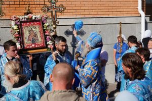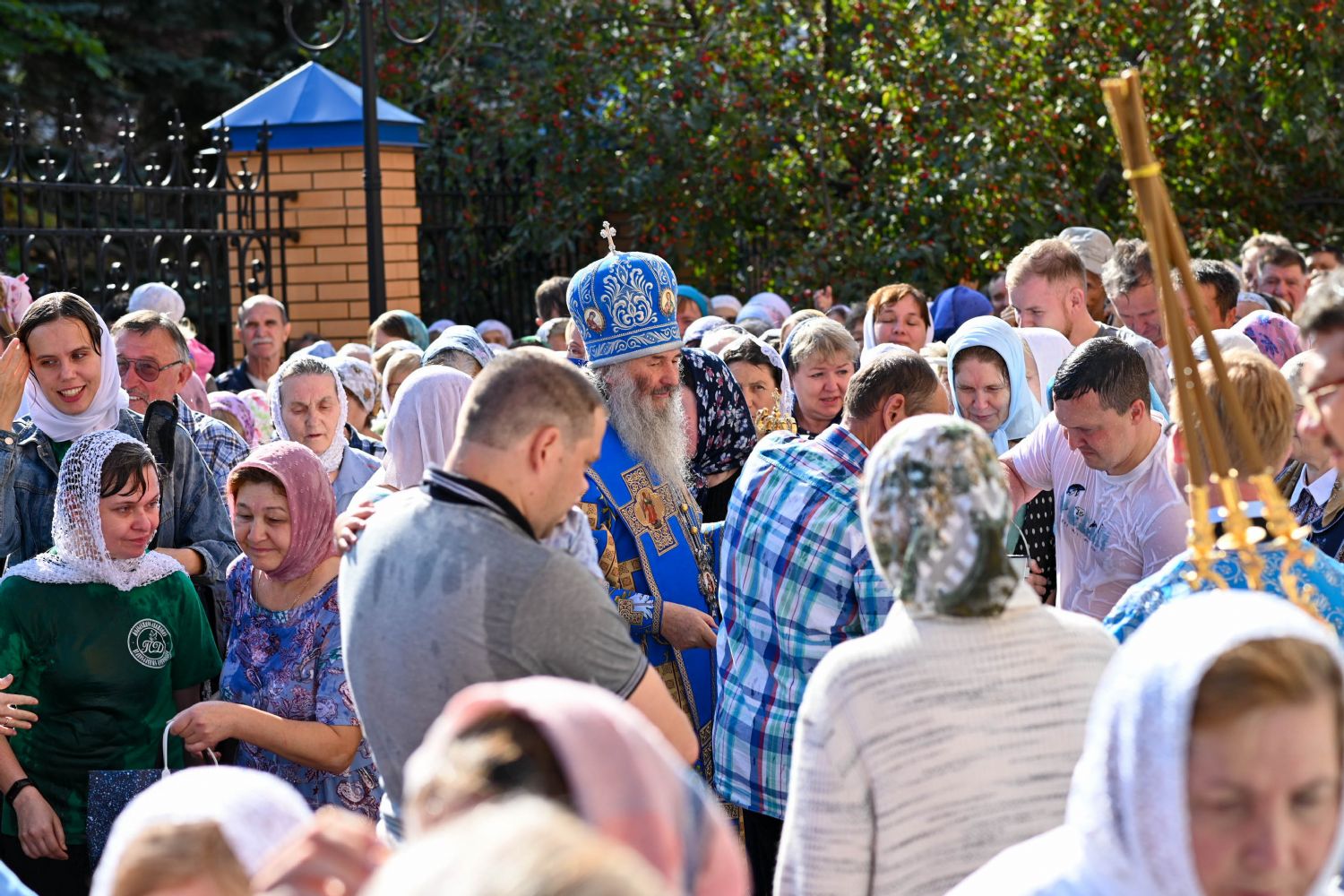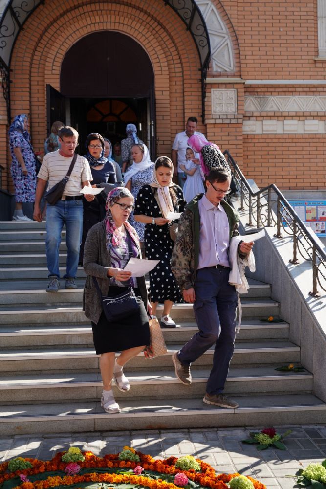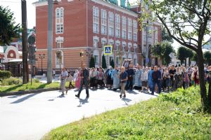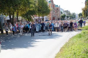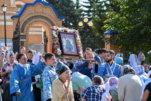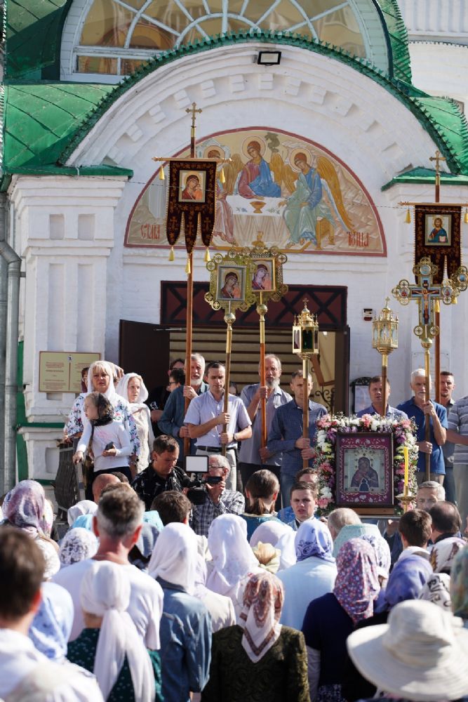 По окончании Литургии митрополит Иоанн возглавил крестный ход вокруг храма со чтением Евангелия и кроплением святой водой, после чего верующие с Мироносицкой иконой Пресвятой Богородицы отправились по улицам города в Троицкий храм.