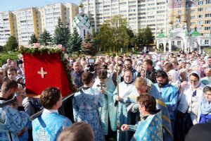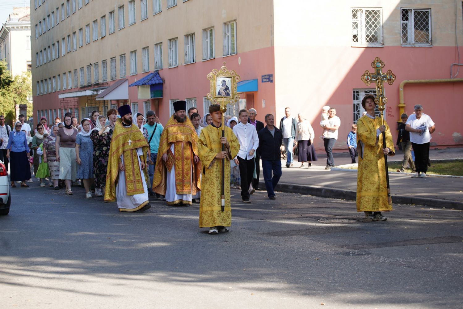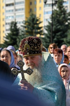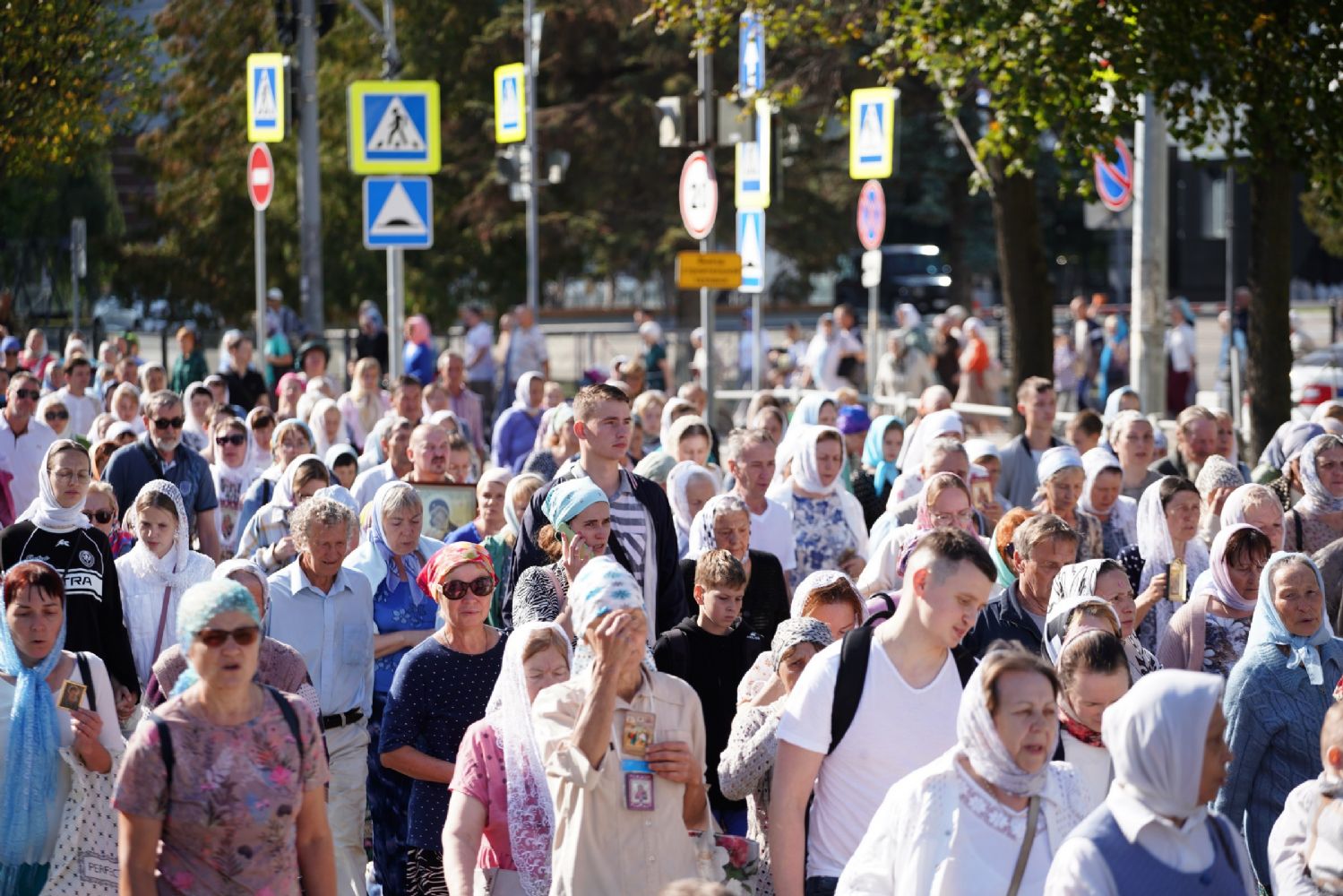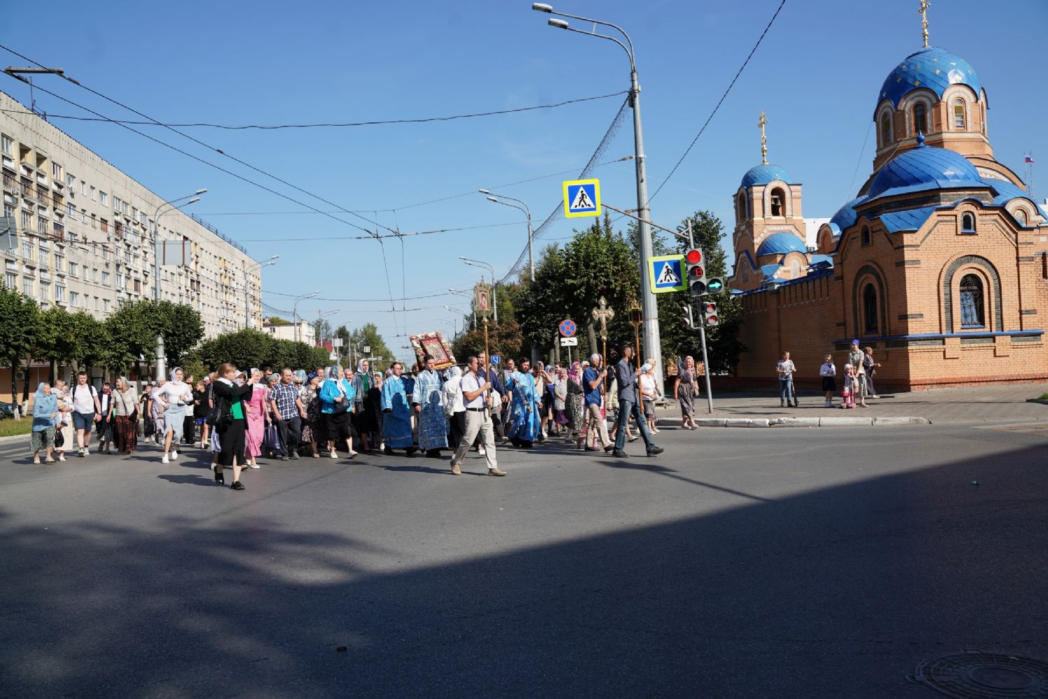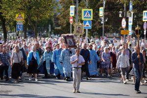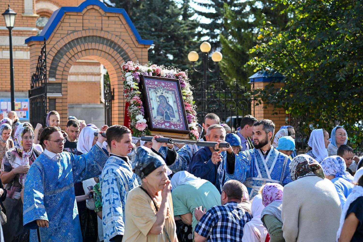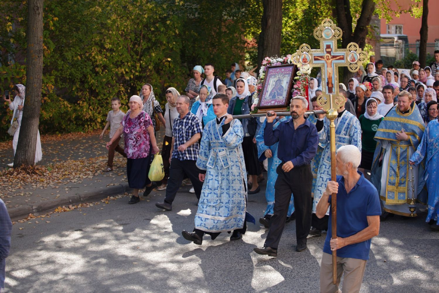 По окончании Литургии митрополит Иоанн возглавил крестный ход вокруг храма со чтением Евангелия и кроплением святой водой, после чего верующие с Мироносицкой иконой Пресвятой Богородицы отправились по улицам города в Троицкий храм.