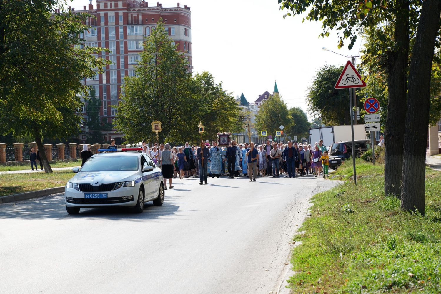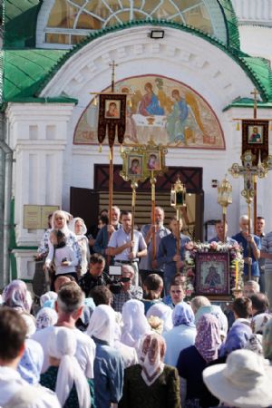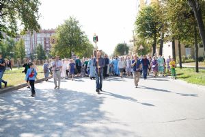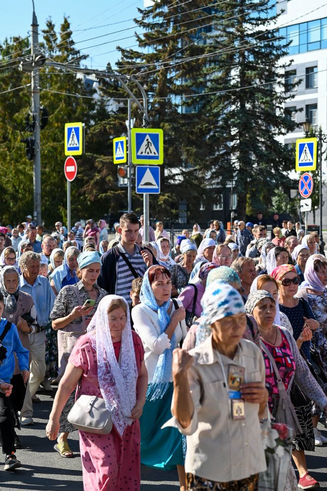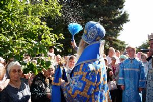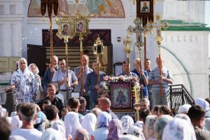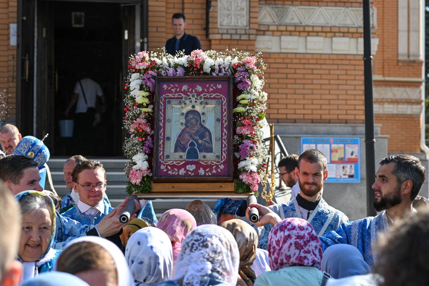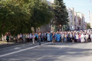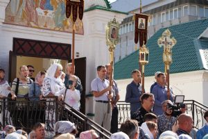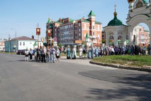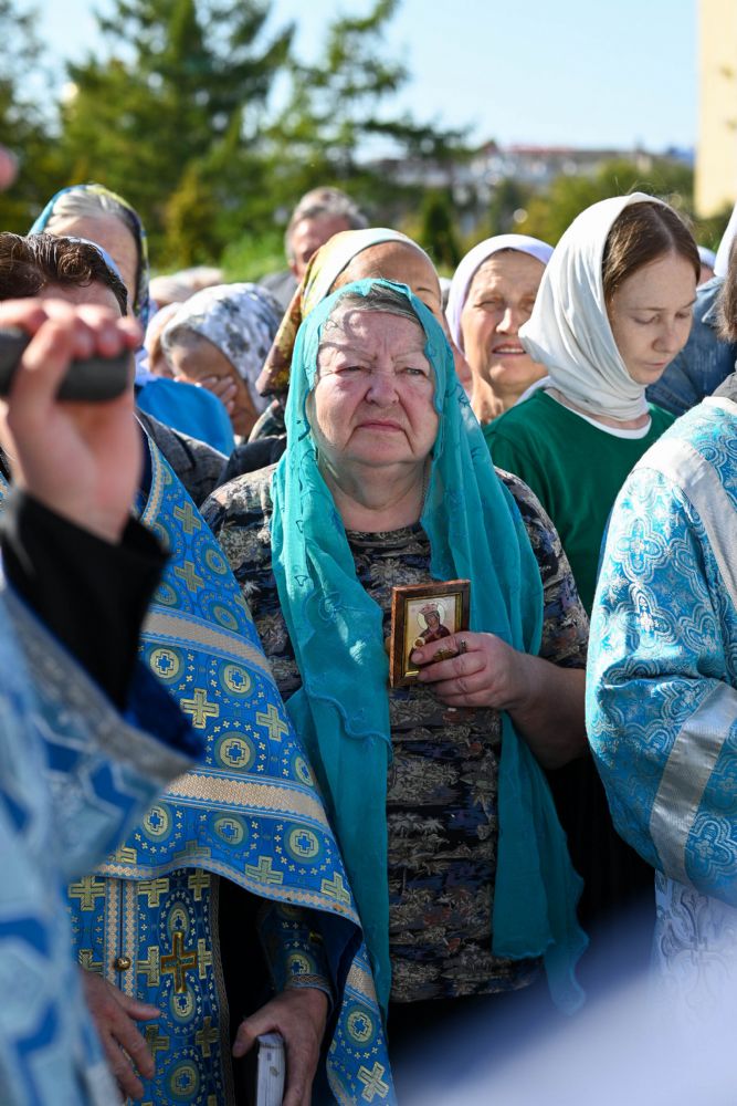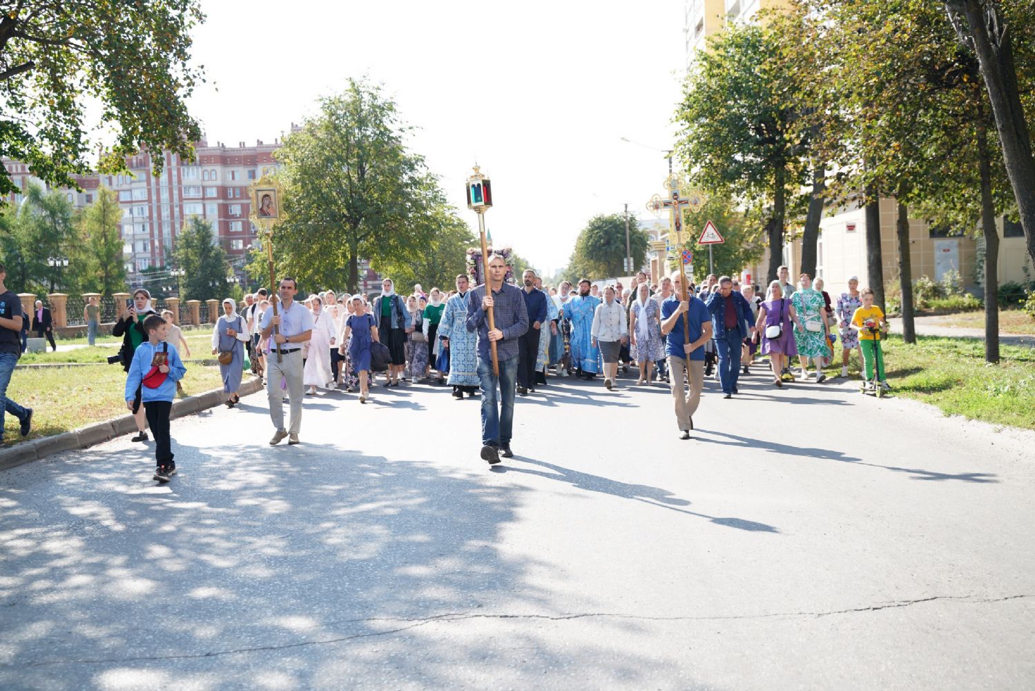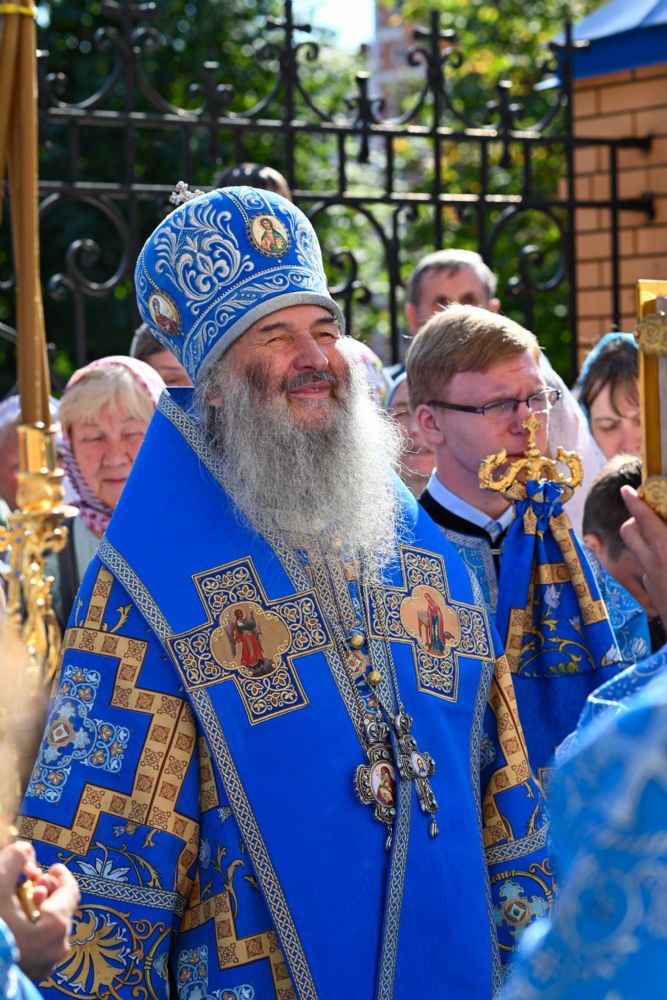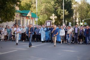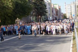 По окончании Литургии митрополит Иоанн возглавил крестный ход вокруг храма со чтением Евангелия и кроплением святой водой, после чего верующие с Мироносицкой иконой Пресвятой Богородицы отправились по улицам города в Троицкий храм.