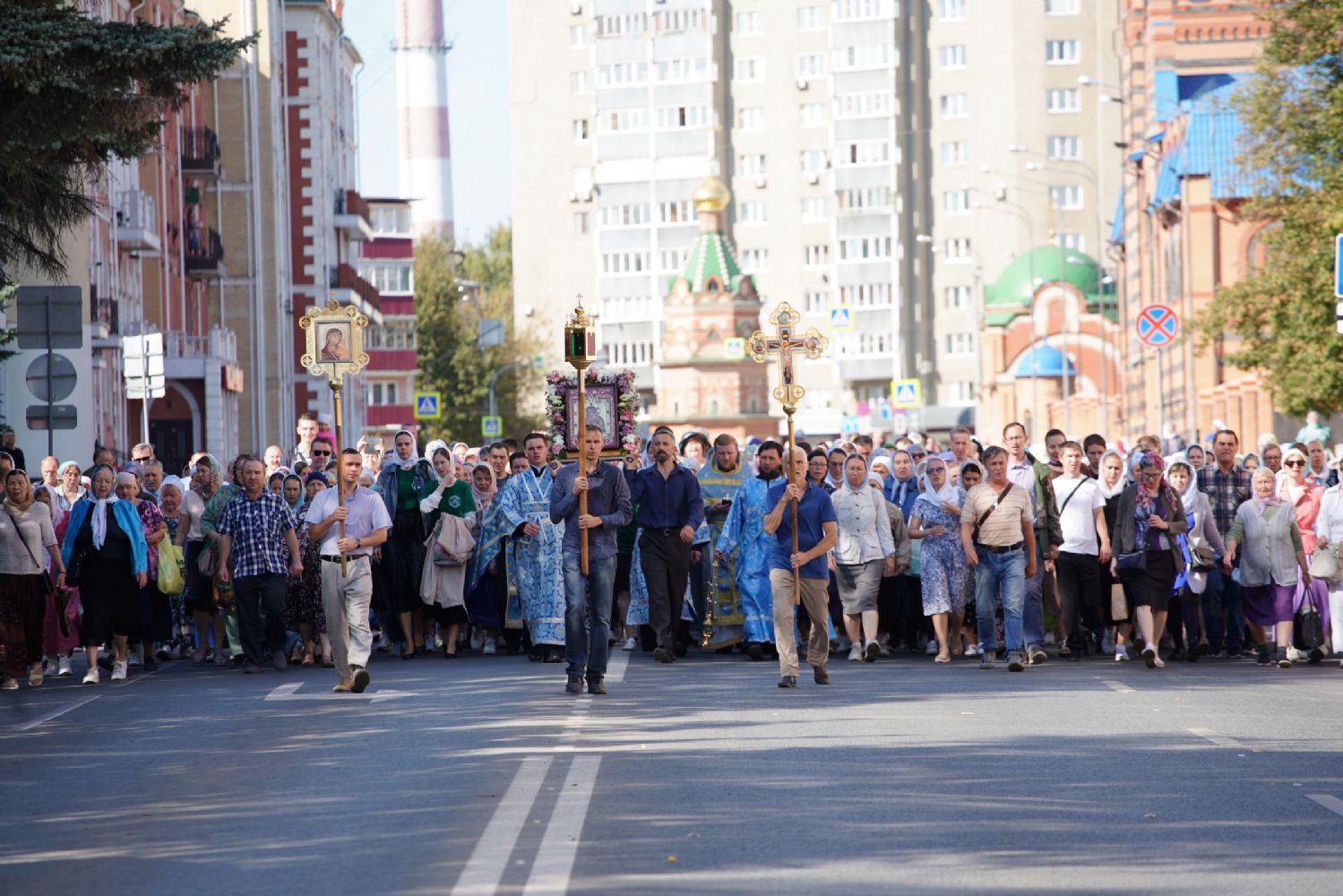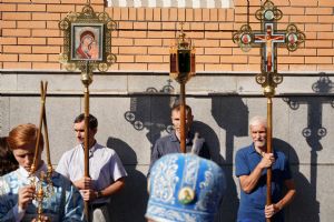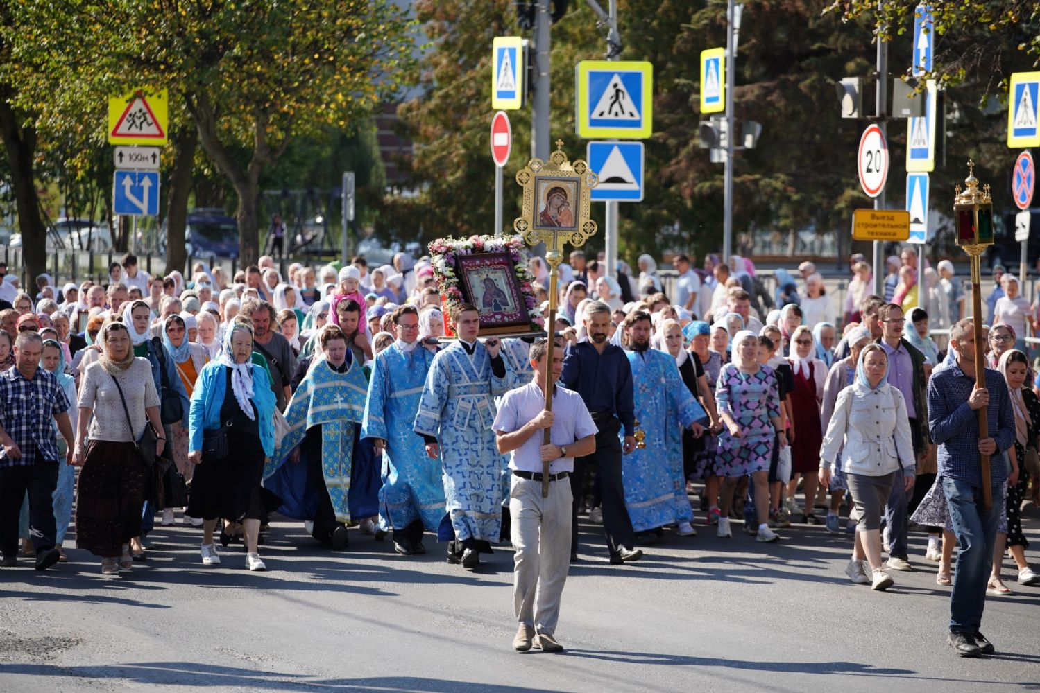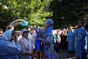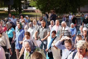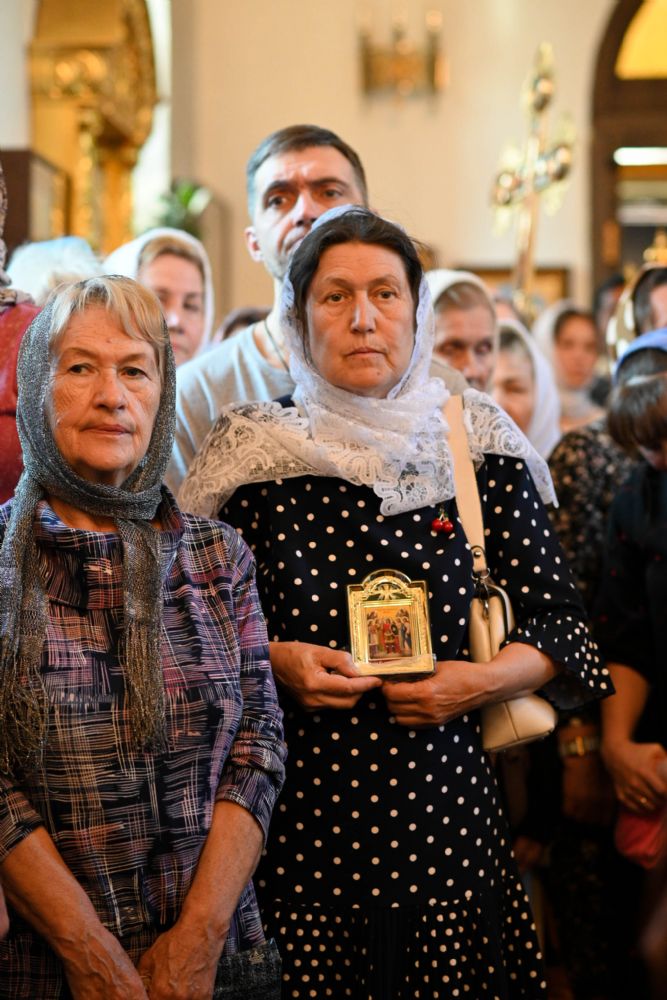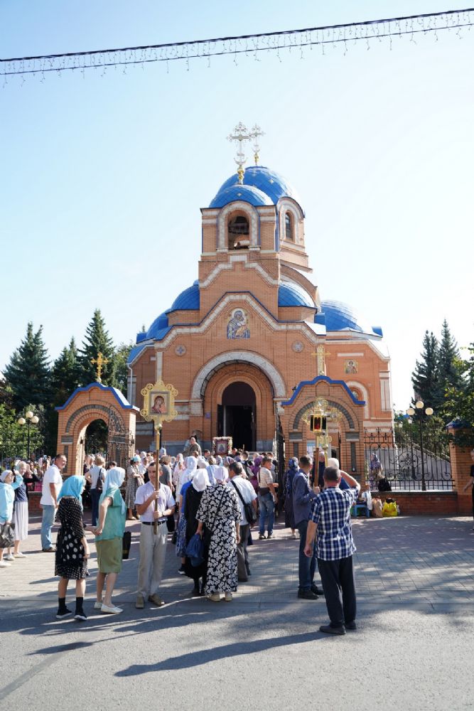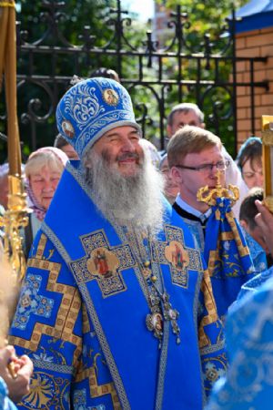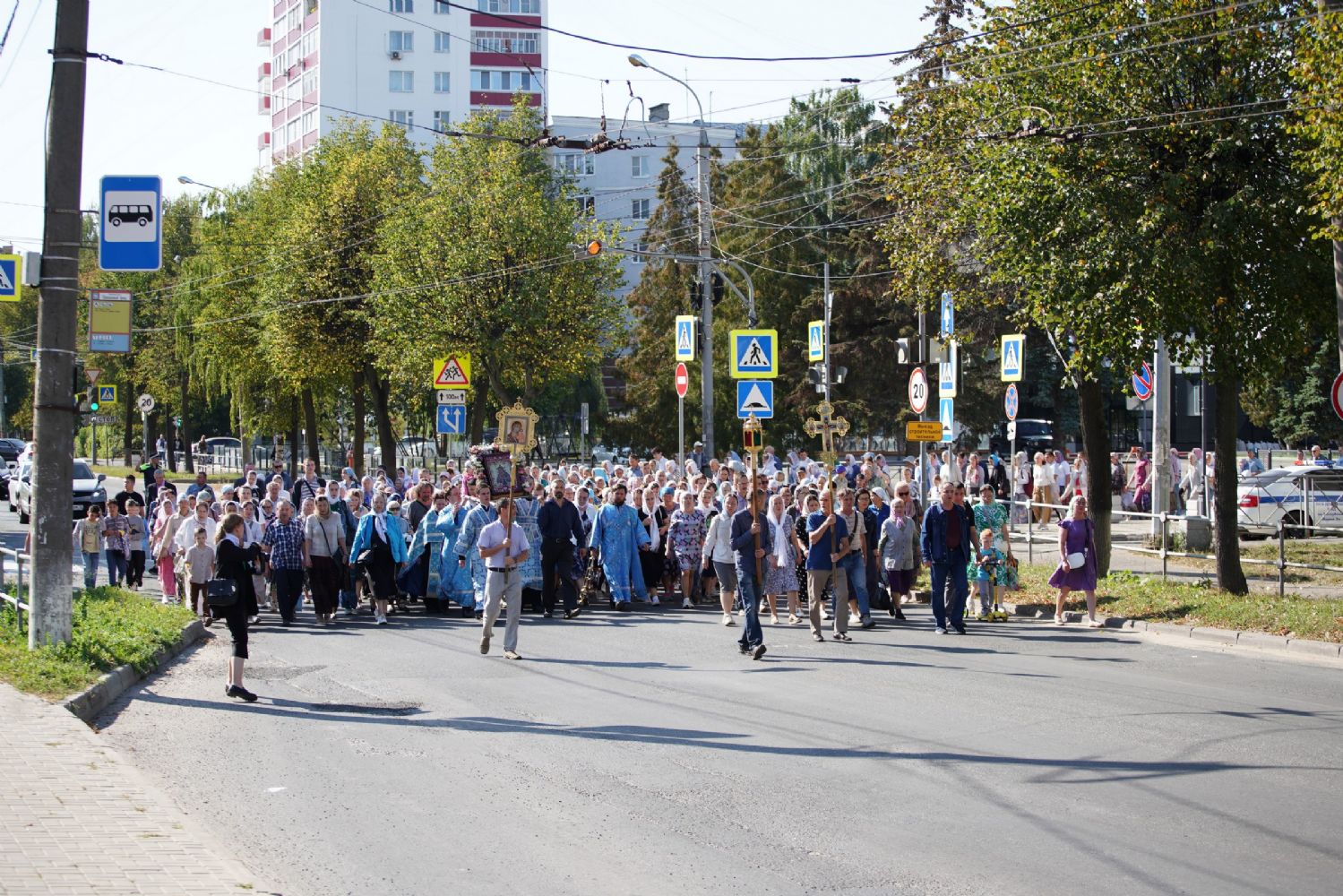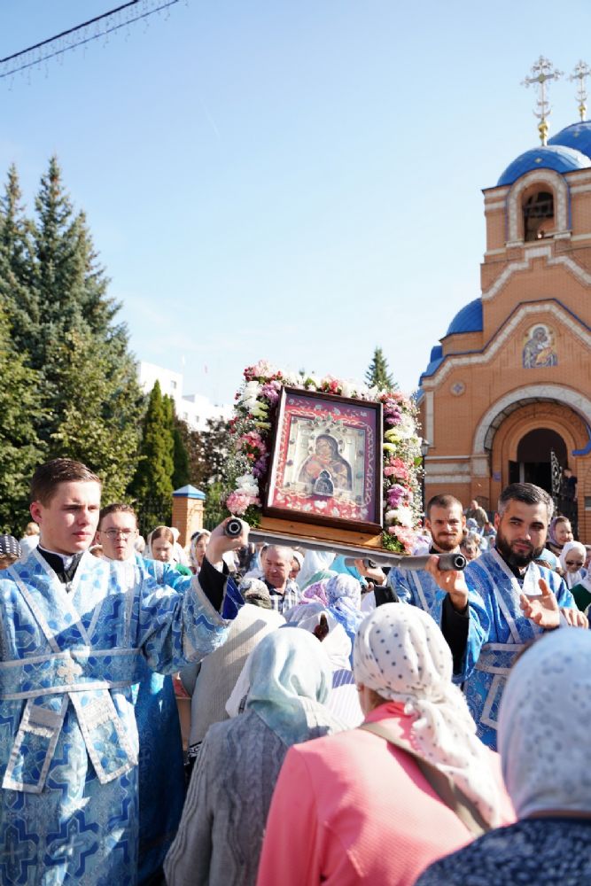 По окончании Литургии митрополит Иоанн возглавил крестный ход вокруг храма со чтением Евангелия и кроплением святой водой, после чего верующие с Мироносицкой иконой Пресвятой Богородицы отправились по улицам города в Троицкий храм.