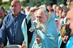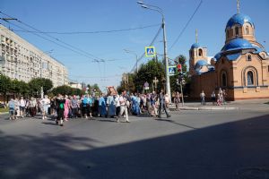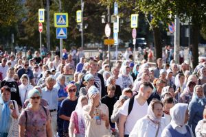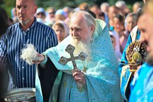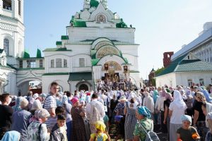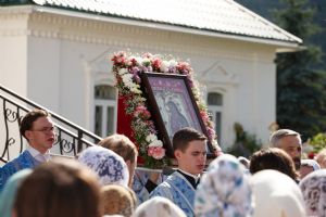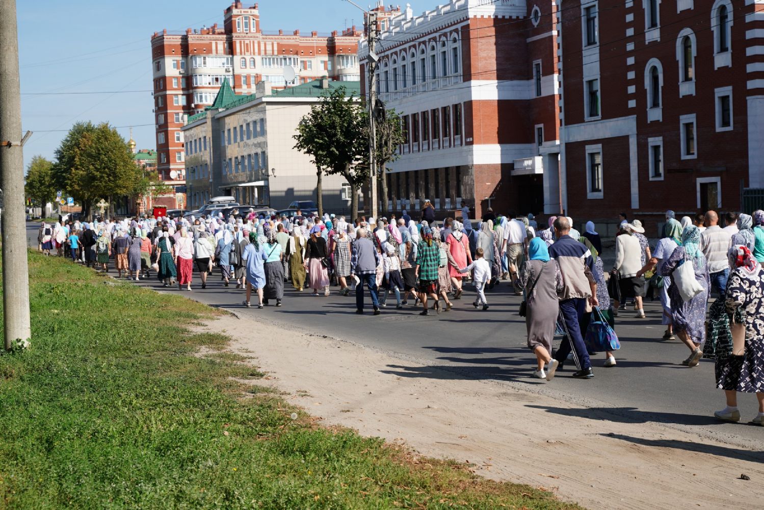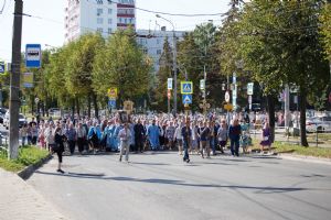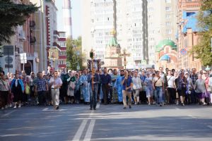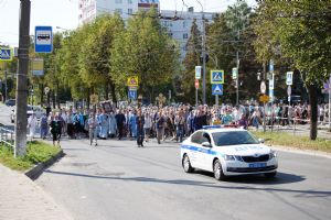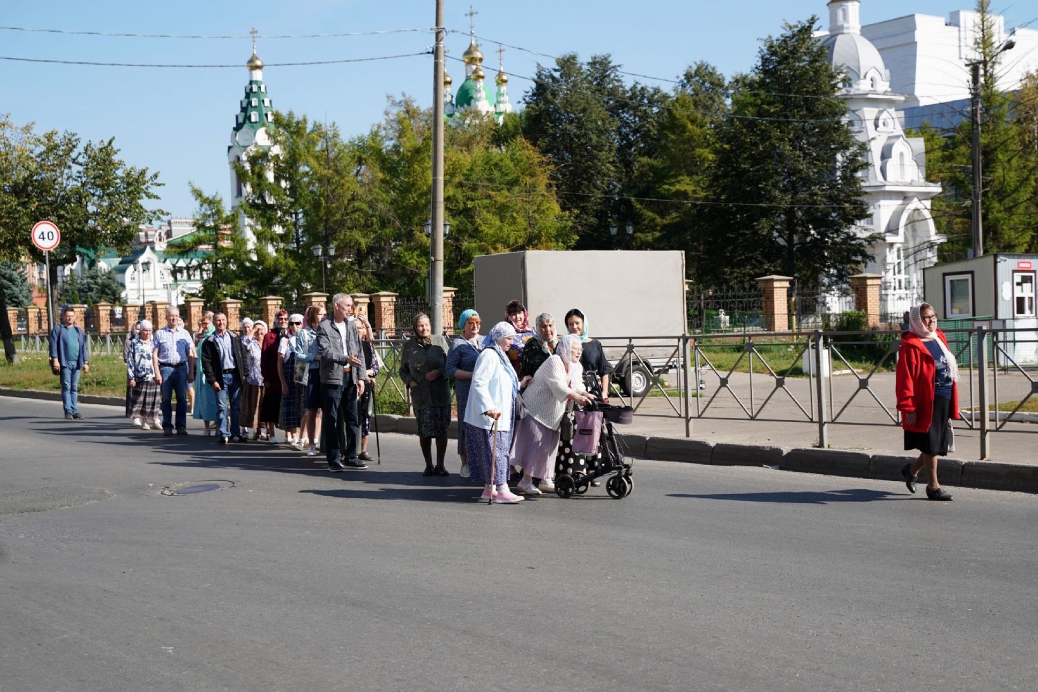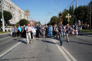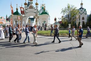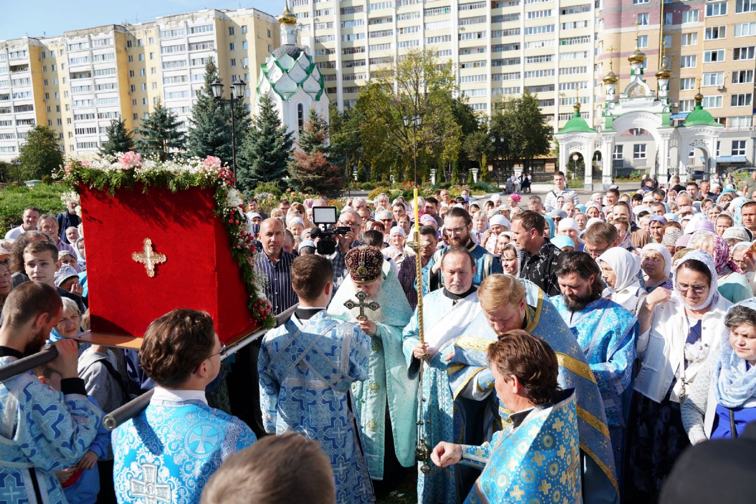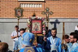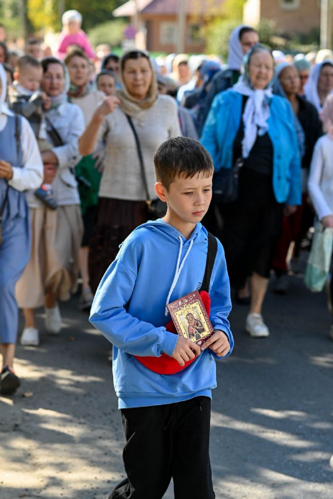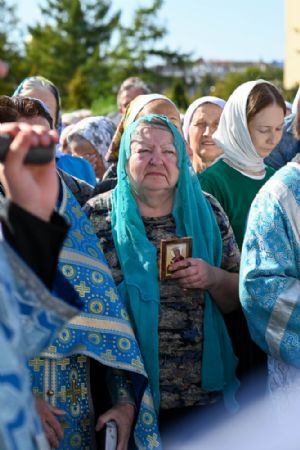 По окончании Литургии митрополит Иоанн возглавил крестный ход вокруг храма со чтением Евангелия и кроплением святой водой, после чего верующие с Мироносицкой иконой Пресвятой Богородицы отправились по улицам города в Троицкий храм.