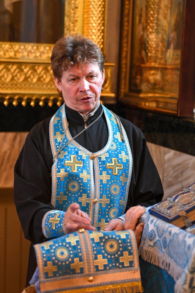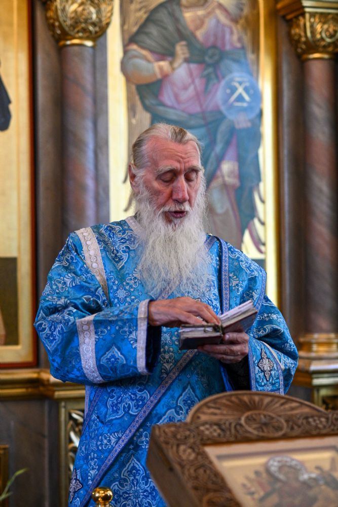 Его Высокопреосвященству сослужили клирики храма иерей Вячеслав Булычев, иерей Олег Михайлов и диакон Александр Мельников, а также протодиакон Михаил Козловский. Песнопения исполнял хор храма под управлением регента Ольги Акилбаевой.