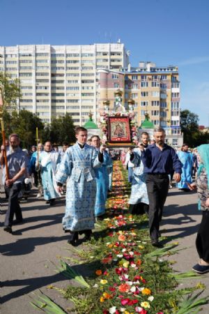 Накануне в Успенский храм была принесена икона Божией Матери «Царевококшайская» или «Мироносицкая», которая крестным ходом шествует по храмам города и окрестностей.