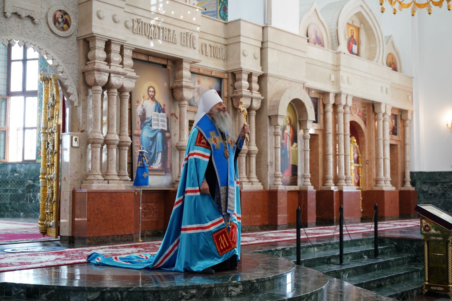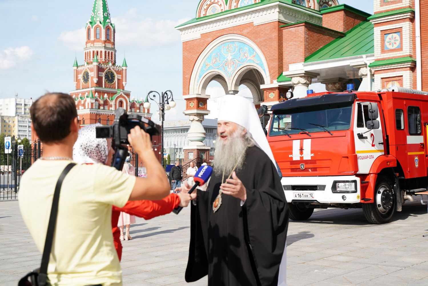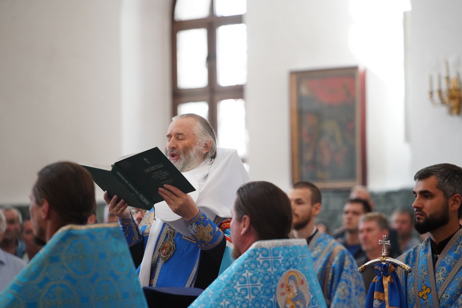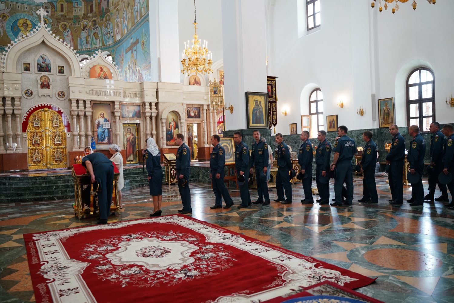 Молебен возглавил митрополит Йошкар-Олинский и Марийский Иоанн. Владыке сослужили ключарь кафедрального собора протоиерей Сергий Поглазов, клирик храма Рождества Пресвятой Богородицы с. Семеновка иерей Димитрий Иванов, окормляющий сотрудников МЧС, настоятель Воскресенского собора г. Йошкар-Олы иерей Андрей Кочаков, клирики кафедрального собора иереи Никифор Захаров, Евгений Самойлов, Александр Староверов и Иоанн Милютин, диаконы Андрей Дружинин и Артемий Бобоч, а также протодиакон Михаил Козловский. Песнопения исполнял хор «Благовест» под управлением Татьяны Черновой.
