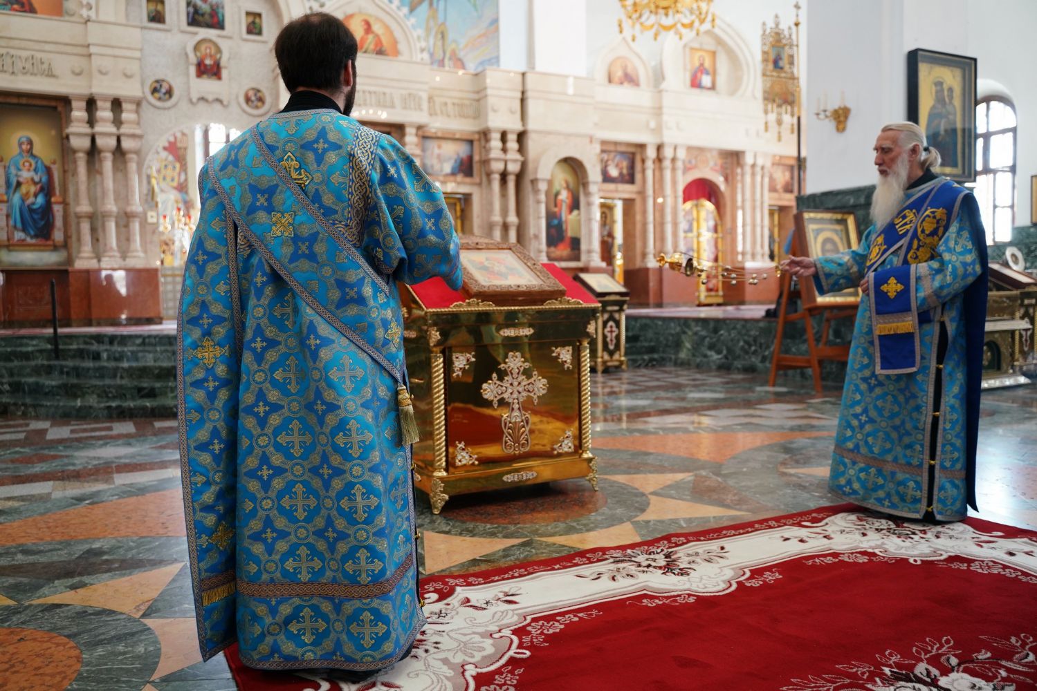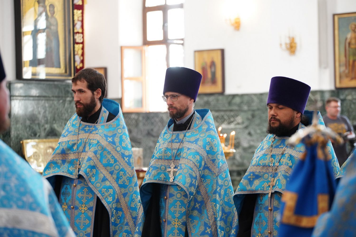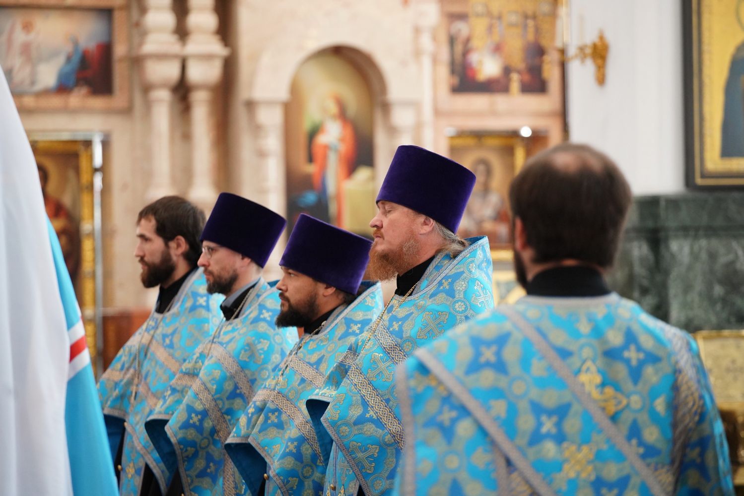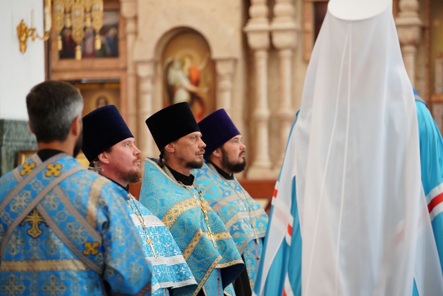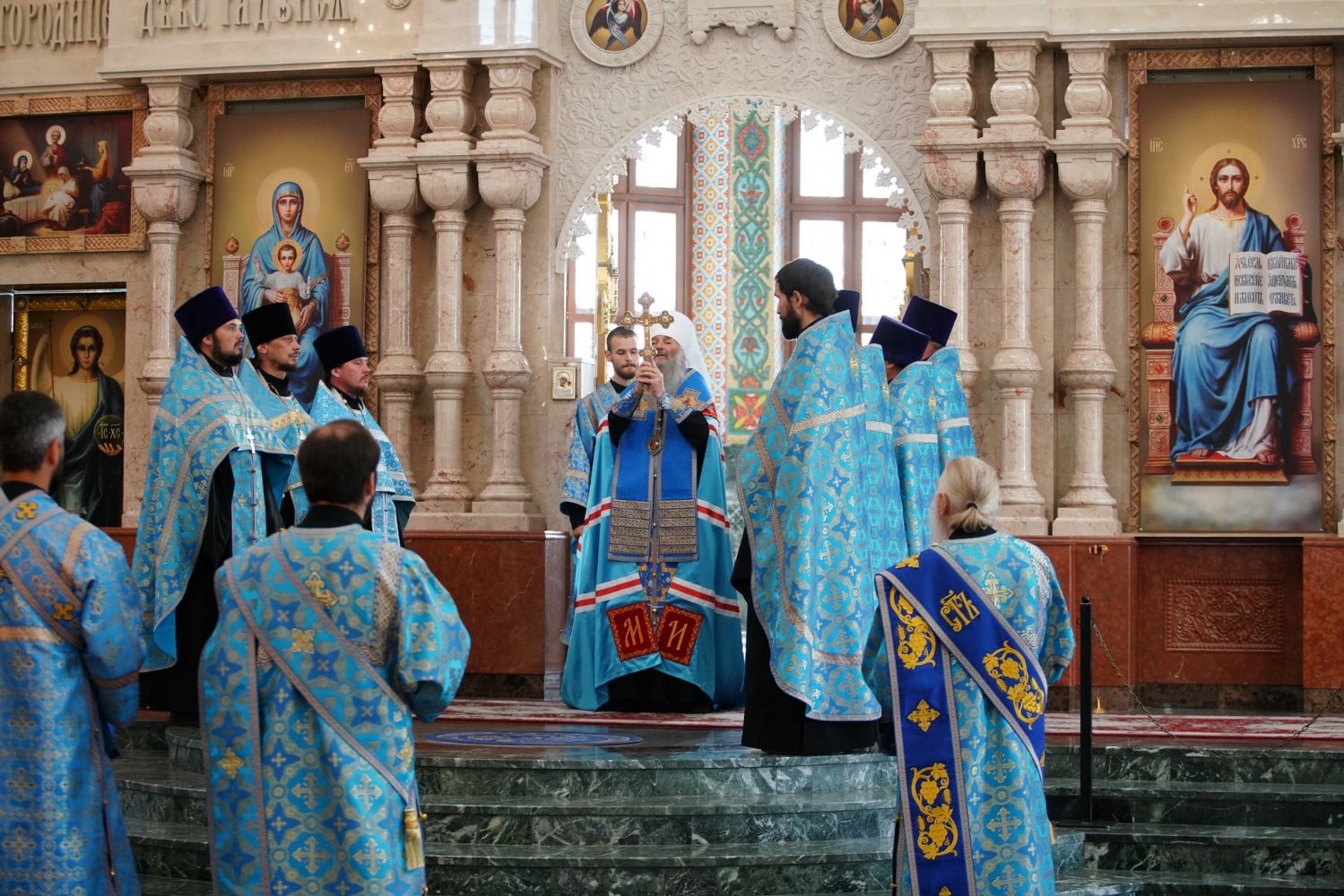 Молебен возглавил митрополит Йошкар-Олинский и Марийский Иоанн. Владыке сослужили ключарь кафедрального собора протоиерей Сергий Поглазов, клирик храма Рождества Пресвятой Богородицы с. Семеновка иерей Димитрий Иванов, окормляющий сотрудников МЧС, настоятель Воскресенского собора г. Йошкар-Олы иерей Андрей Кочаков, клирики кафедрального собора иереи Никифор Захаров, Евгений Самойлов, Александр Староверов и Иоанн Милютин, диаконы Андрей Дружинин и Артемий Бобоч, а также протодиакон Михаил Козловский. Песнопения исполнял хор «Благовест» под управлением Татьяны Черновой.