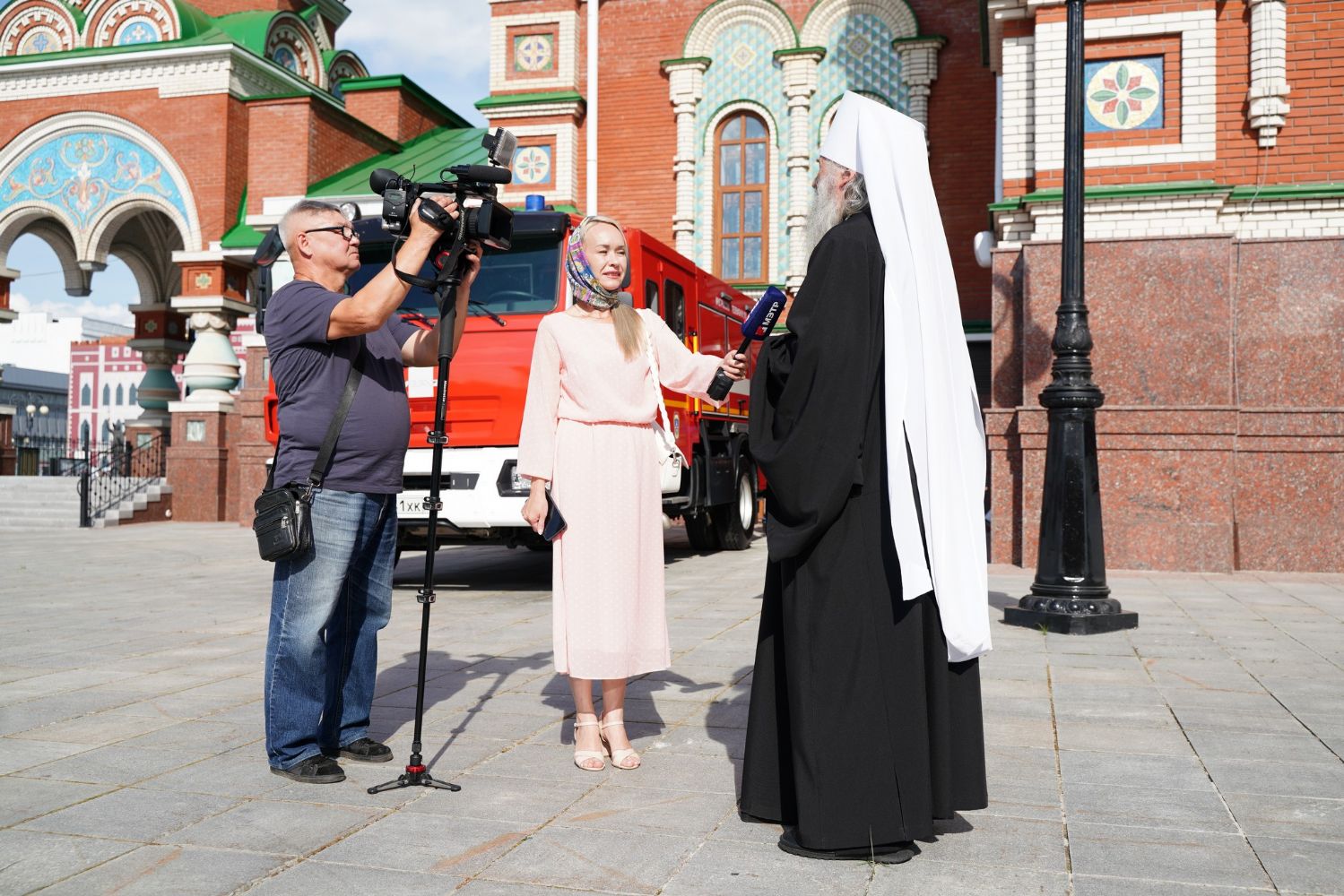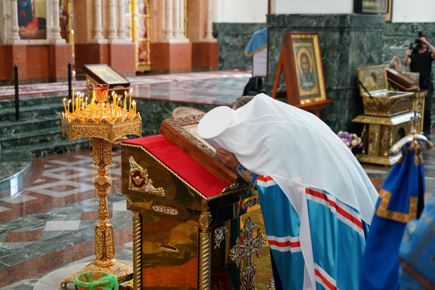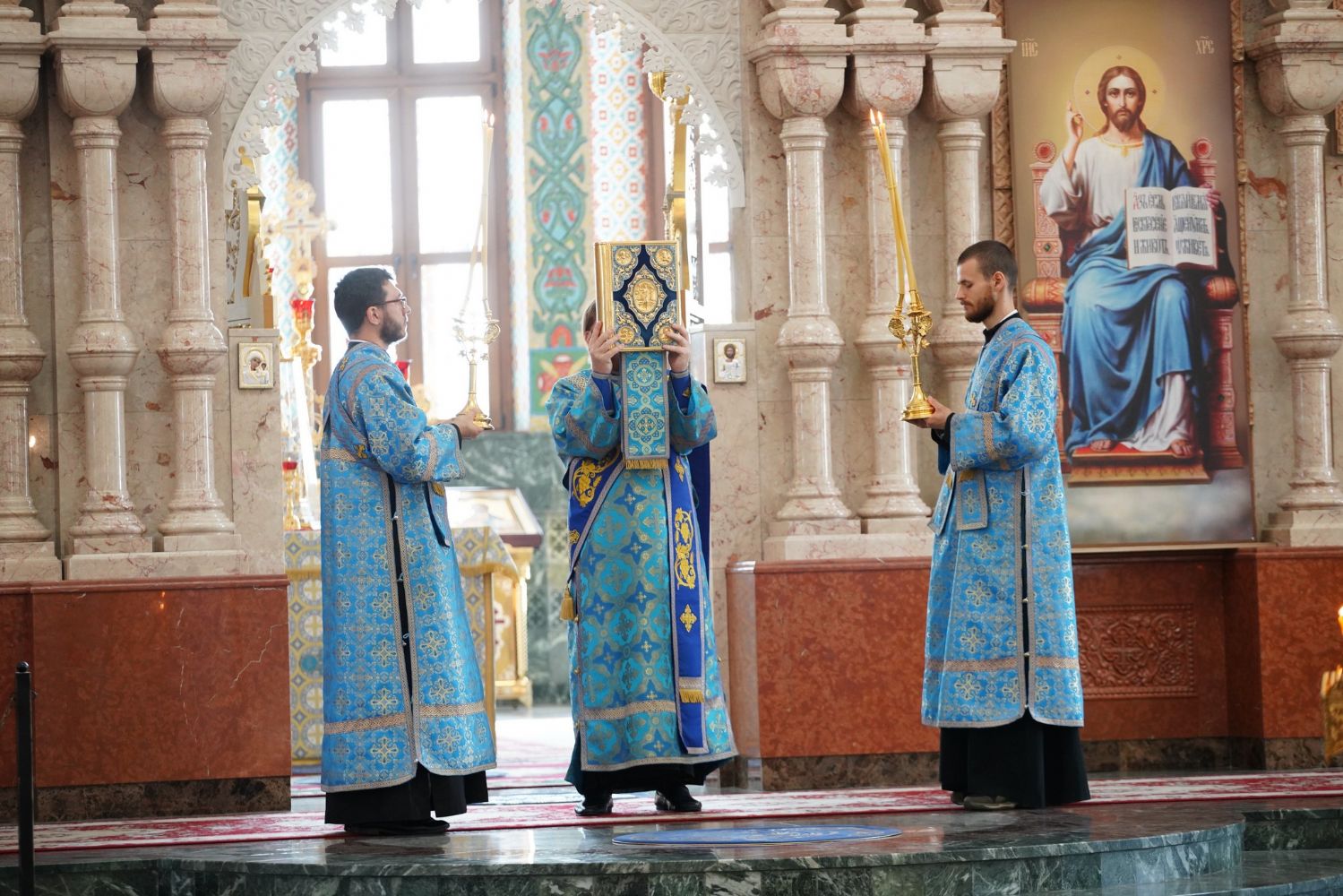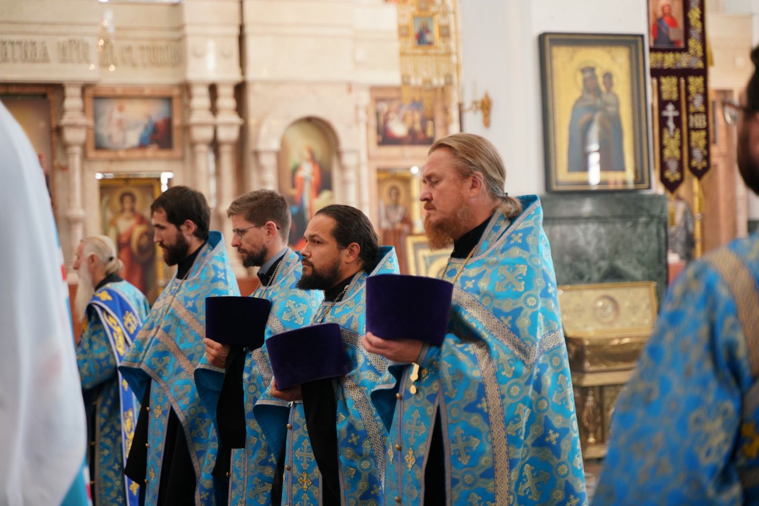 Молебен возглавил митрополит Йошкар-Олинский и Марийский Иоанн. Владыке сослужили ключарь кафедрального собора протоиерей Сергий Поглазов, клирик храма Рождества Пресвятой Богородицы с. Семеновка иерей Димитрий Иванов, окормляющий сотрудников МЧС, настоятель Воскресенского собора г. Йошкар-Олы иерей Андрей Кочаков, клирики кафедрального собора иереи Никифор Захаров, Евгений Самойлов, Александр Староверов и Иоанн Милютин, диаконы Андрей Дружинин и Артемий Бобоч, а также протодиакон Михаил Козловский. Песнопения исполнял хор «Благовест» под управлением Татьяны Черновой.