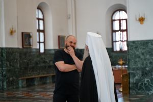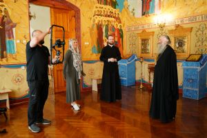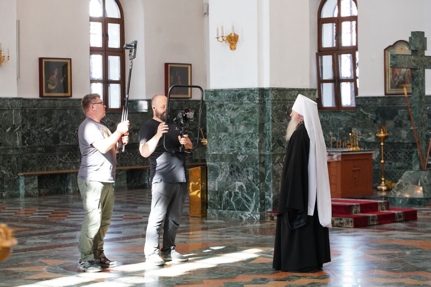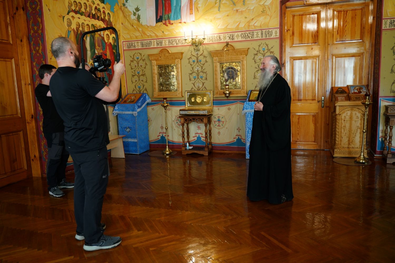 Во второй половине дня съемки проходили в домовом храме Йошкар-Олинского епархиального управления в честь иконы Божией Матери «Троеручица». Владыка рассказал о связи нашей республики с этим образом, об истории прославления иконы, а также показал настенные росписи, повествующие о тех событиях. Митрополит Иоанн в своем рассказе особое внимание уделил святым мощам священномученика Сергия Стрельникова. После съемок святынь домового храма в приемной митрополита состоялась встреча архипастыря со съемочной группой. Обращаясь к гостям, владыка особо отметил опасность для православных христиан увлекаться погоней за чудесами, что может привести к духовной прелести.